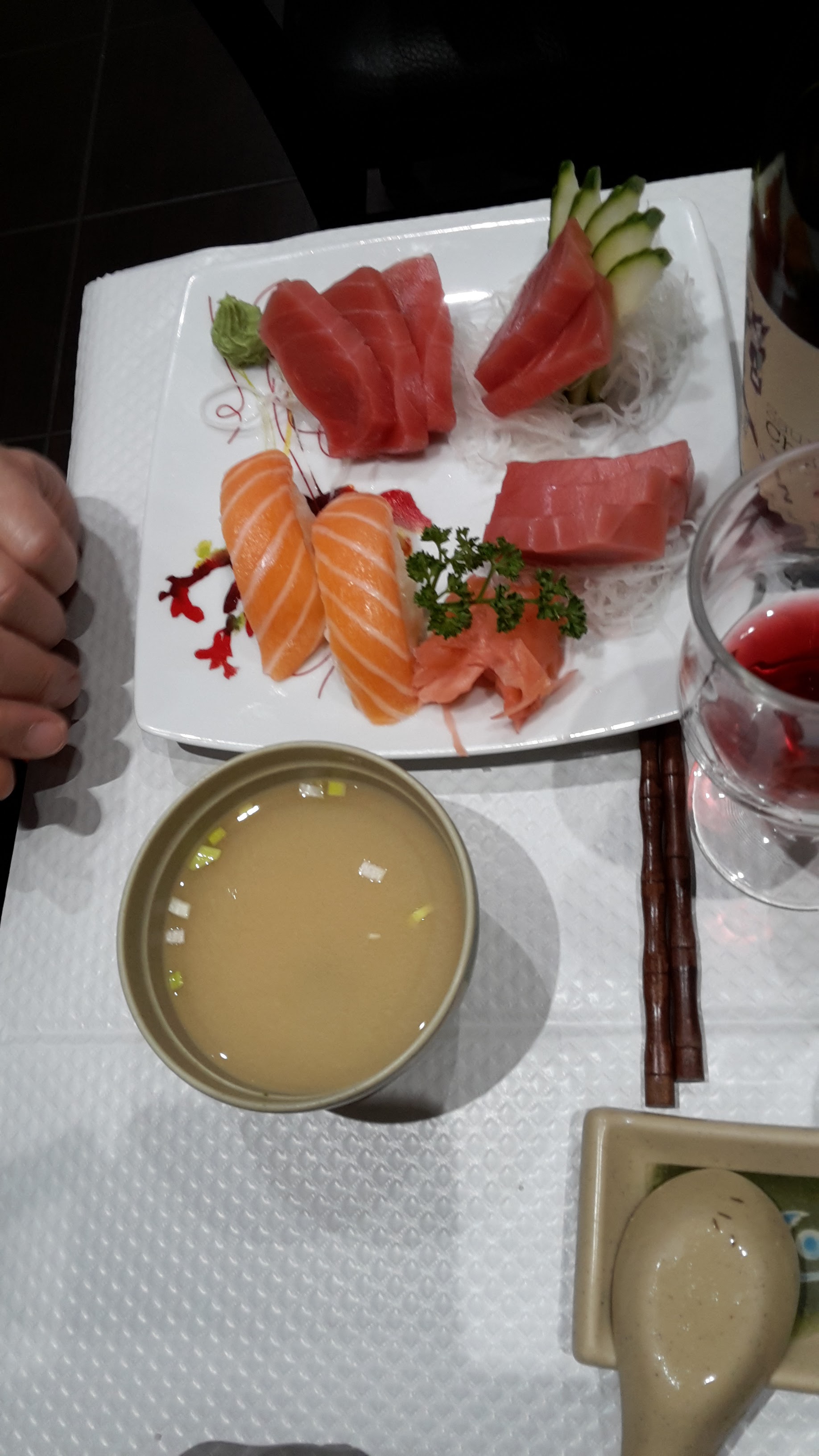 Les sashimis sont bon sauf celle à la crevette Ils ont oubliée de nous mettre le riz j'ai rappelé pour leur signaler Aucun geste commercial et aucune excuse c'est limite vous êtes sur d'en vouloir ! Les portions sont petites mais bonnes ! Chere un peu pour ce qu'il propose