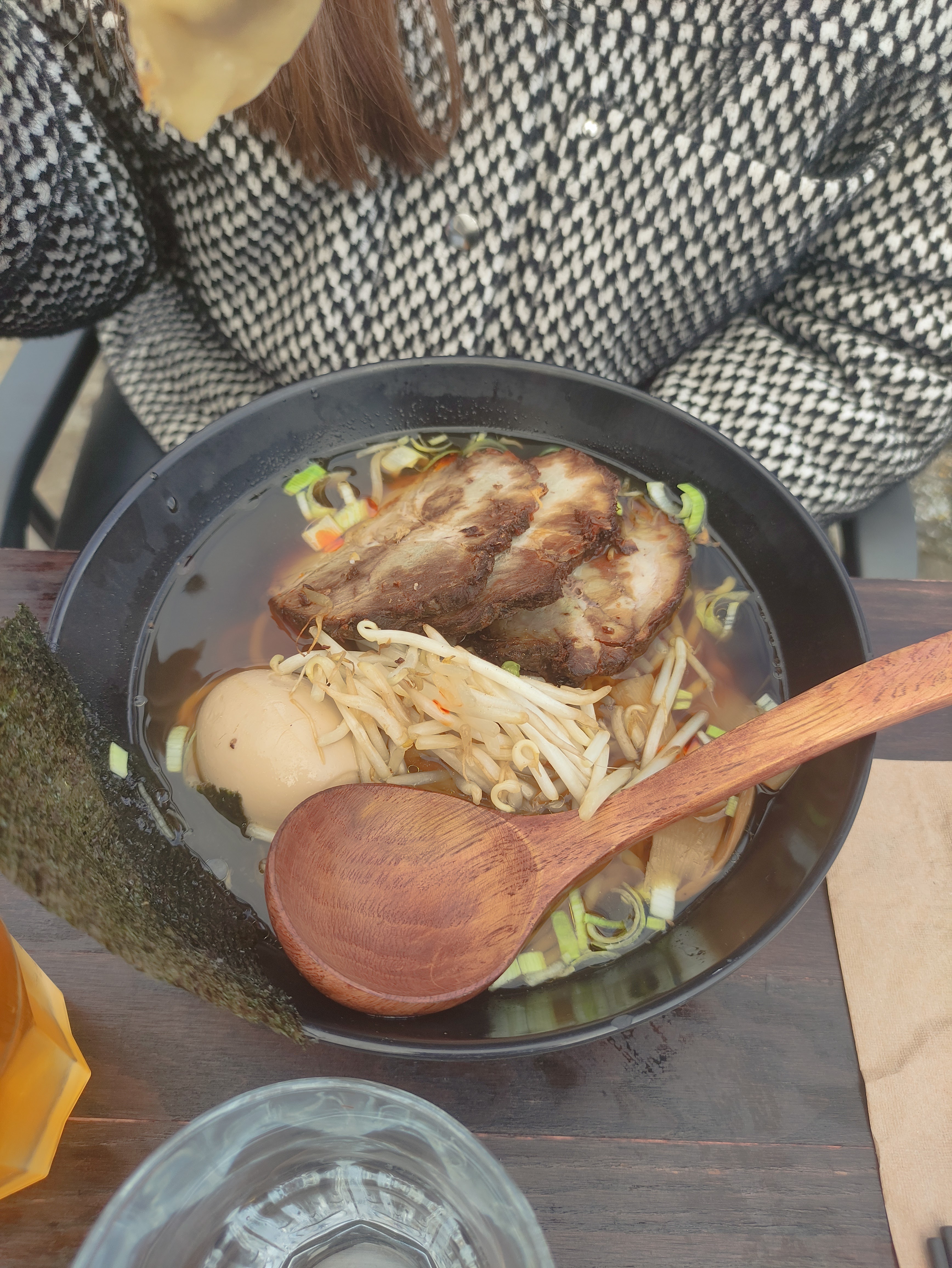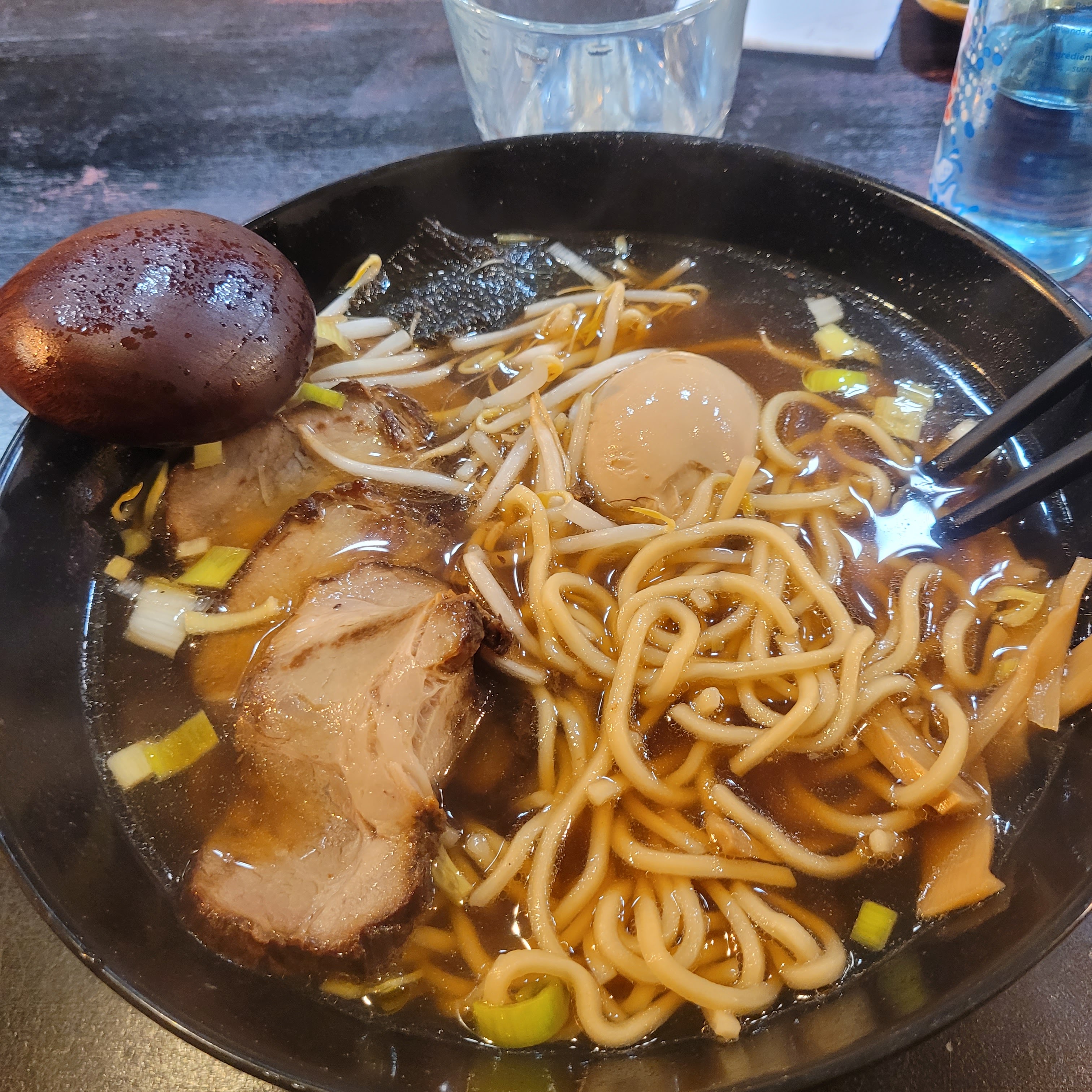 Délicieux! Bouillon très parfumé, on sent que les nouilles et les gyozas sont faits maison. Il fait assez chaud à l'intérieur mais les places à l'extérieur étaient parfaite en été.