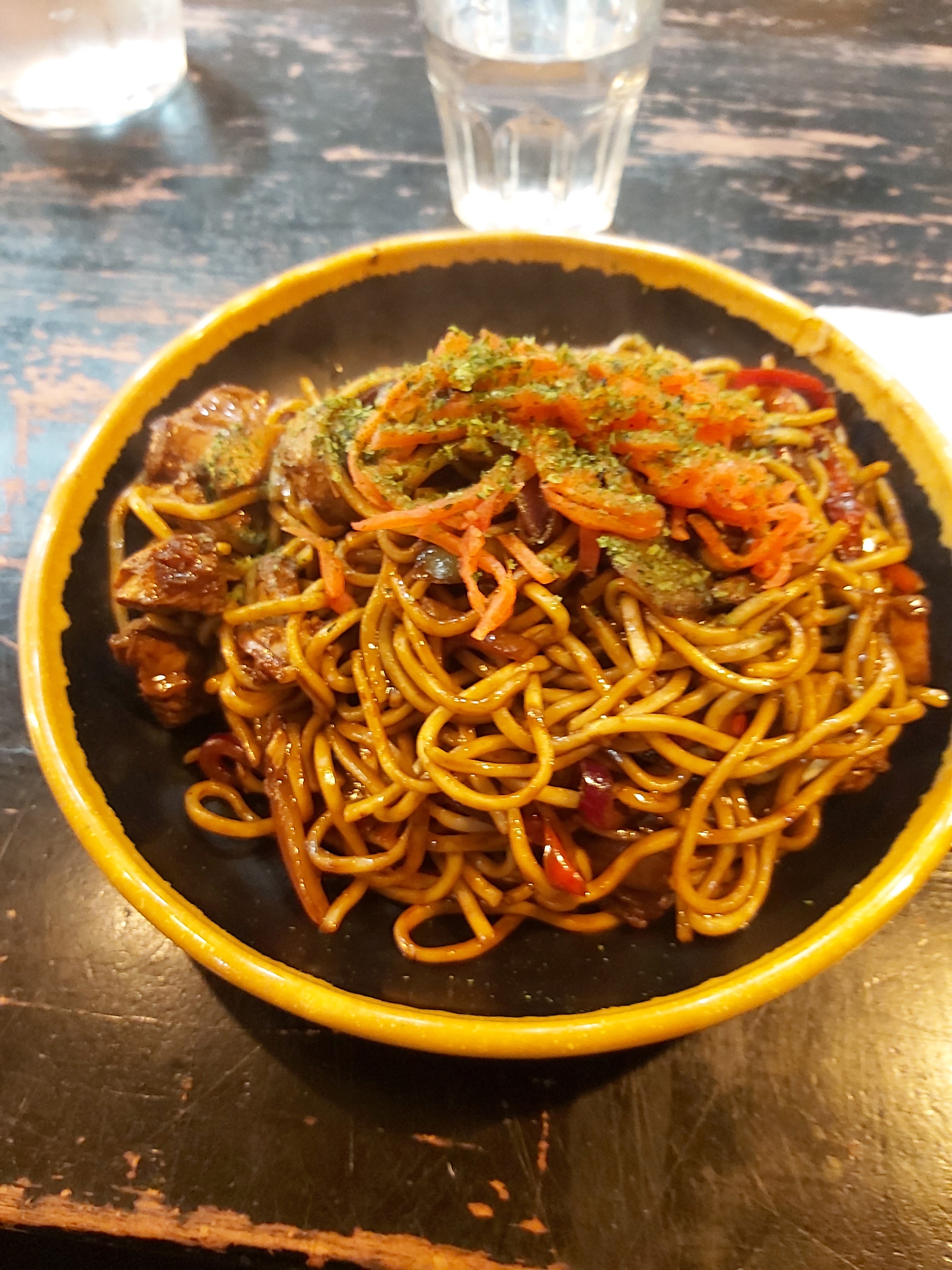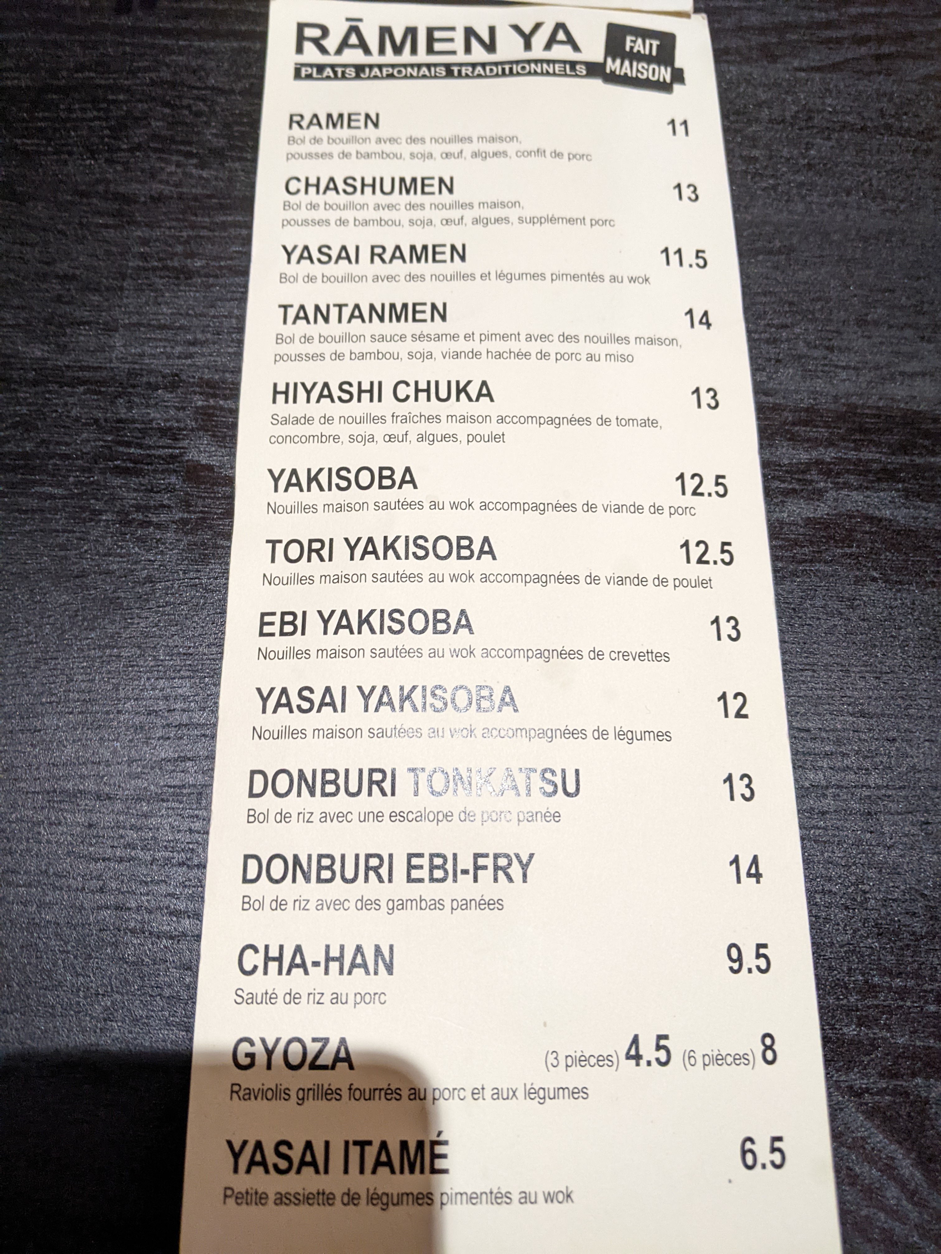 J'ai commandé un Tori Yakisoba (14€). Le plat était très savoureux, les quantités servies sont adéquates (vous n'aurez plus fin en sortant). Je recommande le lieu à tout le monde !