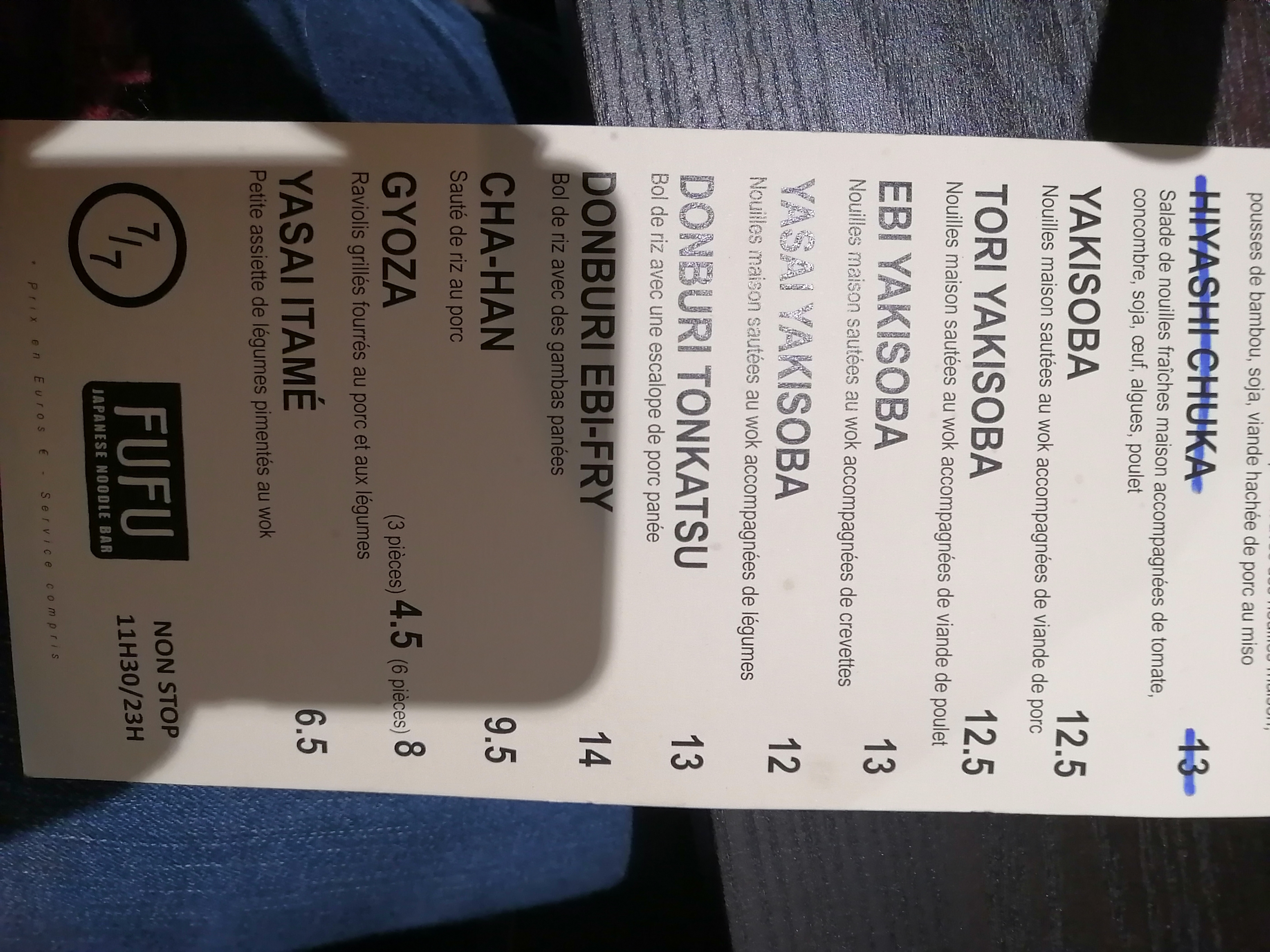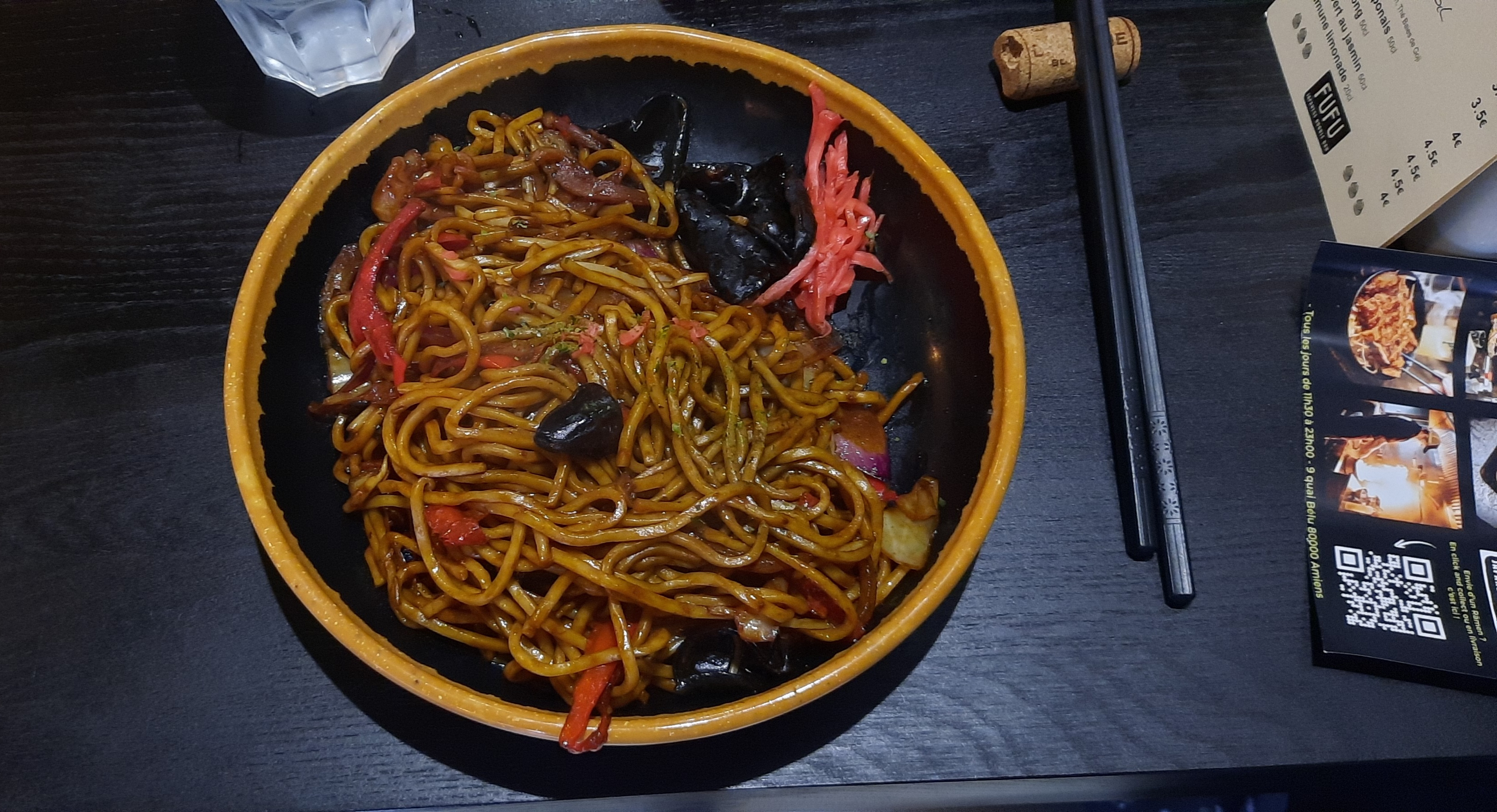 C'était bon, bien que le bouillon fût un peu trop salé. Je trouve toutefois très étrange le fait que les employés parlent japonais pour l'immersion du lieu. C'est d'ailleurs mis en avant sur le site de Fufu Ramen comme un gage de qualité. On dirait presque un jeu de rôle forcé, surtout que les employés (qui sont tous des jeunes amienois entre 20 et 25 ans), entre eux et en dehors des commandes parlent normalement français. C'est quoi la prochaine étape ? Se grimer le visage pour créer de l'attraction ?