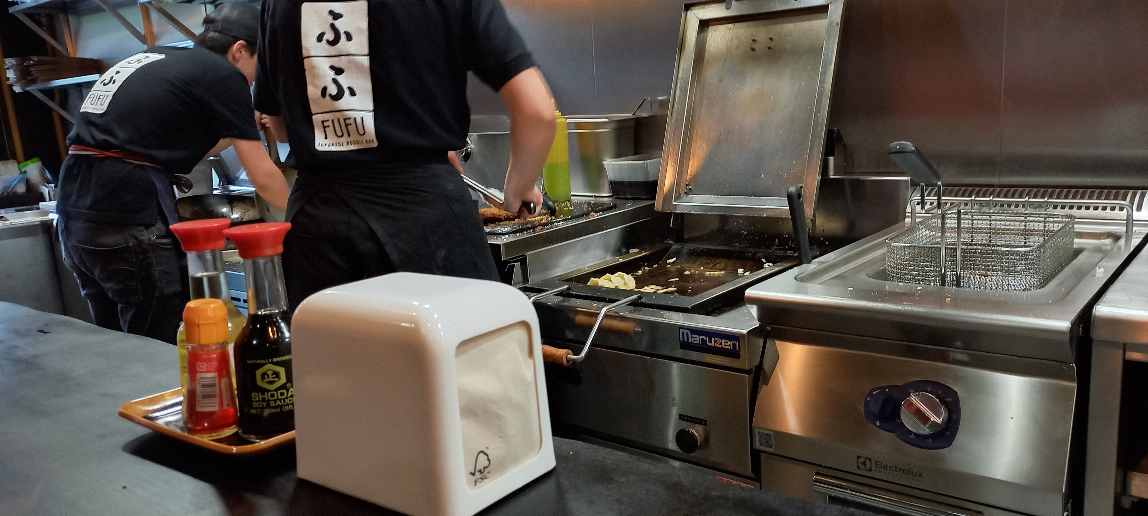 Ouvert toute la journée, le reflet de la cuisine de rue japonaise. L'endroit est petit mais accueillant, les plats sont préparés devant vous. Ils sont copieux et délicieux. Font également à emporter. Petit bémol quand même, la graisse commence à s'accumuler sur le plafond avec quelques moucherons et araignées. C'est dommage. Un bon coup de récurage ne serait pas de trop....