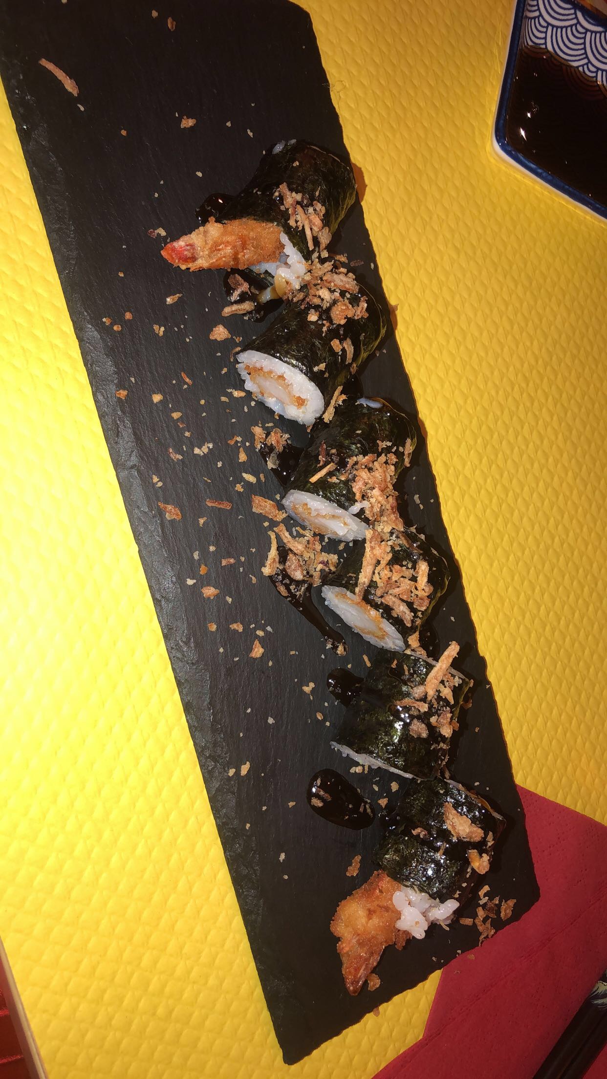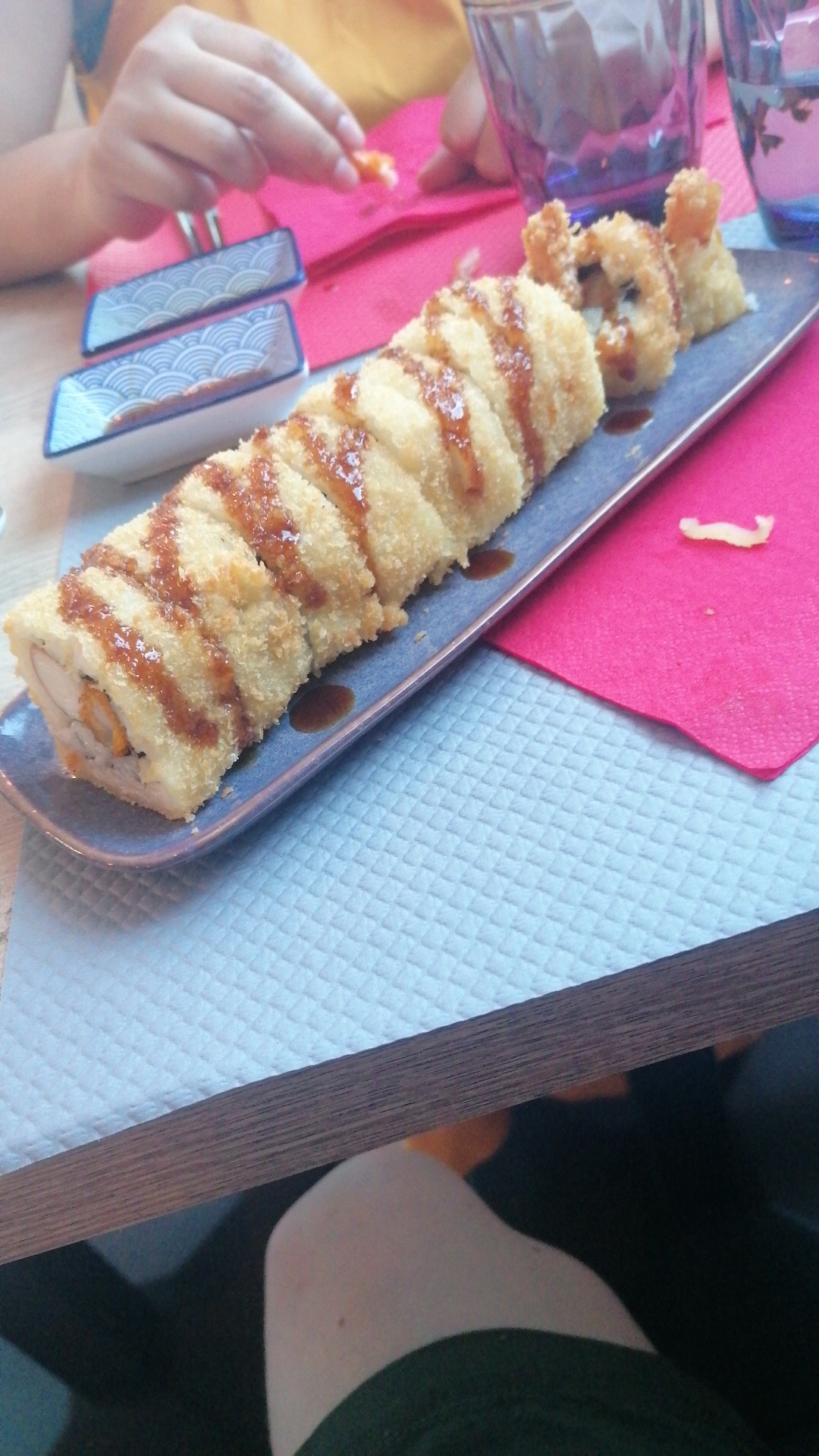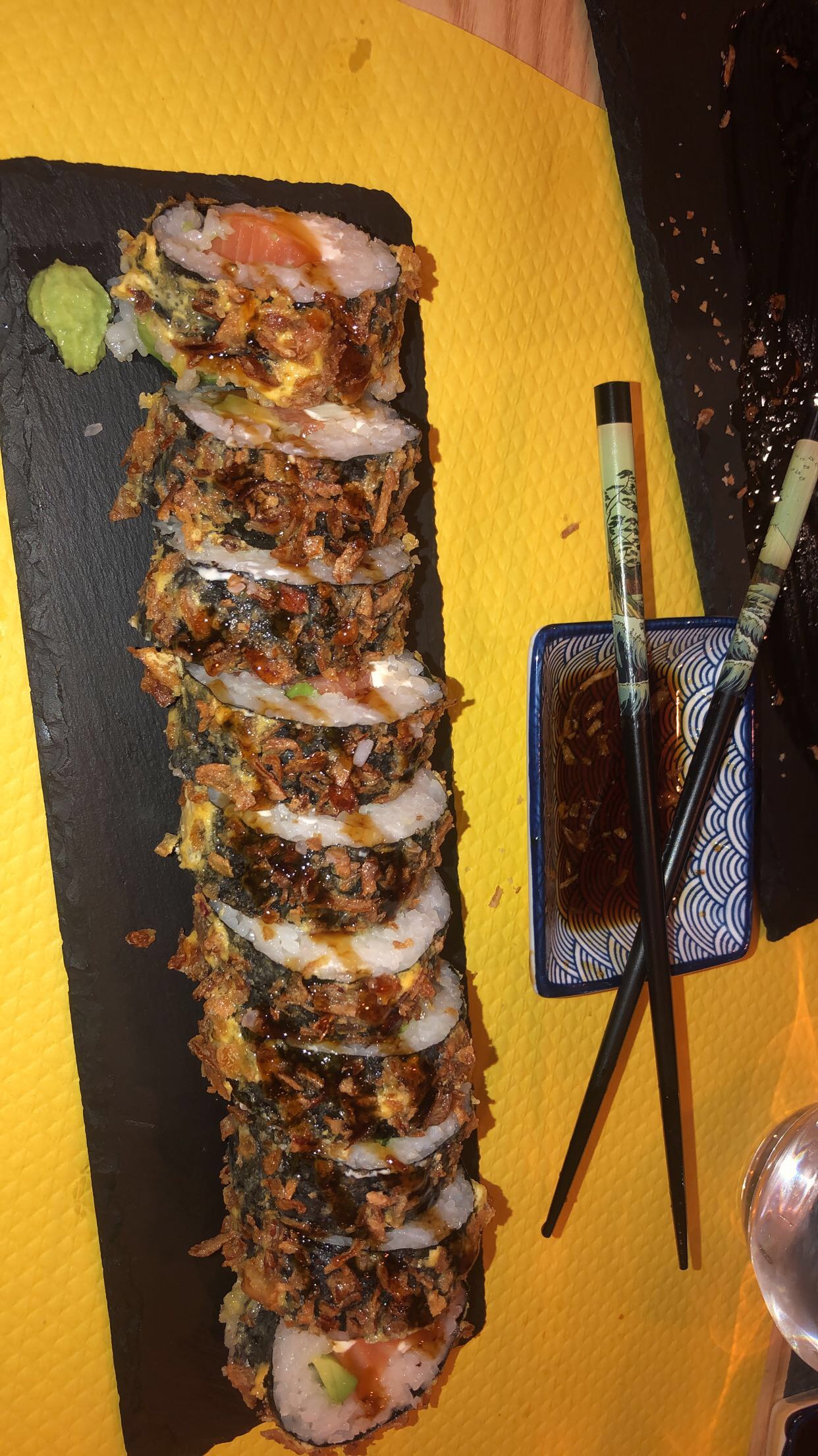 Bon resto de sushi Roll énorme Prix un peu élèvé mais ça vaut le coup Produits frais A refaire