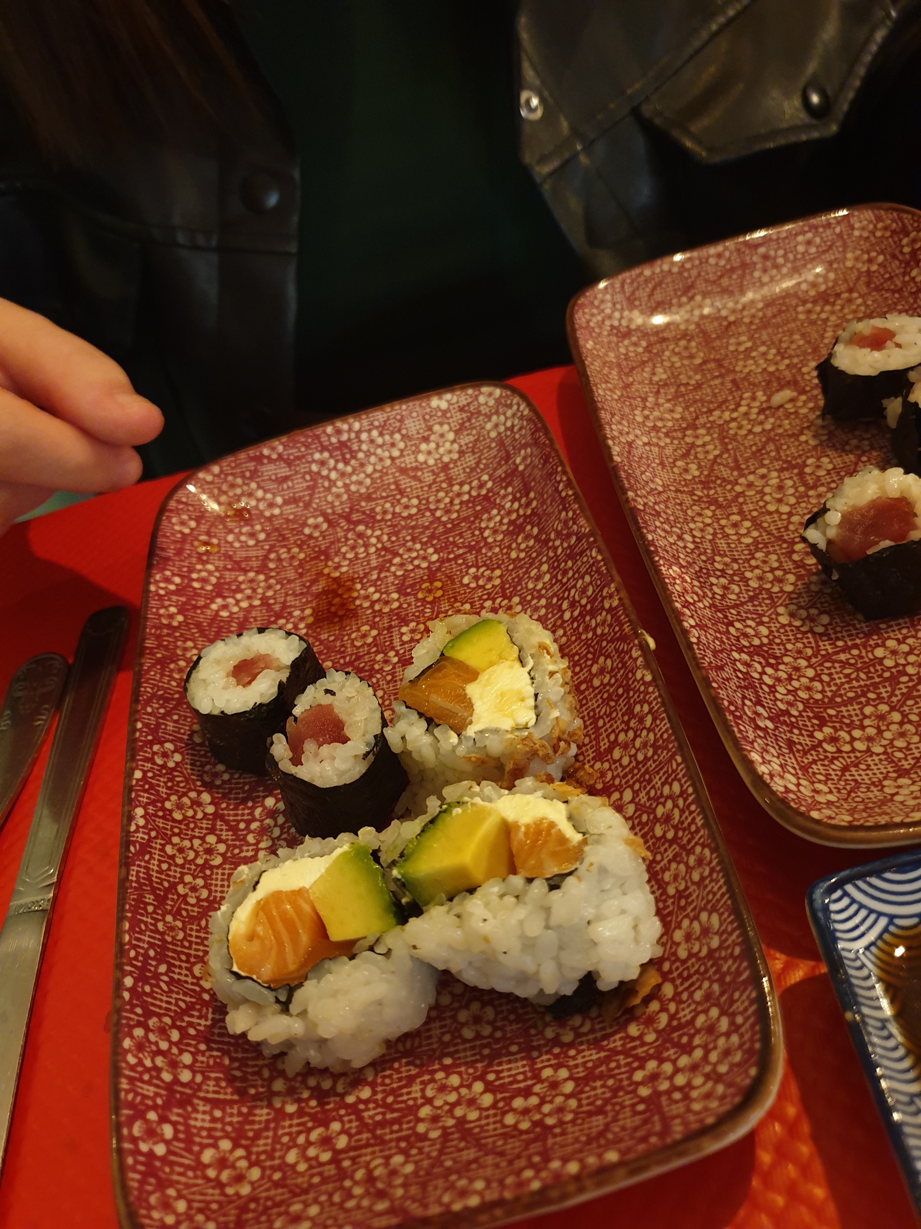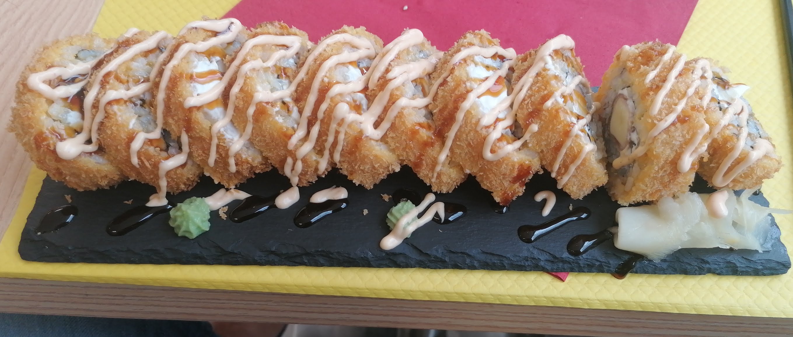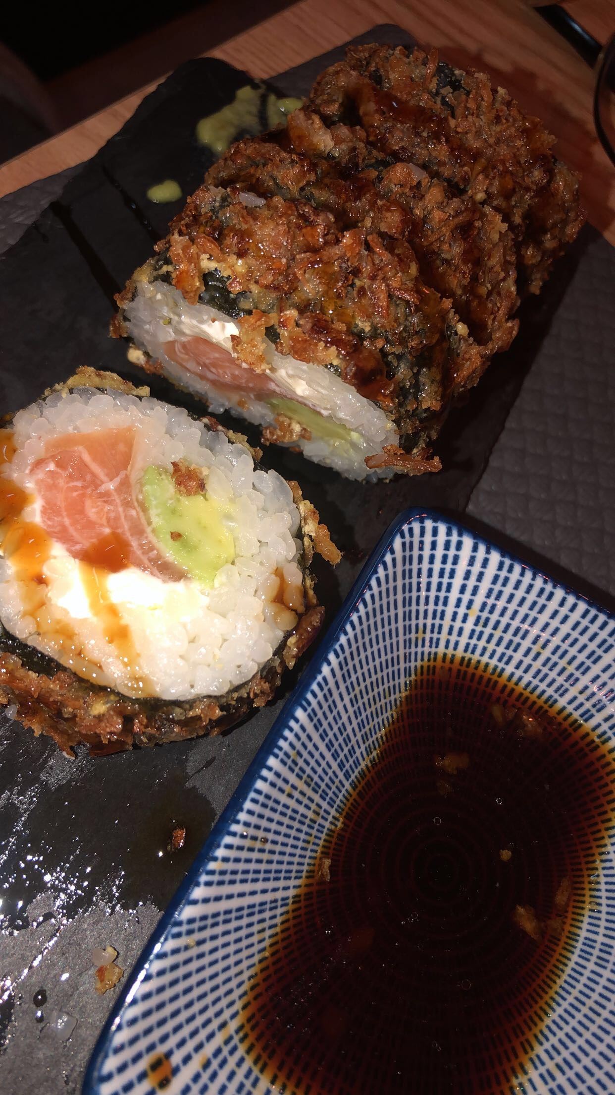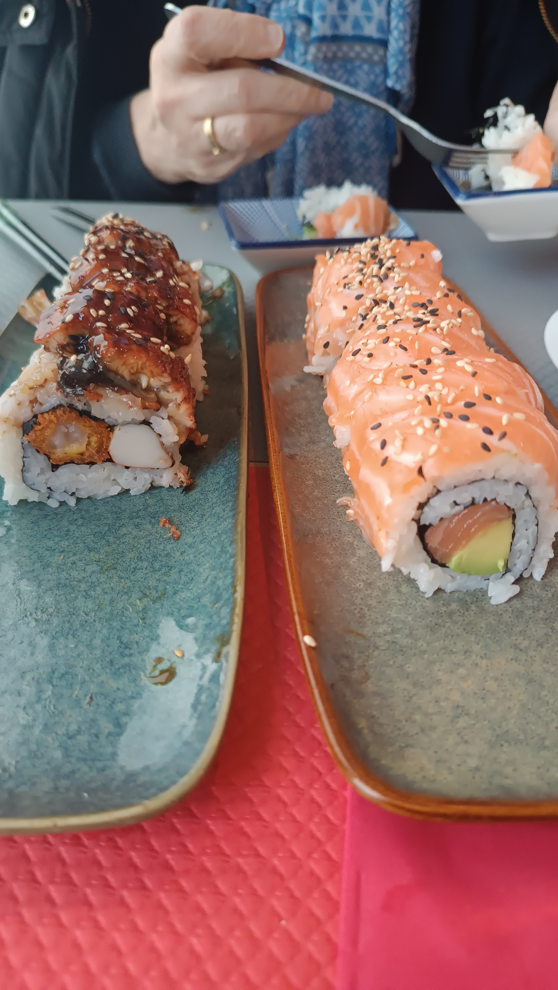 Bon resto de sushi Roll énorme Prix un peu élèvé mais ça vaut le coup Produits frais A refaire