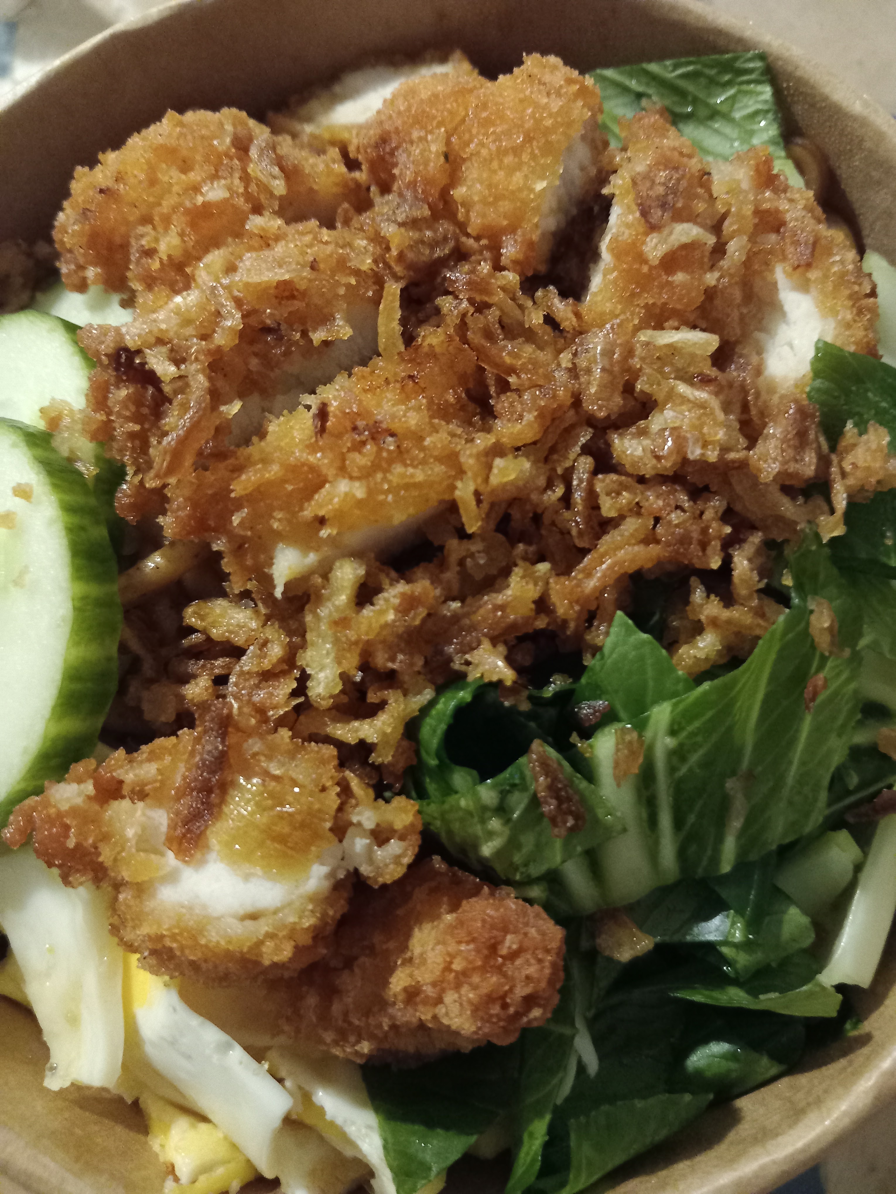Le poke bowl au poulet (poulet poke bowl) était vraiment savoureux. Il contient beaucoup de saveurs ; Je pensais que la mangue lui ajoutait un profil unique. Cela m'a rappelé un peu la fusion japonaise et certains goûts de l'Asie du Sud-Est. J'y retournerais sans hésiter pour en essayer davantage sur le menu !