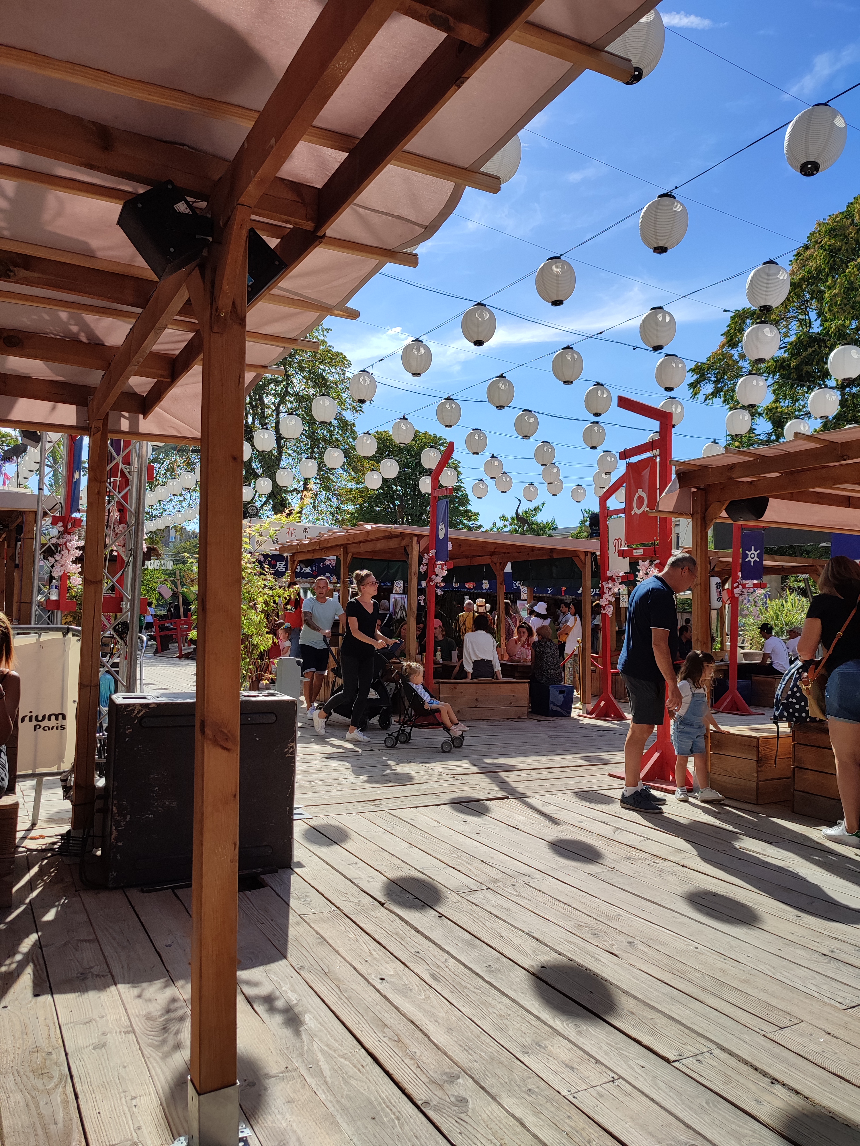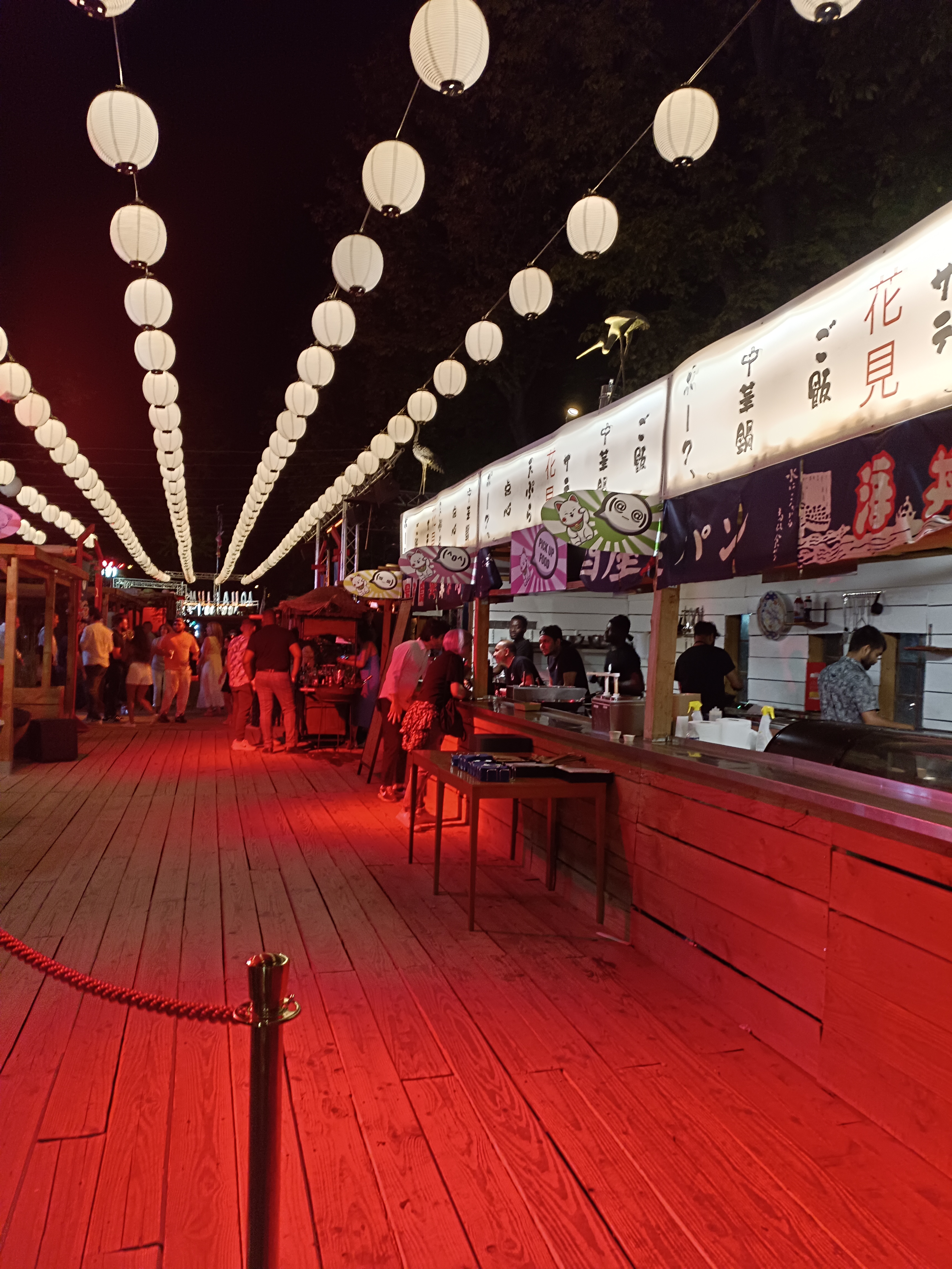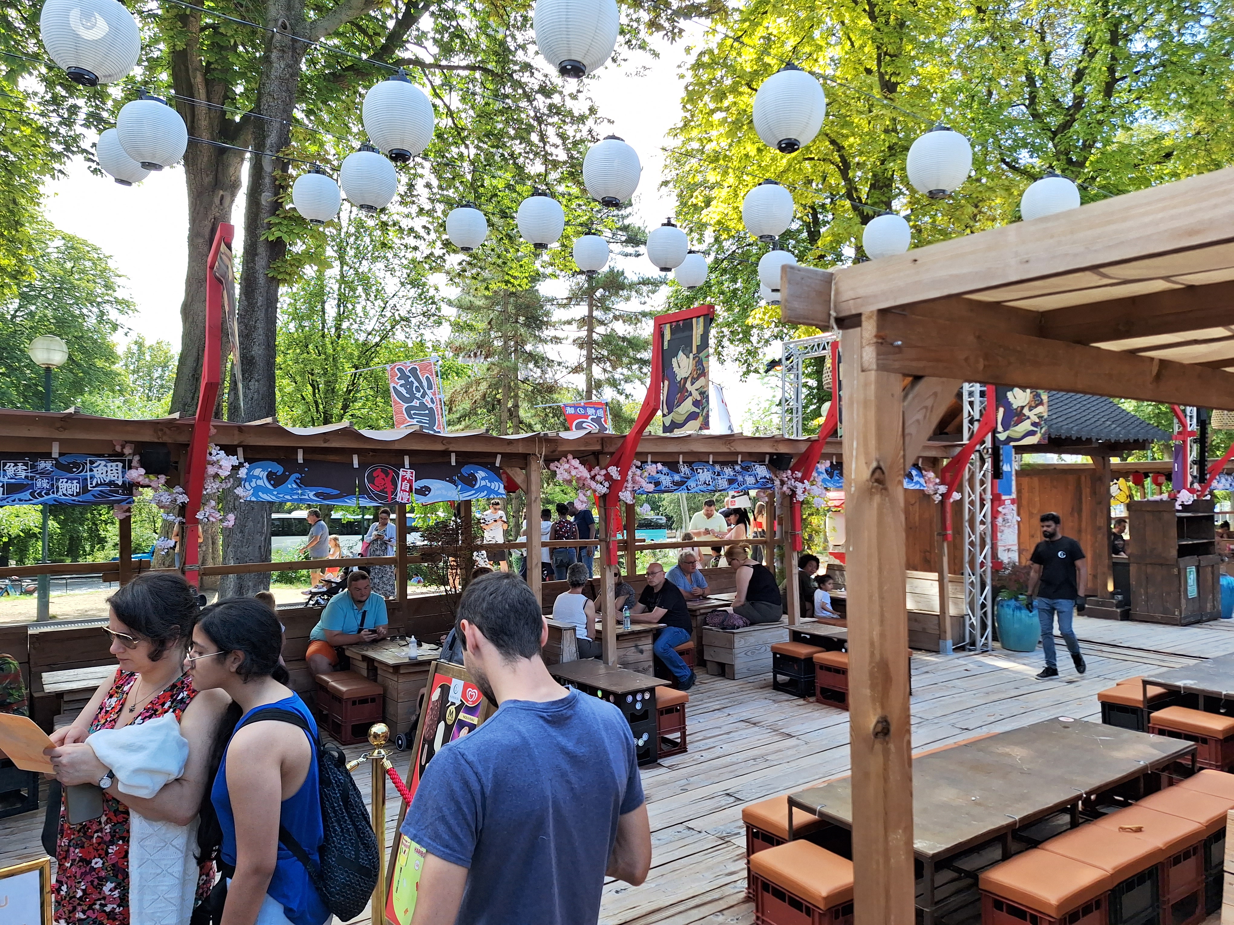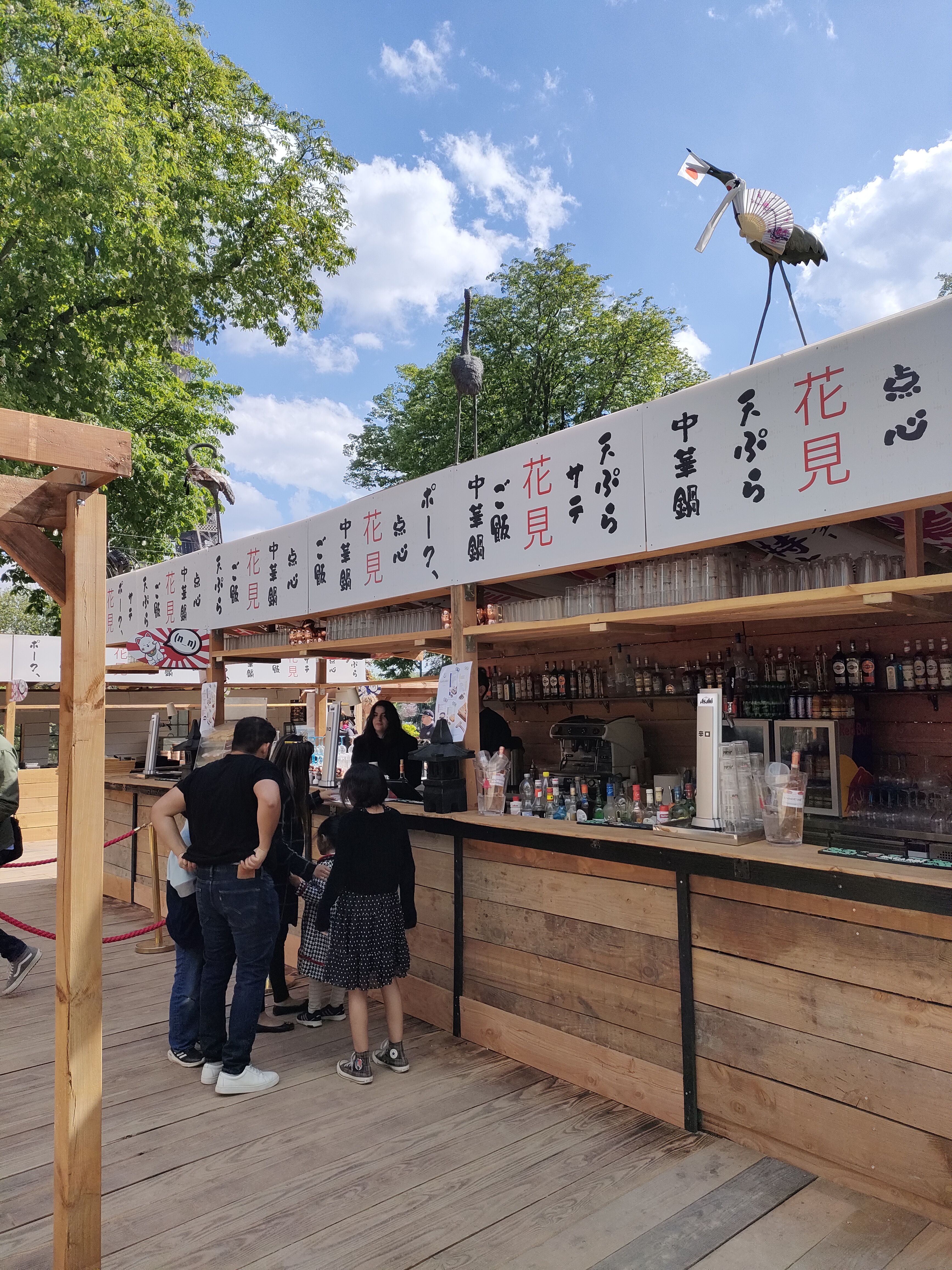 Une belle initiative de créer un espace ouvert « food court » en reprenant l’idée du « Hanami » La Fête des Cerisiers au Japon ! Les stands, allées et espaces de restauration sont à l’image d’un Matsuri au Japon et ses Yatai 🤩 Une ambiance de fête dans laquelle on se laisse inviter assez vite ! En revanche on déchante également assez vite 😣 Les plats proposés ne sont pour la plupart japonais que d’inspiration ou de connotation 😅. Et quand ils sont authentiques, comme le Takoyaki (boules fourrées à la poulpe)… Ils sont malheureusement mal exécutés 😅. L’organisation est également à revoir pour la récupération des plats. J’aurais aimé un système de biper ou à défaut, un écran d’affichage de numéro de commande, au lieu de se voir contraint d’attendre et de guetter son numéro de commande crié par les pauvres préparateurs 😅 Bref, l’initiative est à saluer mais peut mieux faire 💪