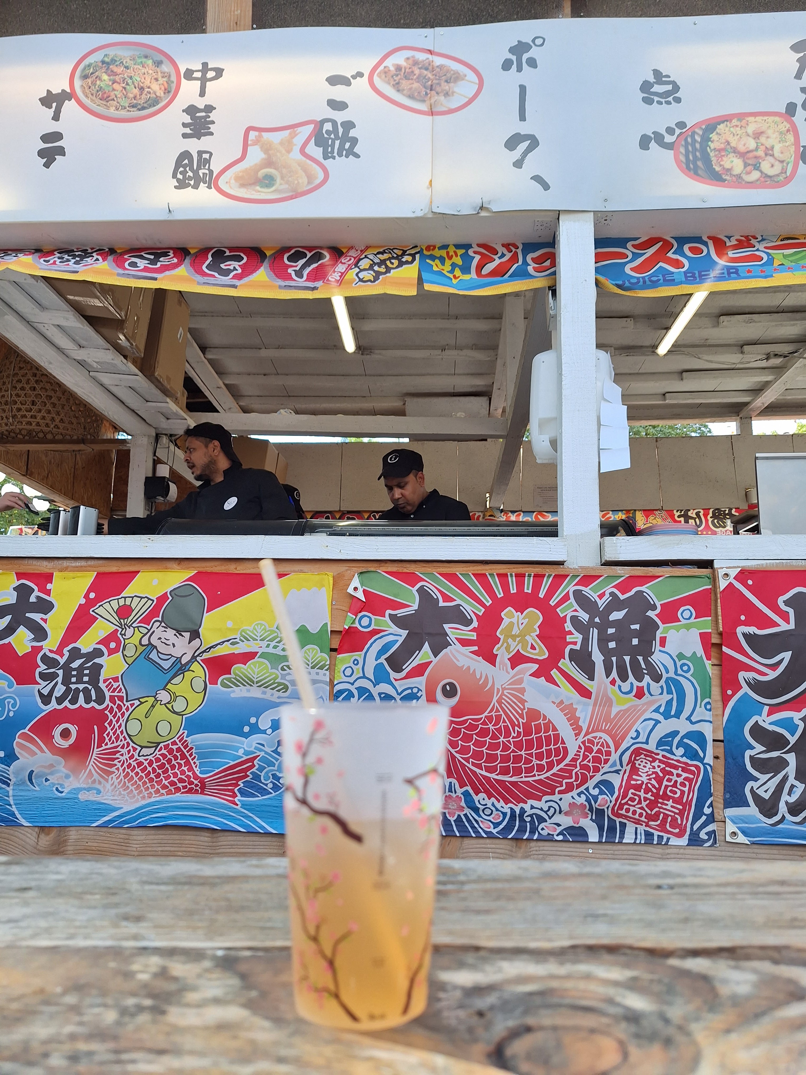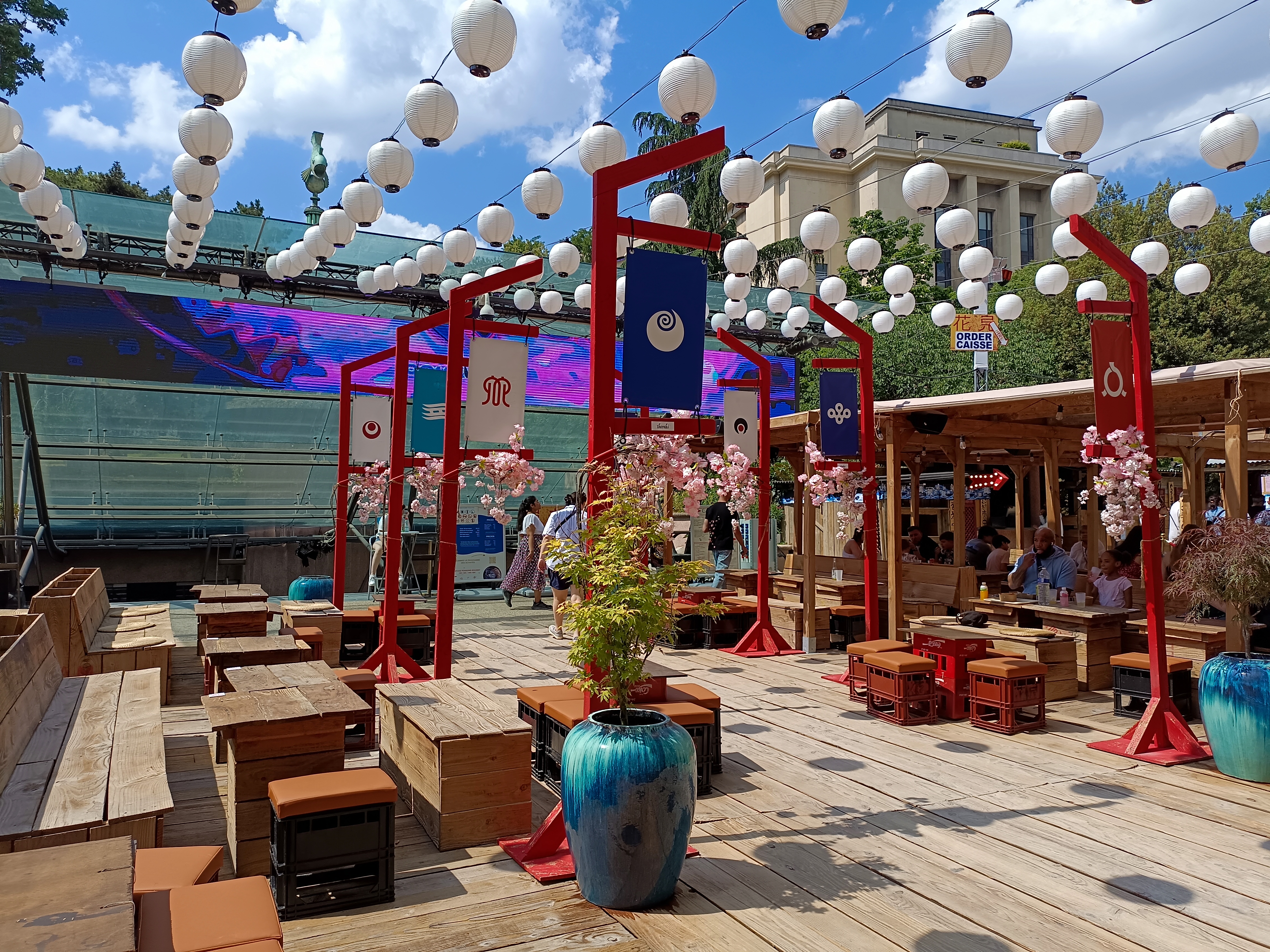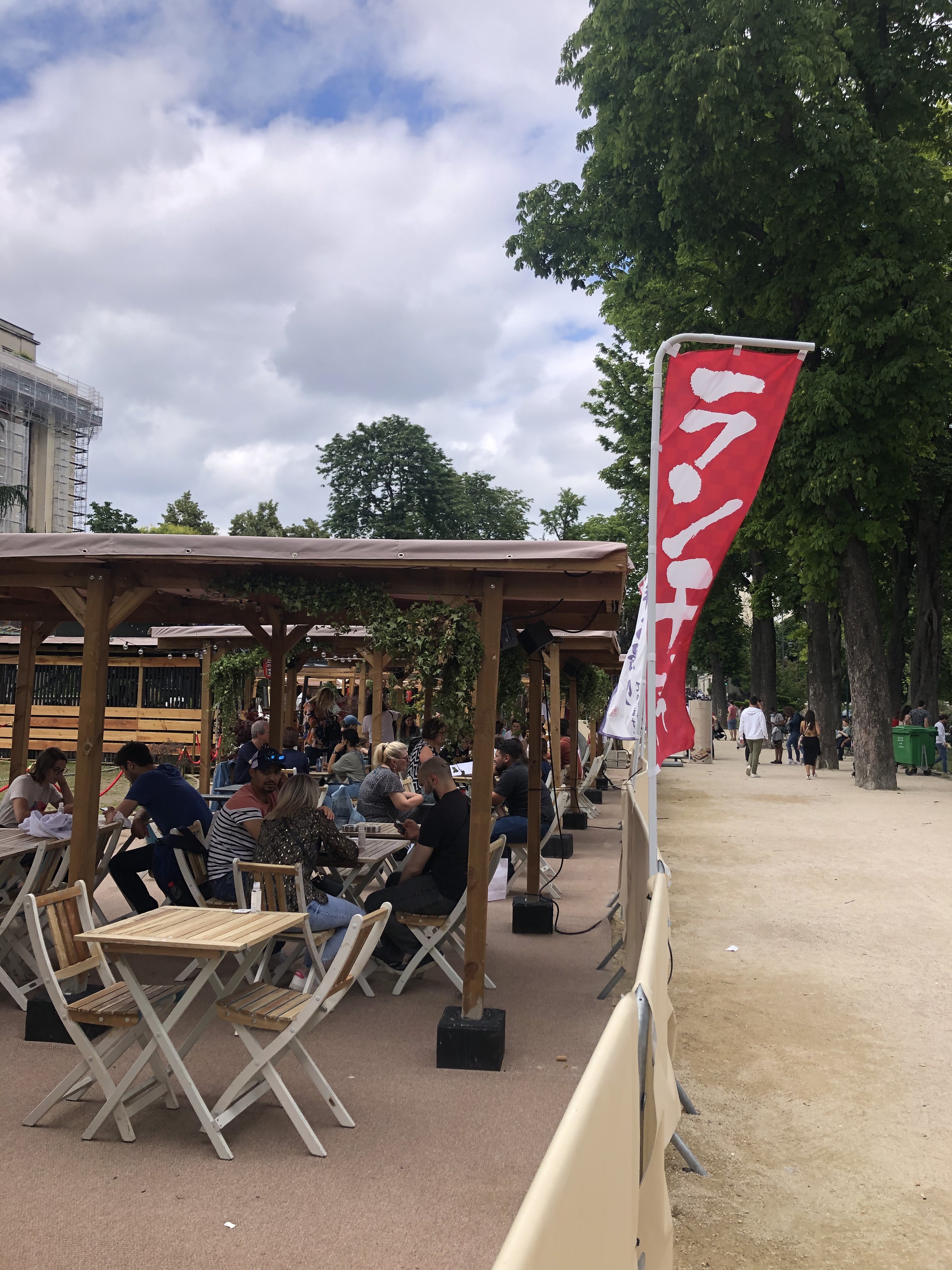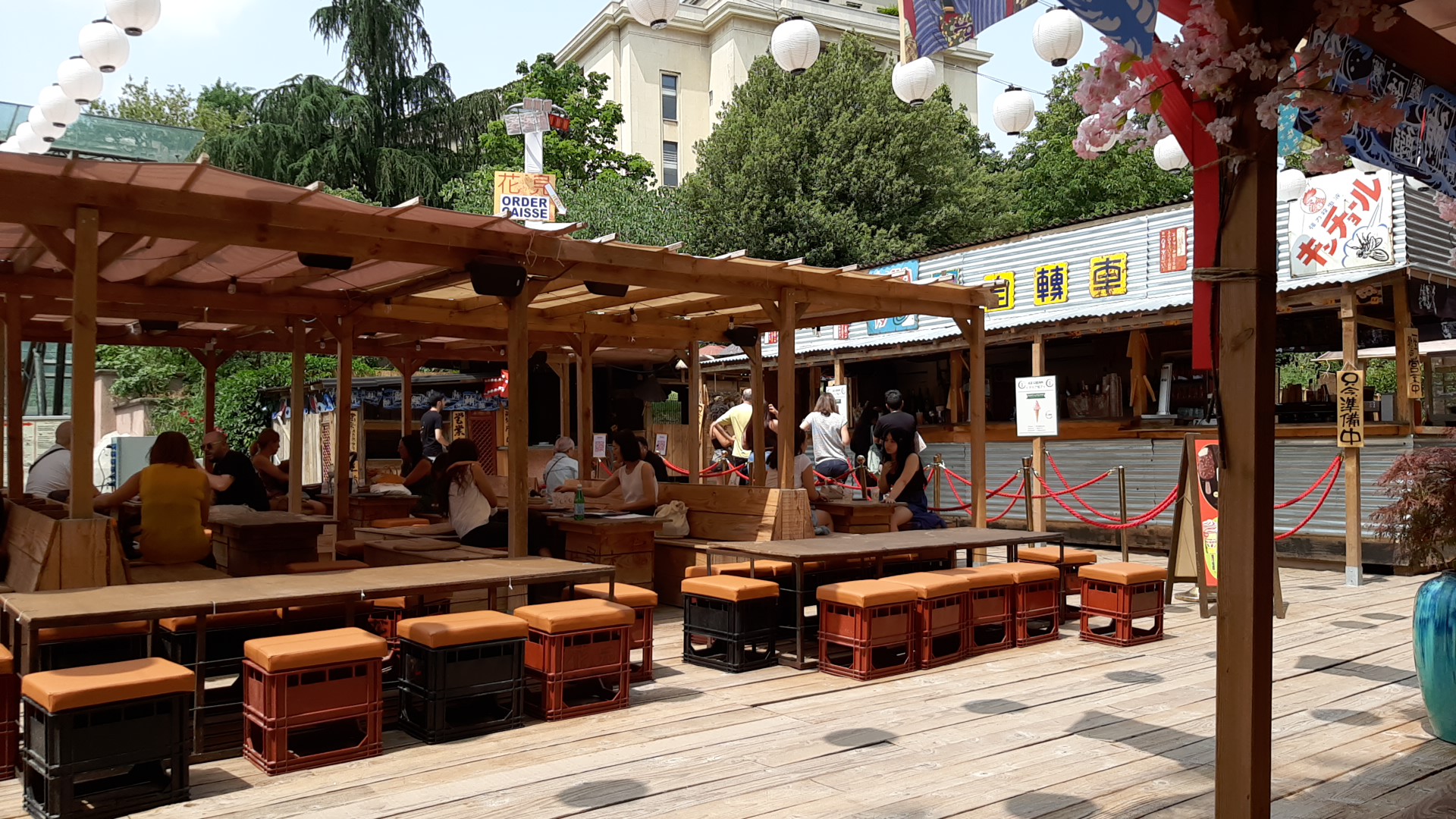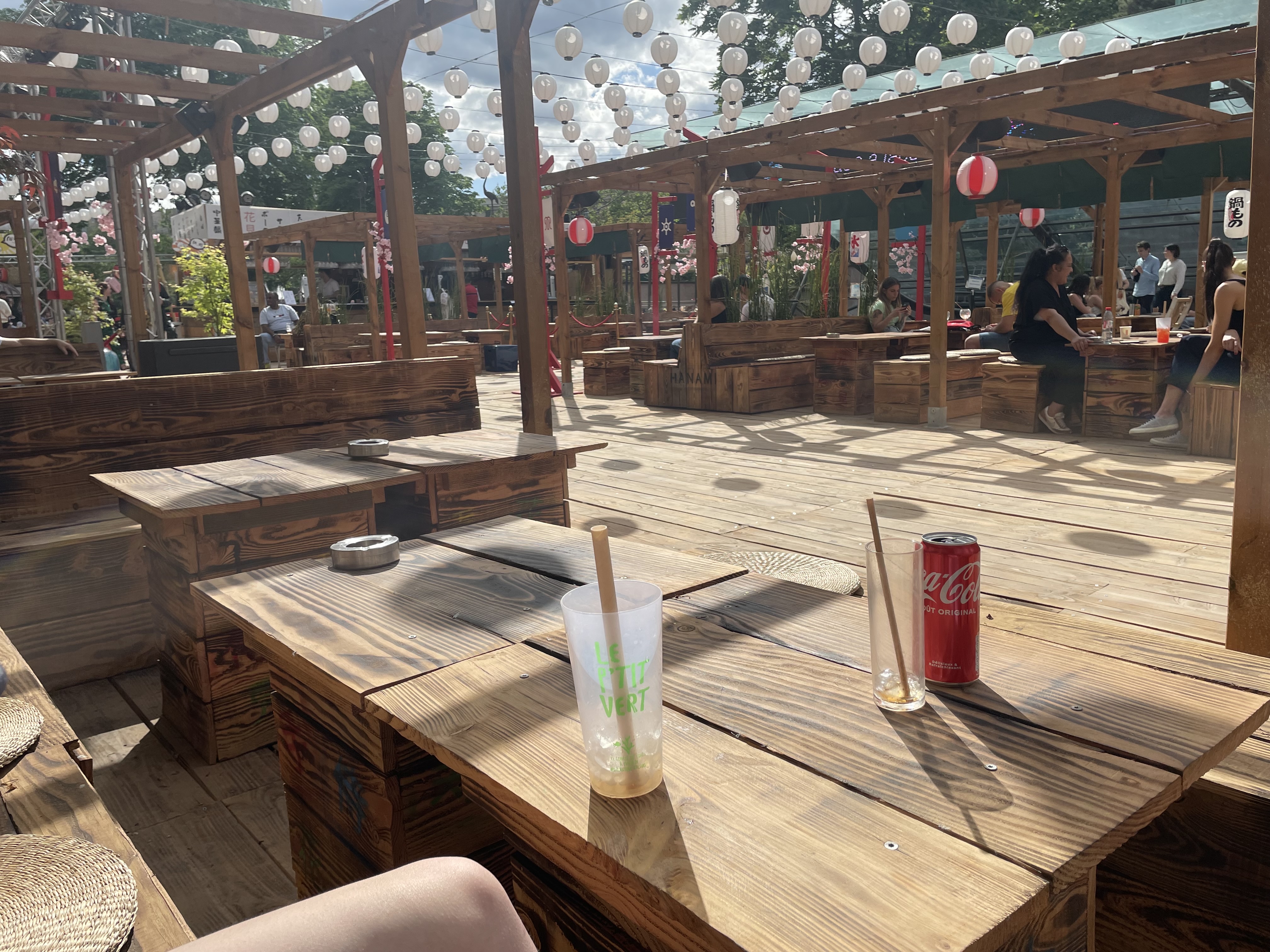 Une belle initiative de créer un espace ouvert « food court » en reprenant l’idée du « Hanami » La Fête des Cerisiers au Japon ! Les stands, allées et espaces de restauration sont à l’image d’un Matsuri au Japon et ses Yatai 🤩 Une ambiance de fête dans laquelle on se laisse inviter assez vite ! En revanche on déchante également assez vite 😣 Les plats proposés ne sont pour la plupart japonais que d’inspiration ou de connotation 😅. Et quand ils sont authentiques, comme le Takoyaki (boules fourrées à la poulpe)… Ils sont malheureusement mal exécutés 😅. L’organisation est également à revoir pour la récupération des plats. J’aurais aimé un système de biper ou à défaut, un écran d’affichage de numéro de commande, au lieu de se voir contraint d’attendre et de guetter son numéro de commande crié par les pauvres préparateurs 😅 Bref, l’initiative est à saluer mais peut mieux faire 💪