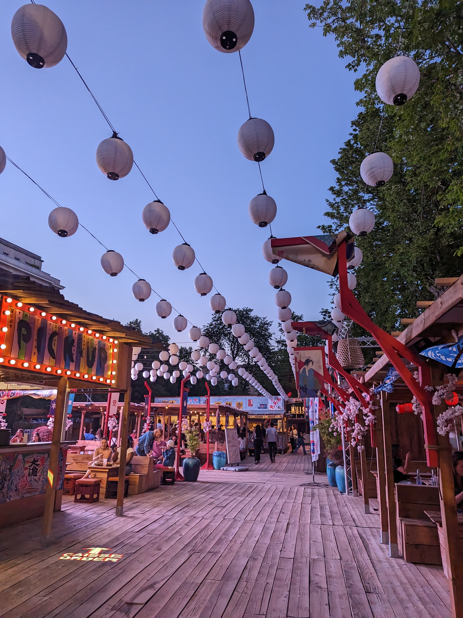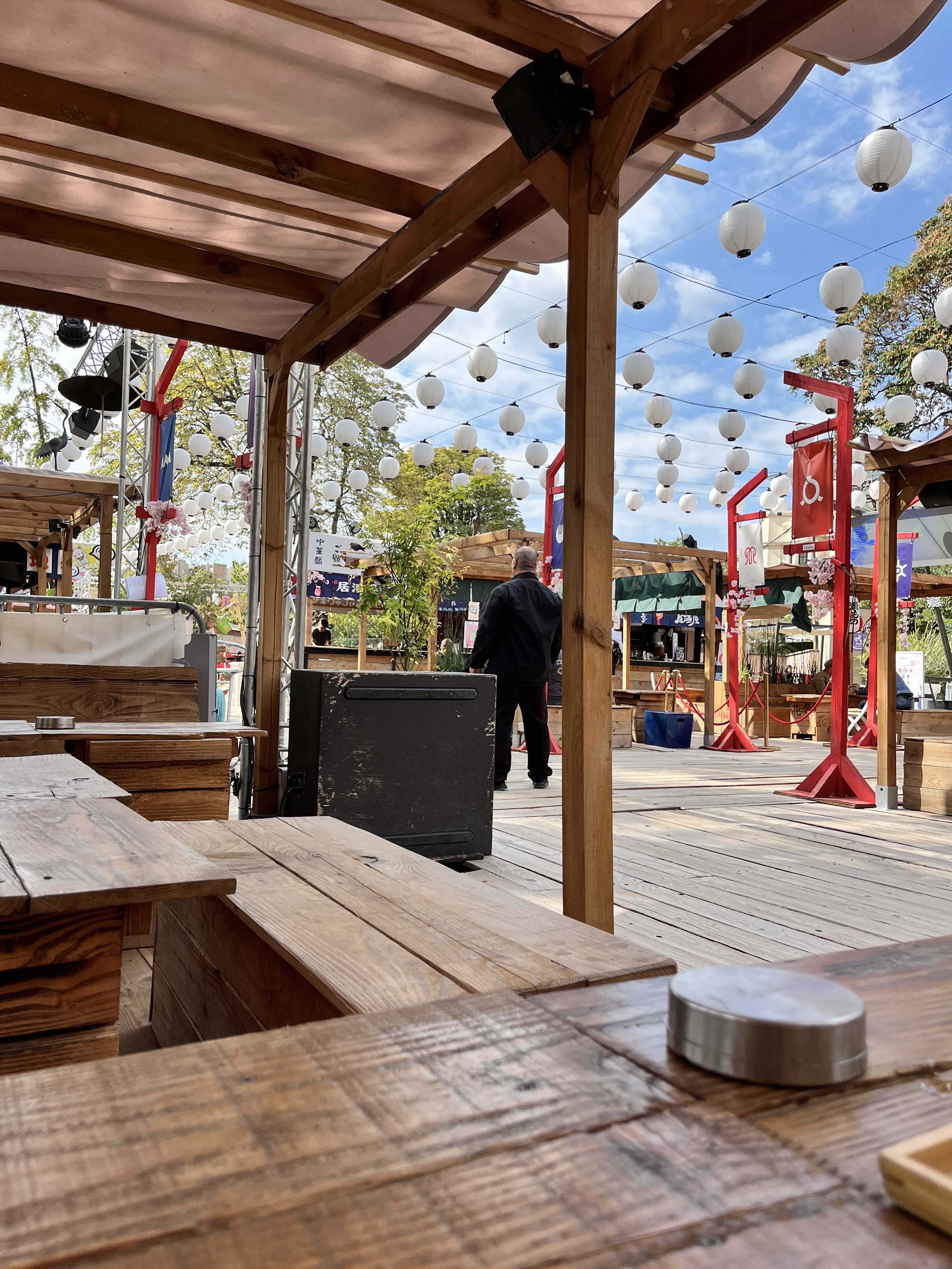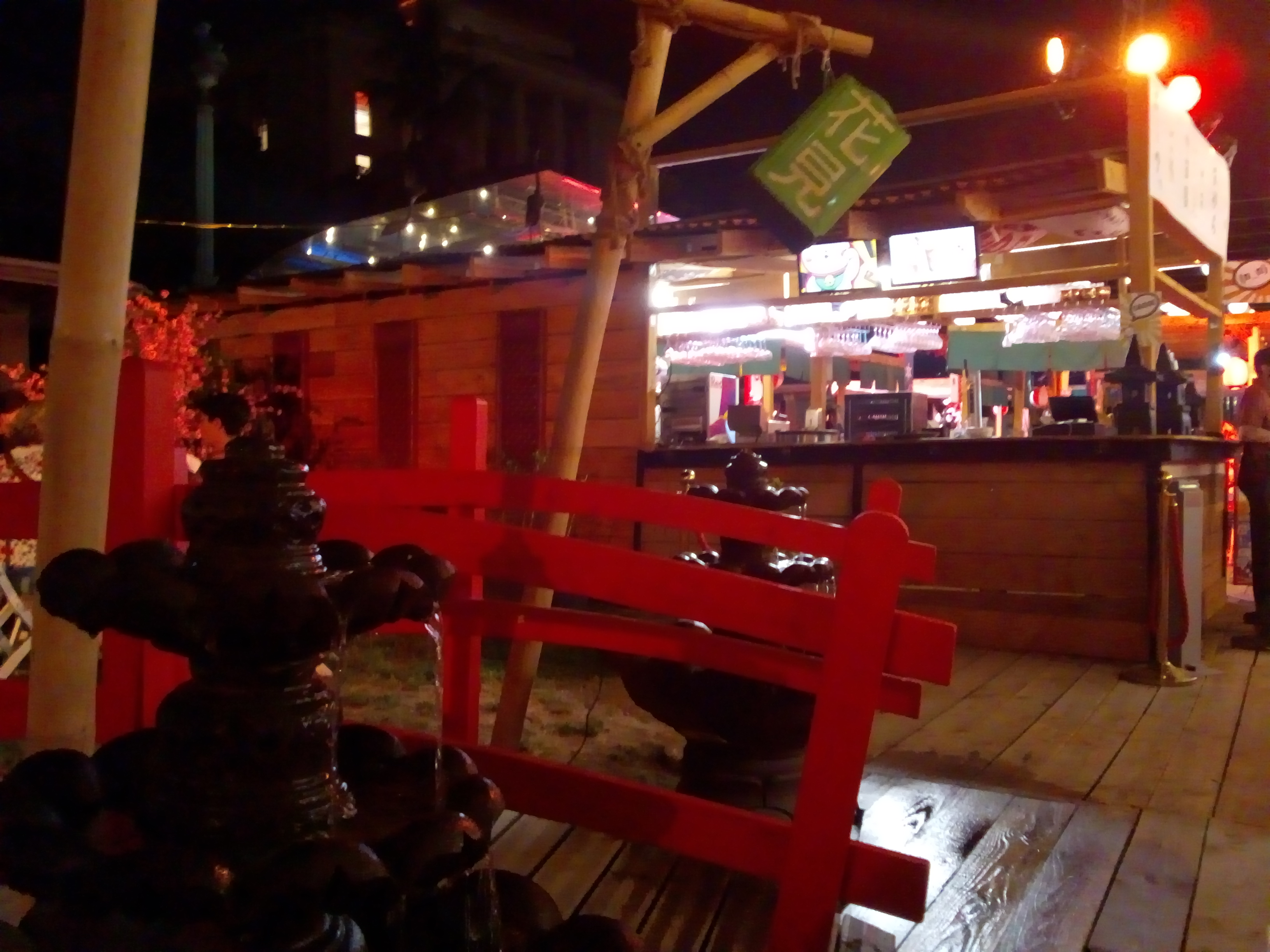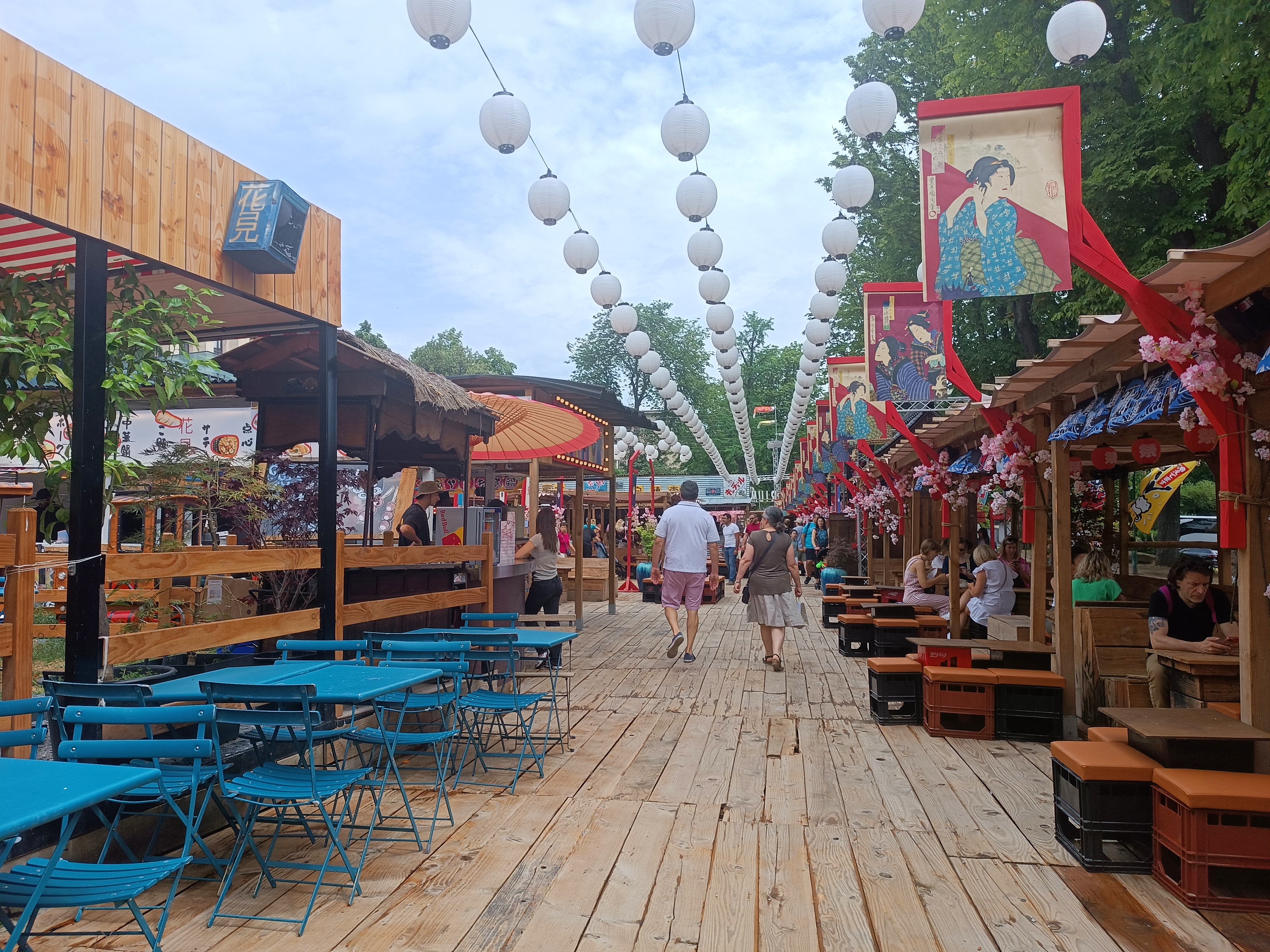 Une belle initiative de créer un espace ouvert « food court » en reprenant l’idée du « Hanami » La Fête des Cerisiers au Japon ! Les stands, allées et espaces de restauration sont à l’image d’un Matsuri au Japon et ses Yatai 🤩 Une ambiance de fête dans laquelle on se laisse inviter assez vite ! En revanche on déchante également assez vite 😣 Les plats proposés ne sont pour la plupart japonais que d’inspiration ou de connotation 😅. Et quand ils sont authentiques, comme le Takoyaki (boules fourrées à la poulpe)… Ils sont malheureusement mal exécutés 😅. L’organisation est également à revoir pour la récupération des plats. J’aurais aimé un système de biper ou à défaut, un écran d’affichage de numéro de commande, au lieu de se voir contraint d’attendre et de guetter son numéro de commande crié par les pauvres préparateurs 😅 Bref, l’initiative est à saluer mais peut mieux faire 💪