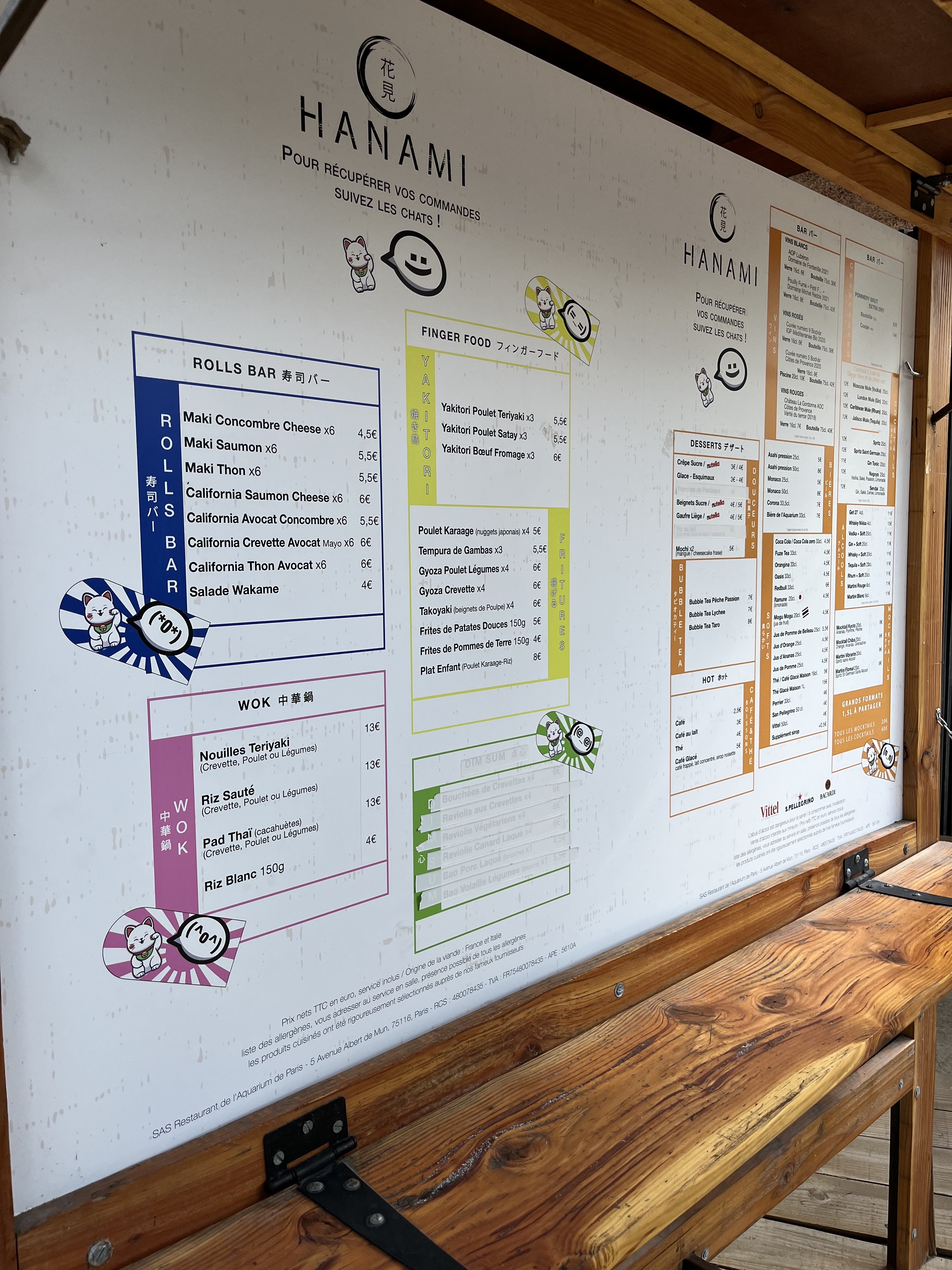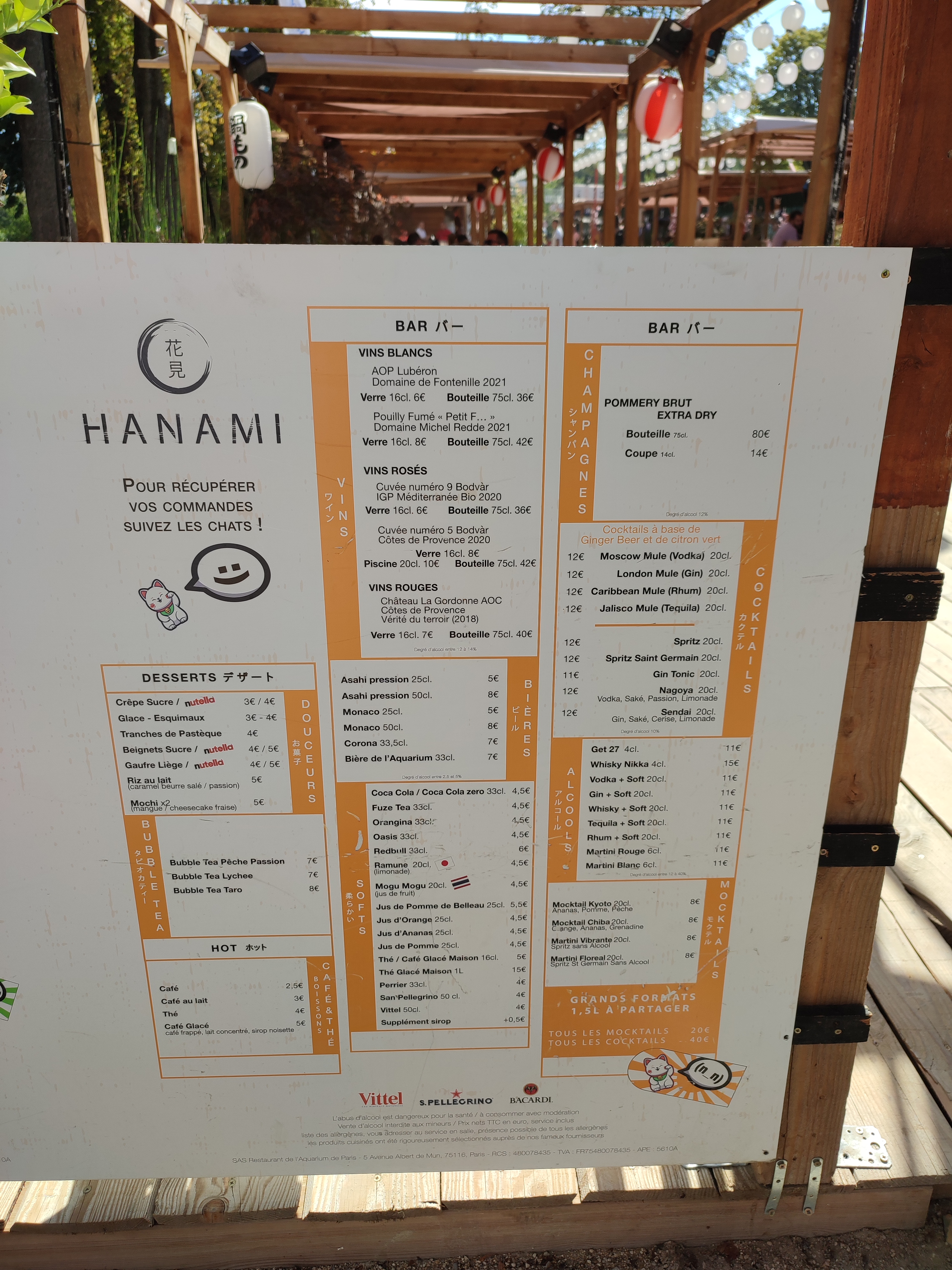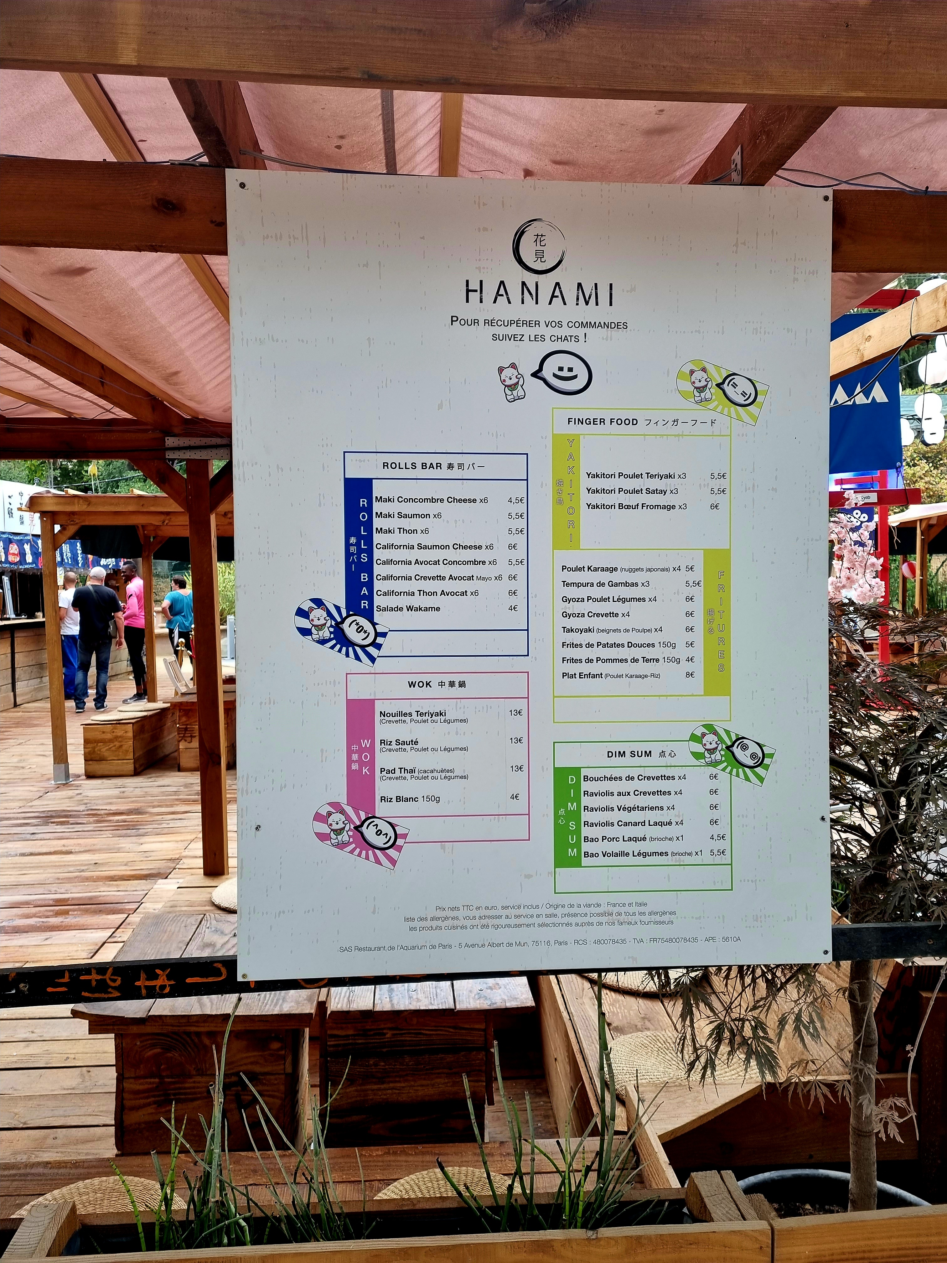 Très belle localisation et très belle endroit. Hanami est situé juste devant l'aquarium de Paris. L'endroit est génial pour boire un verre ou manger en extérieur (et surtout près de la tour Eiffel) Par contre attention aux nombreuses guêpes qui rôdent autour de la nourriture. La qualité de la nourriture est pas top et est cher pour ce que c'est. Mais j'imagine que c'est lié au quartier.
