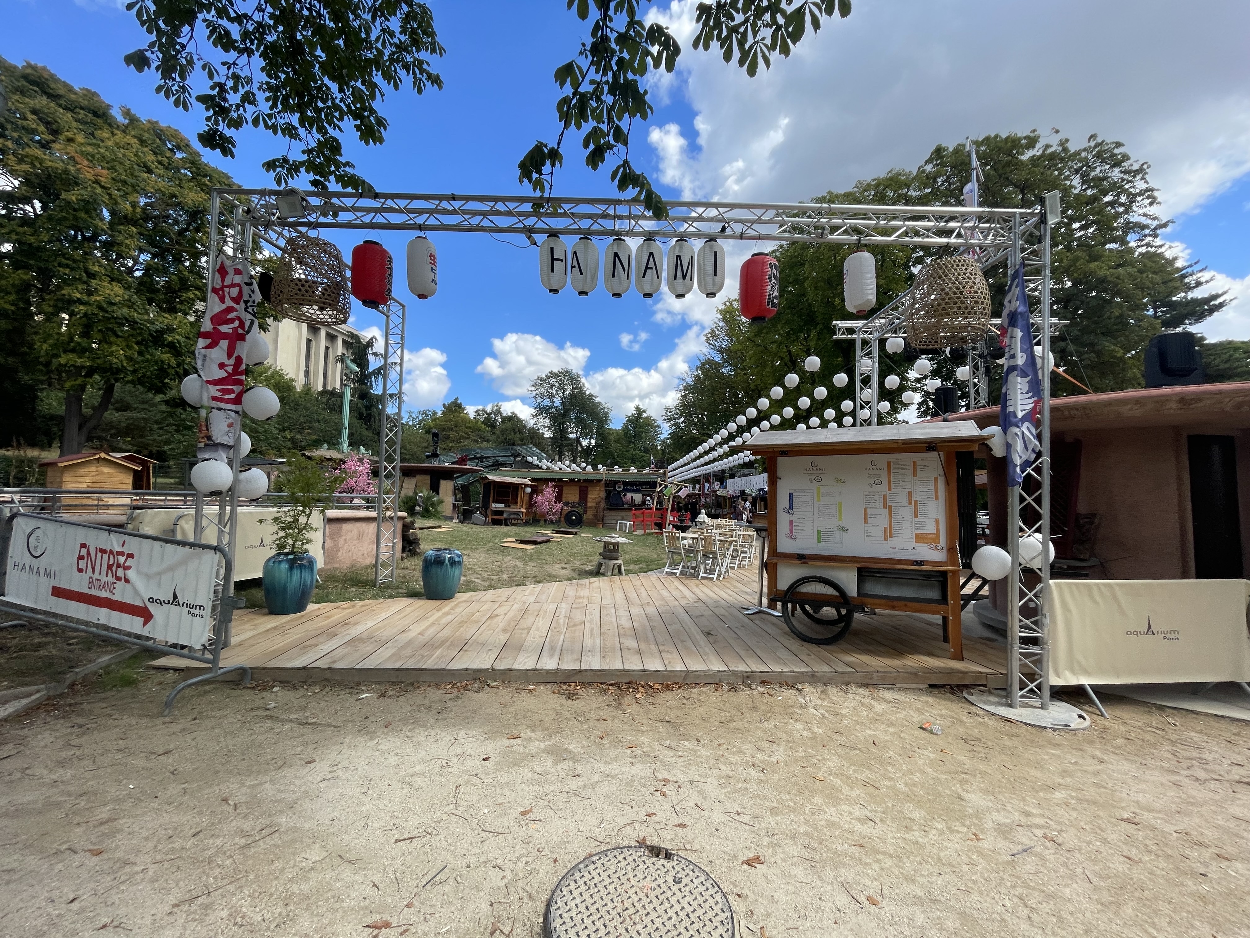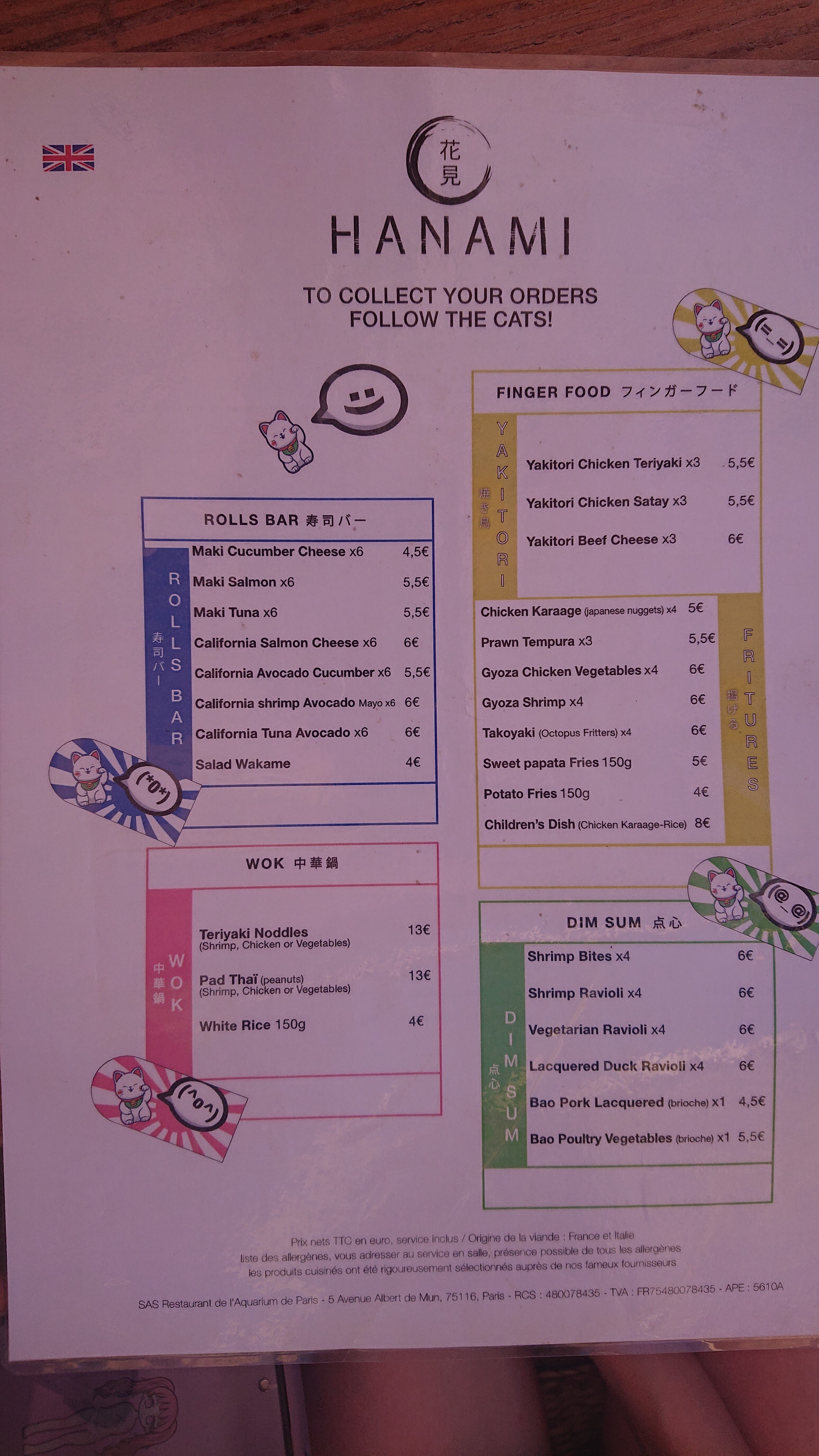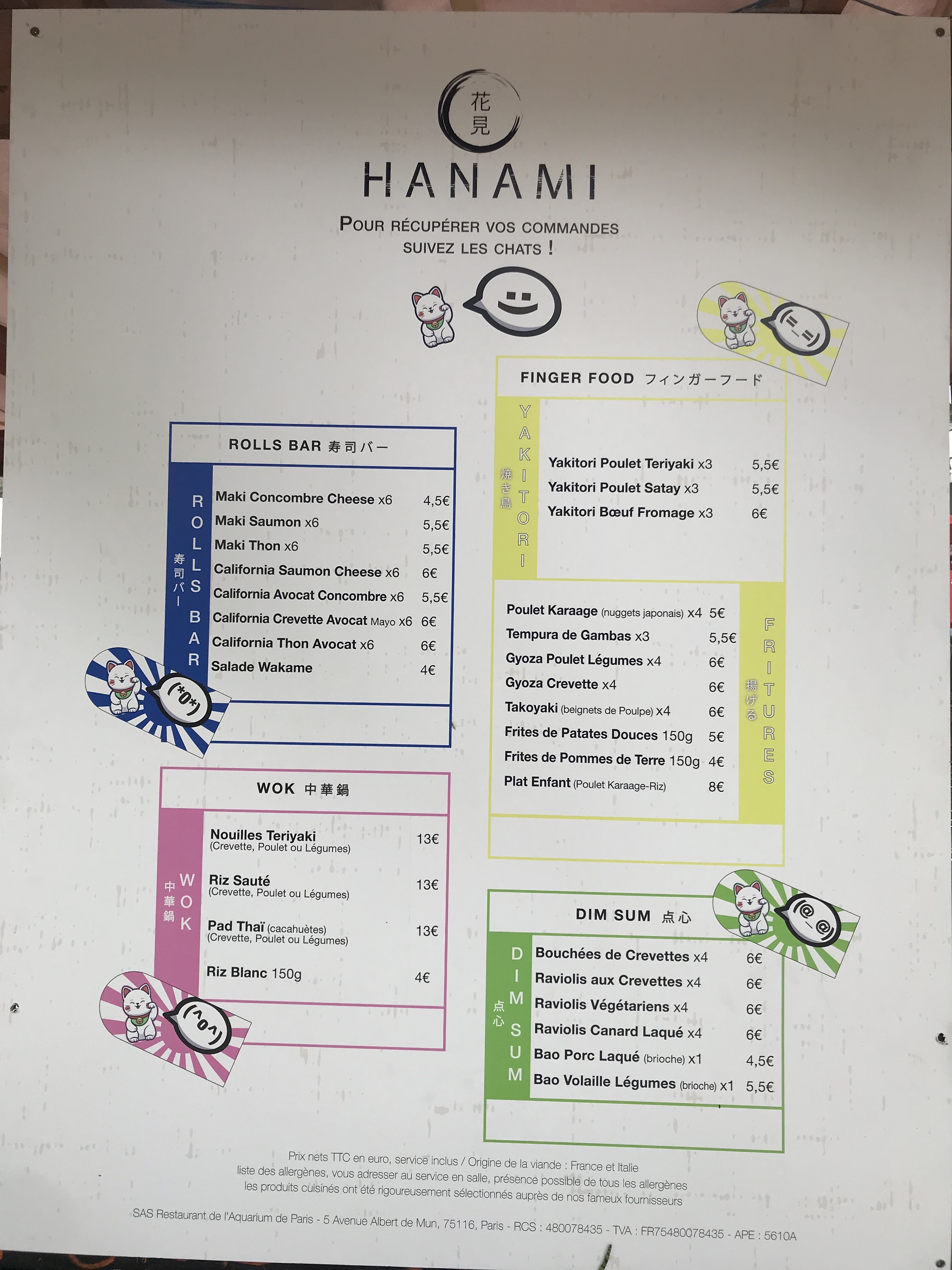 Très belle localisation et très belle endroit. Hanami est situé juste devant l'aquarium de Paris. L'endroit est génial pour boire un verre ou manger en extérieur (et surtout près de la tour Eiffel) Par contre attention aux nombreuses guêpes qui rôdent autour de la nourriture. La qualité de la nourriture est pas top et est cher pour ce que c'est. Mais j'imagine que c'est lié au quartier.