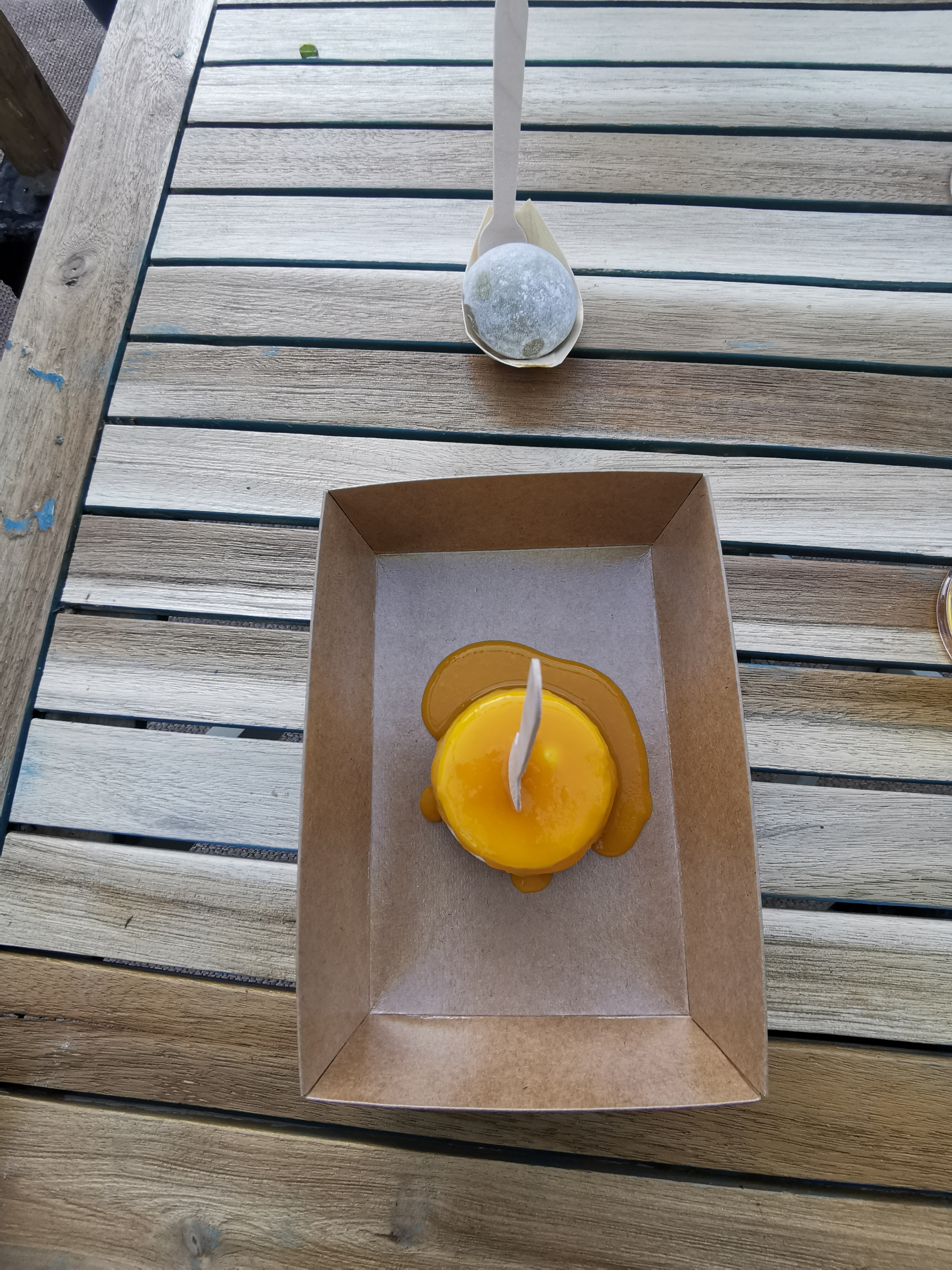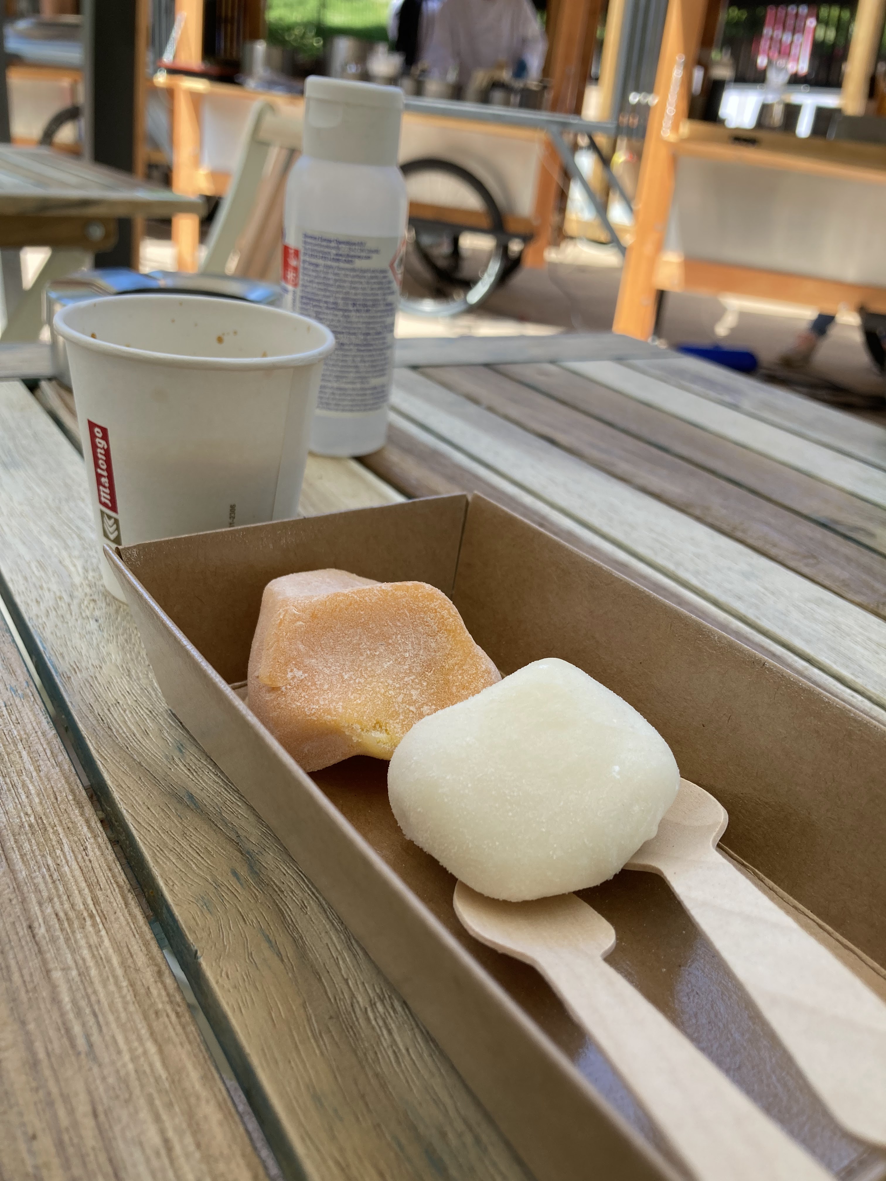 Superbe lieu. Très agréable quand il fait beau. La commande se fait par le qr code ( on ne nous l’avait pas expliqué, d’où une certaine attente avant d’être servi!! 😊) Les mochis ne sont pas les meilleurs du monde