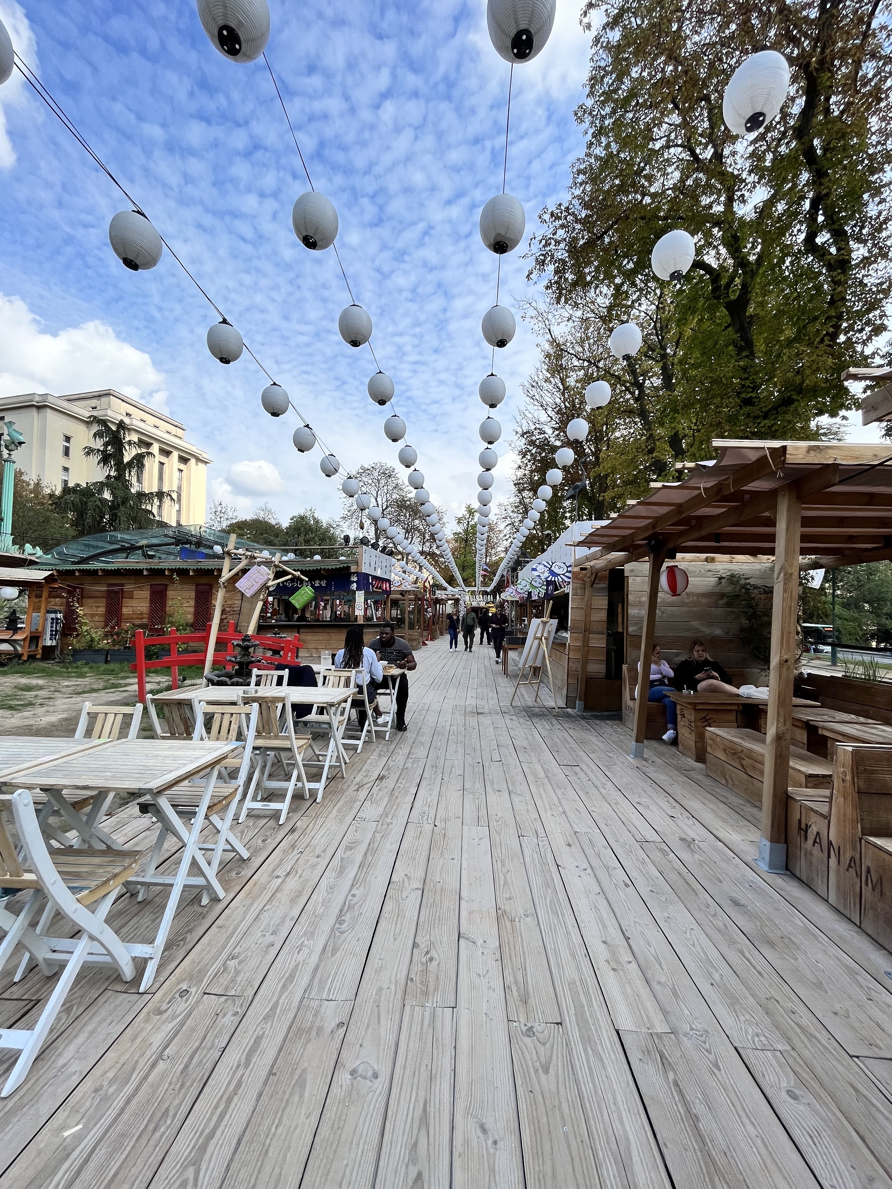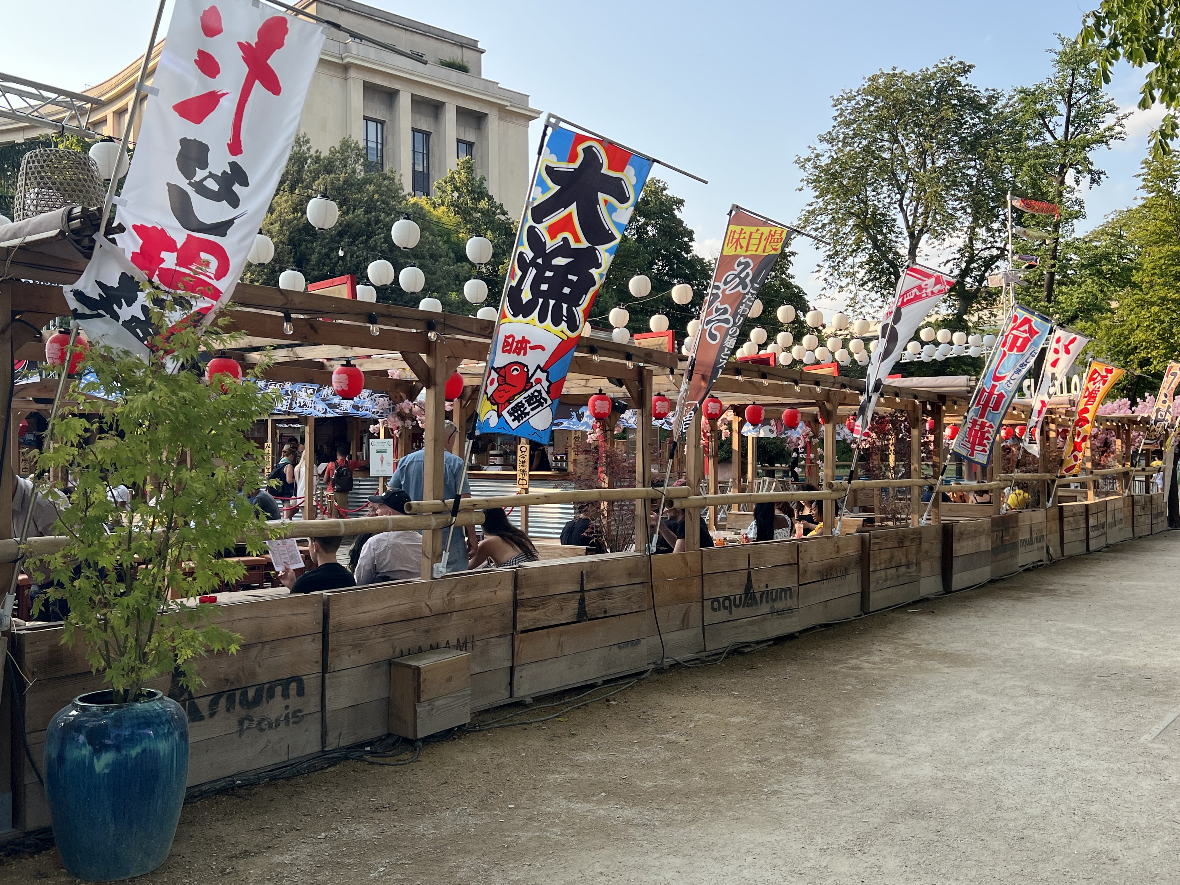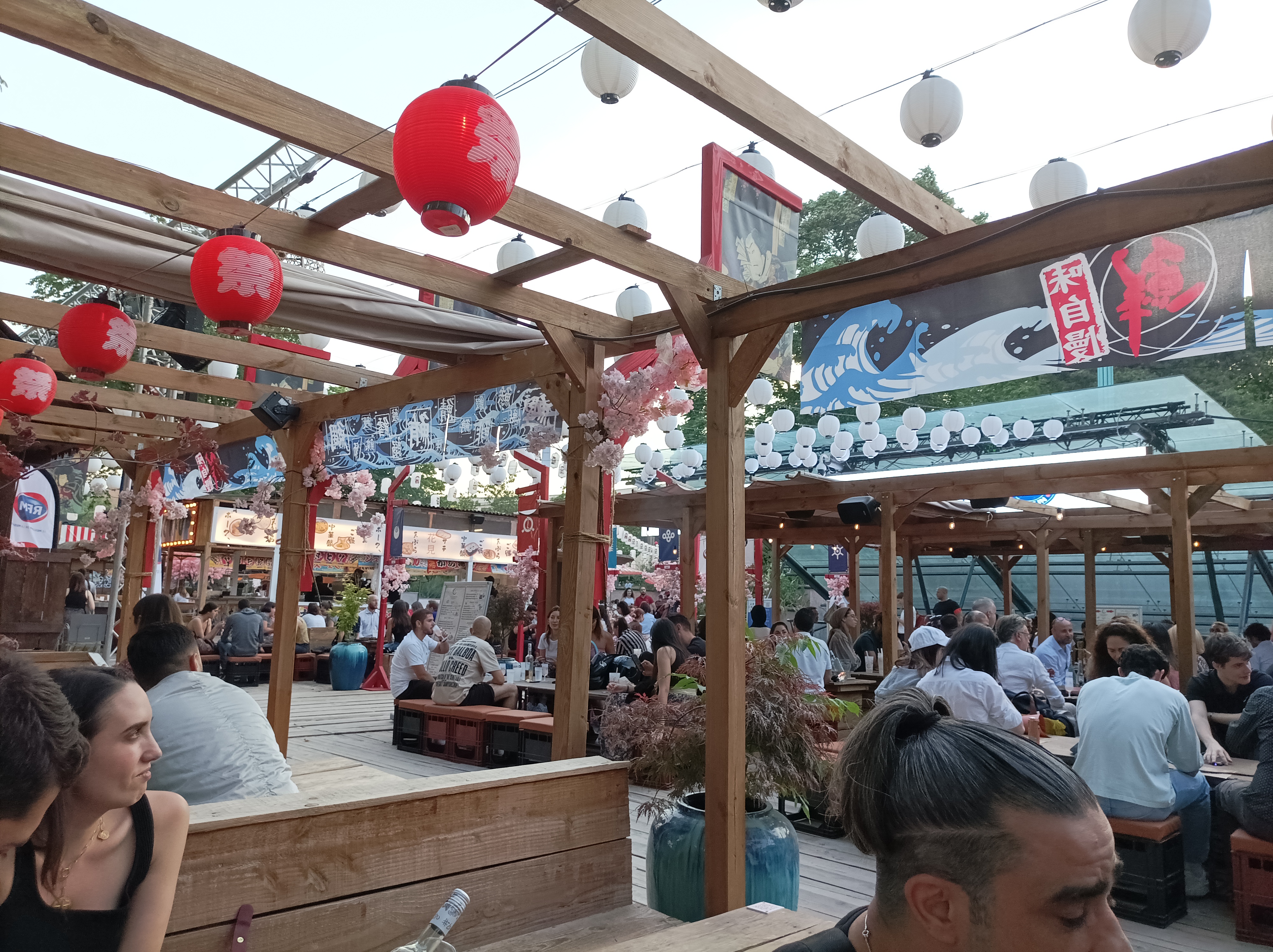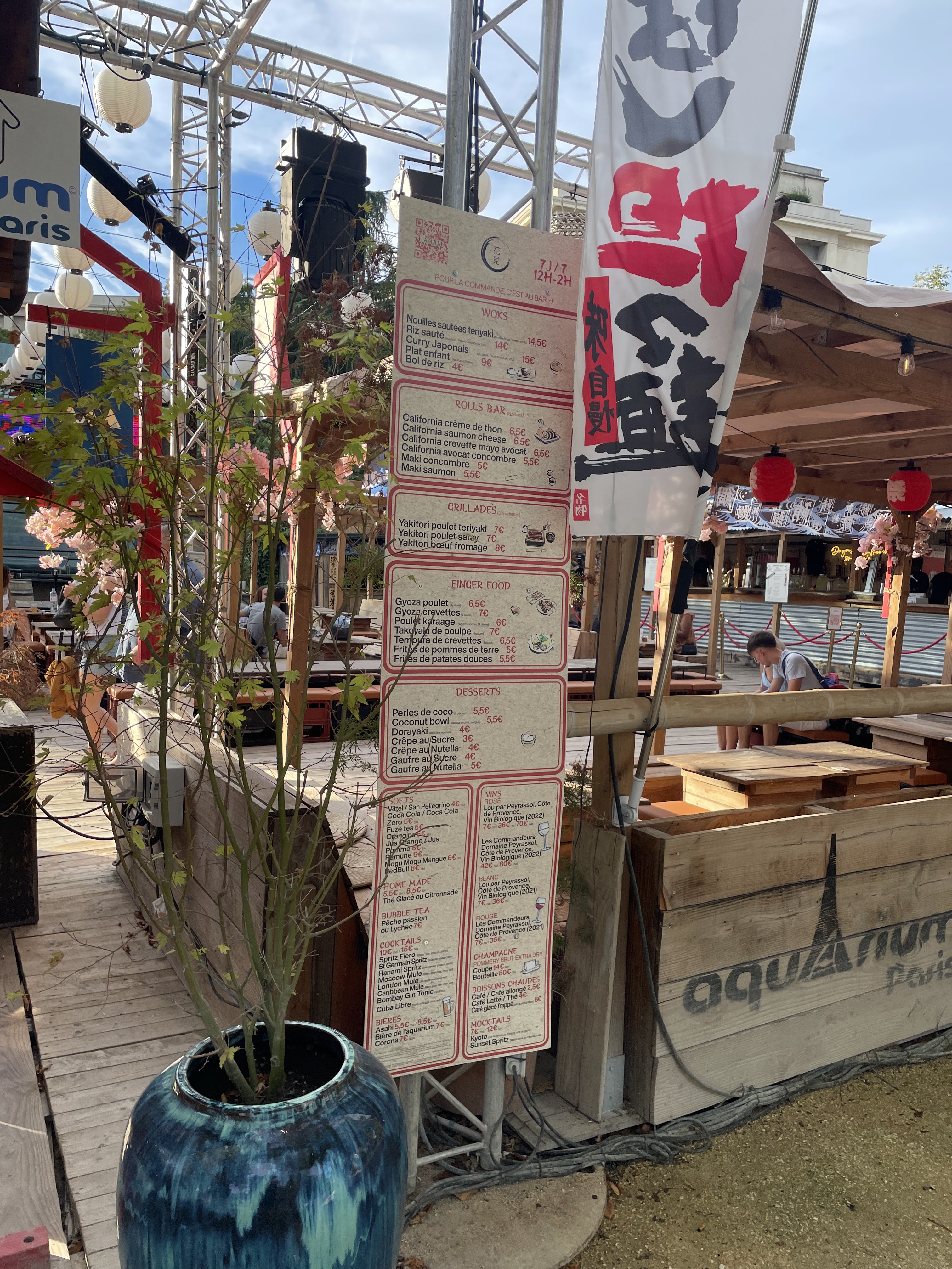 Spot éphémère situé à deux pas du Trocadéro et collé à l’Aquarium de Paris. Pas de réservation le jeudi, du coup venez plutôt tôt pour avoir une table. Après quoi l’entrée se fait au compte goutte. Ambiance nocturne vraiment sympa avec lampions et déco japonaise. Nous sommes arrivées vers 19h30 et avons tout de suite trouvé une table où nous poser. Niveau restauration, contrairement à pas mal d’avis (mais peut être sommes nous bien tombés) on a testé les makis, gyozas, tempura, frites de patates douces, et franchement c’était plutôt bon. Le personnel était gentil et souriant. Les bémols : - la musique vraiment trop forte (difficile de s’entendre quand on vient là pour discuter et mal de crâne surtout), - le manque de stock niveau nourriture (plus de wok à 20h30, ça fait un peu tôt) - l’attente pour commander un truc à manger, vraiment vraiment longue (un système de QR code pour commander et régler depuis le téléphone ce serait top) - peu d’espèces pour le règlement - le rapport quantité prix, pas ouf (mais bon on est à Paris)