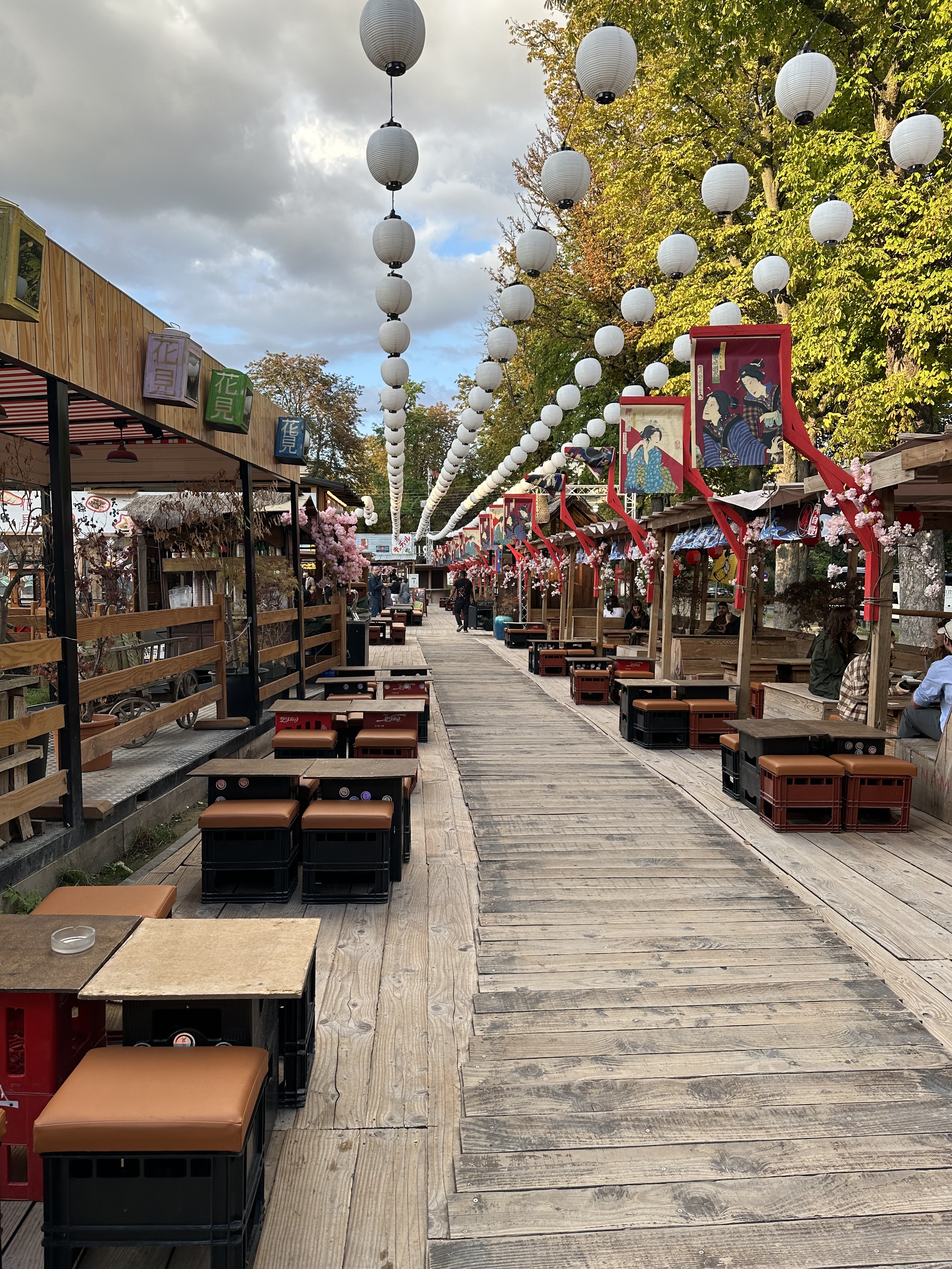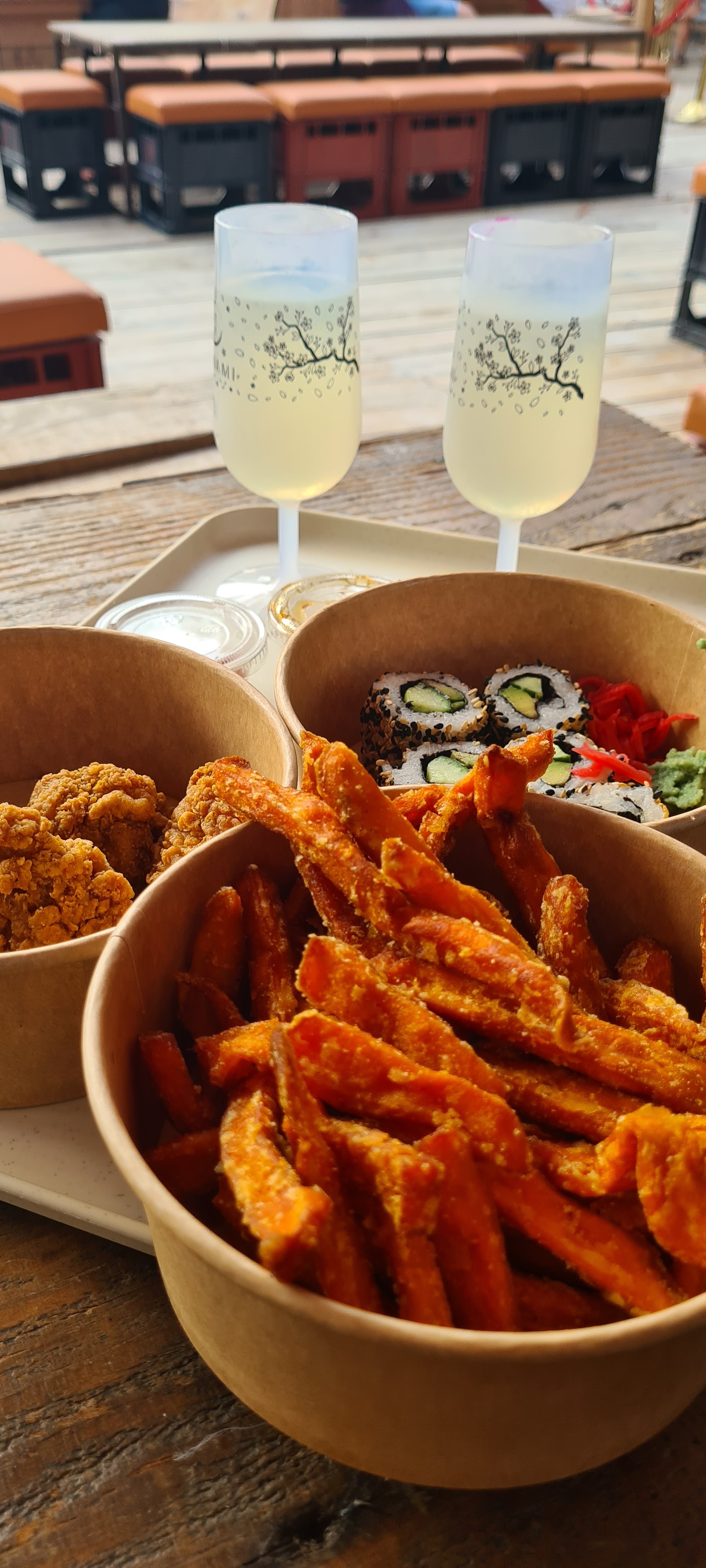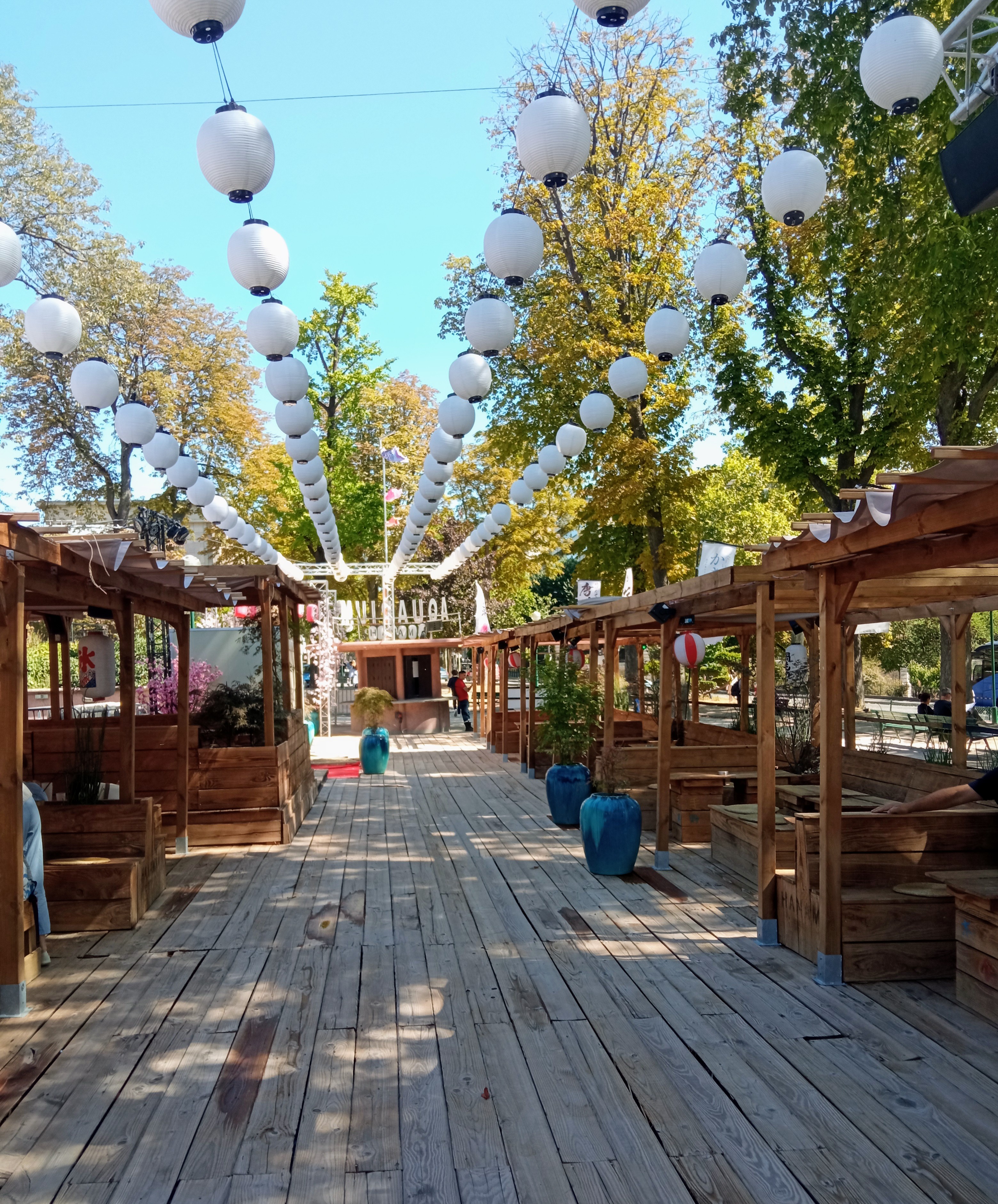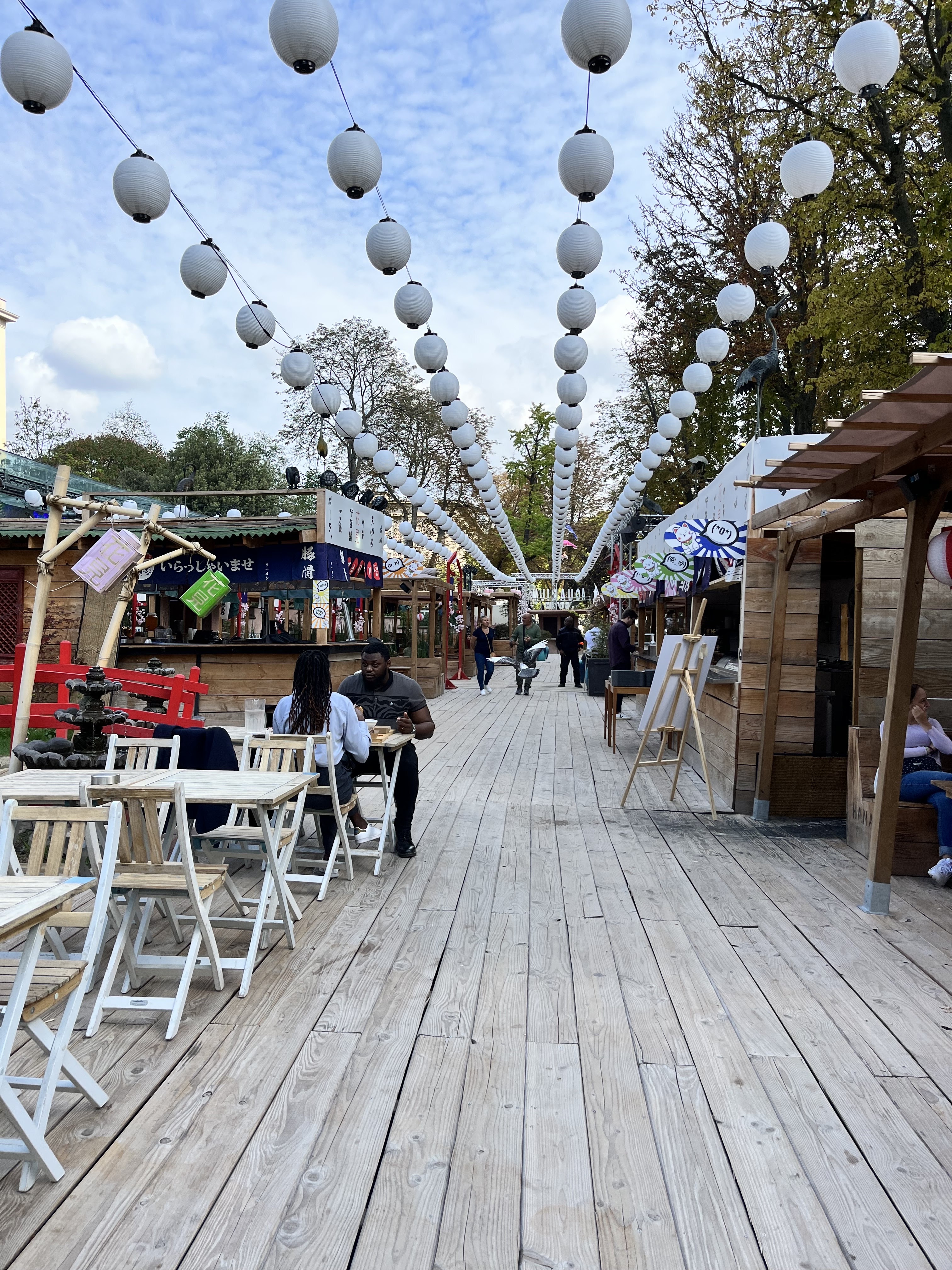 Spot éphémère situé à deux pas du Trocadéro et collé à l’Aquarium de Paris. Pas de réservation le jeudi, du coup venez plutôt tôt pour avoir une table. Après quoi l’entrée se fait au compte goutte. Ambiance nocturne vraiment sympa avec lampions et déco japonaise. Nous sommes arrivées vers 19h30 et avons tout de suite trouvé une table où nous poser. Niveau restauration, contrairement à pas mal d’avis (mais peut être sommes nous bien tombés) on a testé les makis, gyozas, tempura, frites de patates douces, et franchement c’était plutôt bon. Le personnel était gentil et souriant. Les bémols : - la musique vraiment trop forte (difficile de s’entendre quand on vient là pour discuter et mal de crâne surtout), - le manque de stock niveau nourriture (plus de wok à 20h30, ça fait un peu tôt) - l’attente pour commander un truc à manger, vraiment vraiment longue (un système de QR code pour commander et régler depuis le téléphone ce serait top) - peu d’espèces pour le règlement - le rapport quantité prix, pas ouf (mais bon on est à Paris)