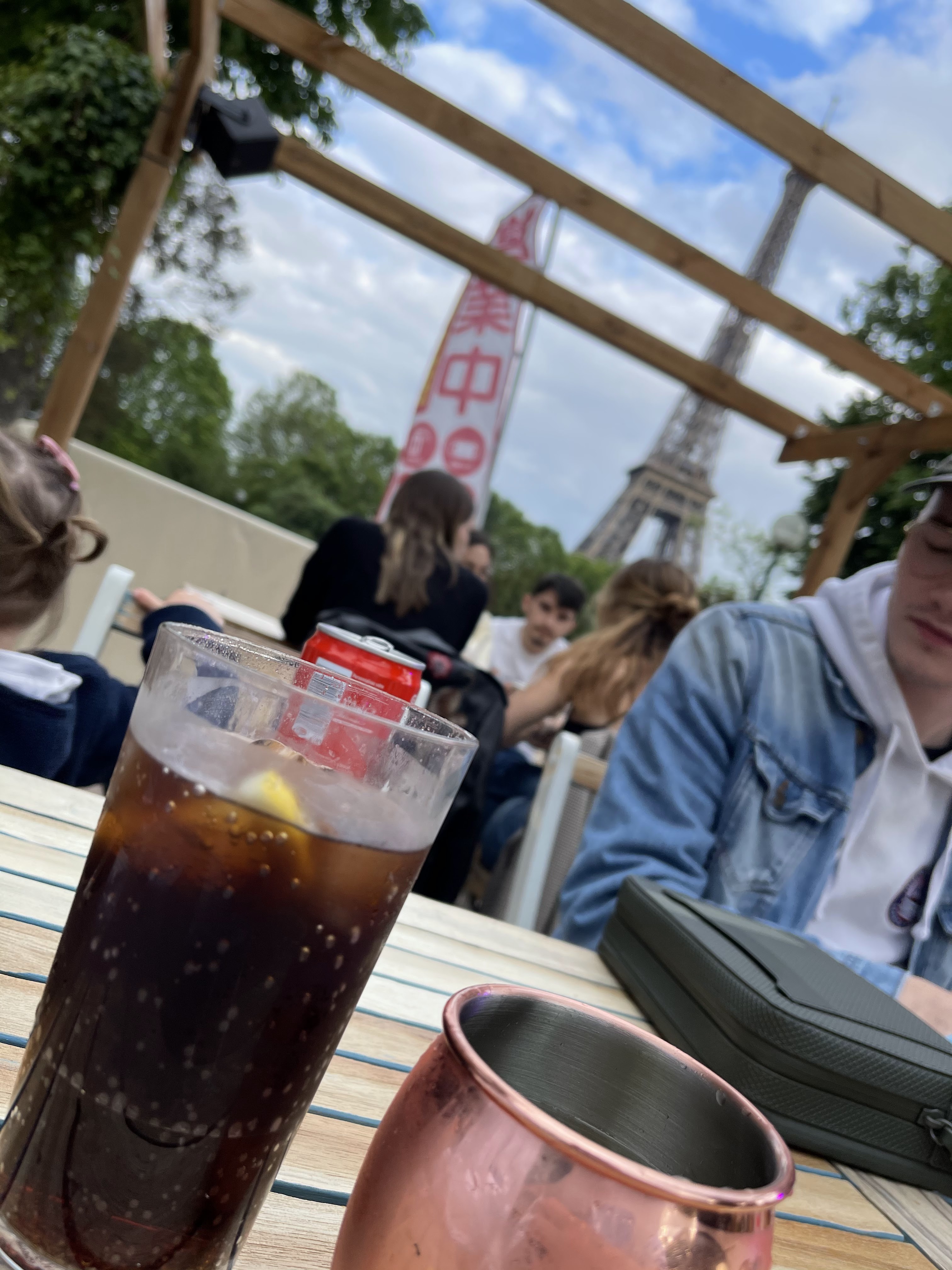Endroit vraiment bien situé pour voir la Tour eiffel, cadre et déco vraiment sympa. Par contre, niveau tarif et qualité il n'y a pas d'adéquation entre eux..trop cher pour ce que c'est ! Les gauffres froides et minuscules, c'est les même qu'on achètet au super marché ! Un peu déçu car je pense qu'il y a un vrai potentiel à exploiter