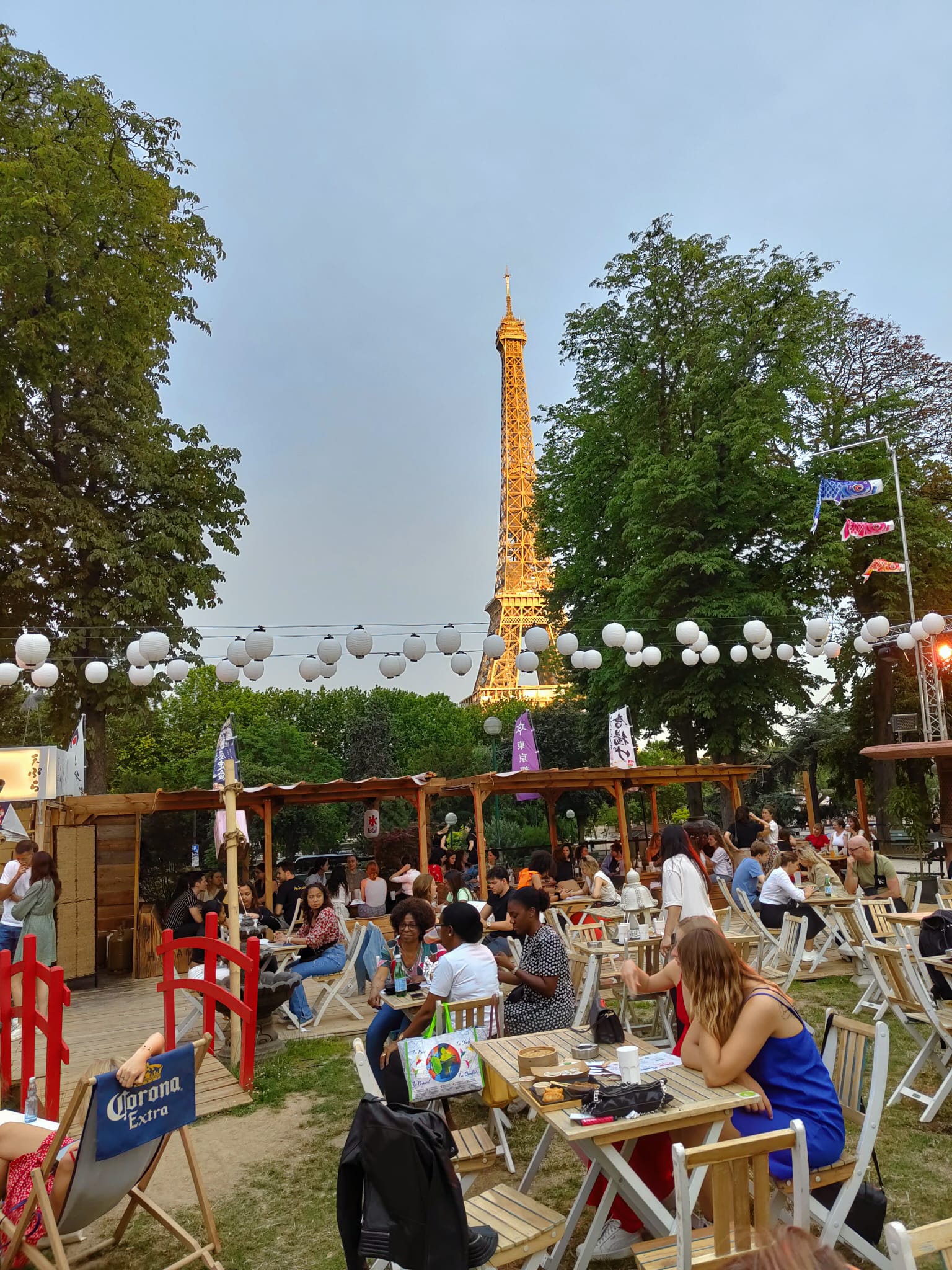 Idéale terrasse éphémère : bonne street food asiatique, super ambiance et merveilleux emplacement vue Tour Eiffel. A 19h, pas encore d'animation de soirée mais on commande sans faire la queue. Réservation possible. Très belle expérience que je recommande!