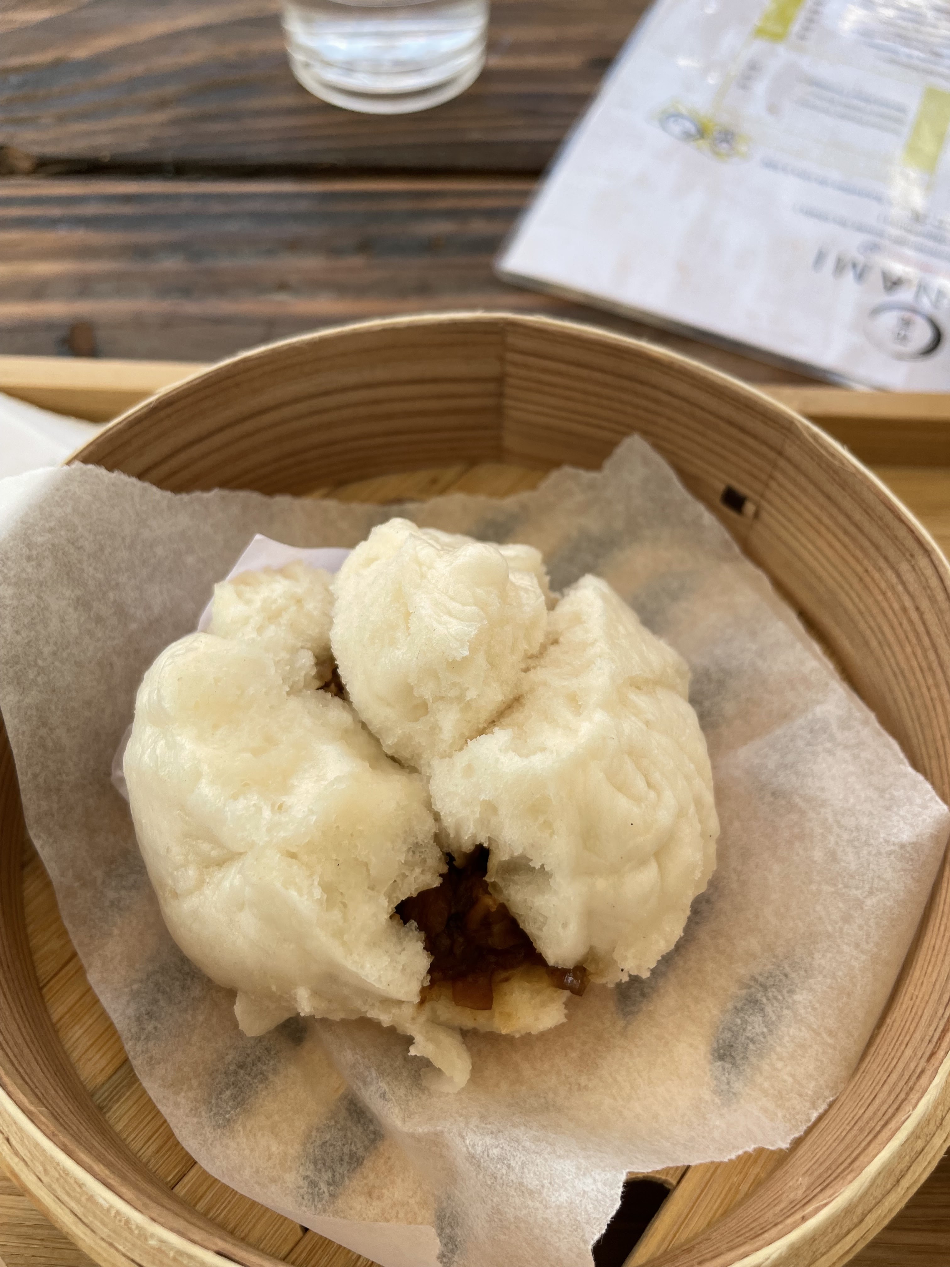 Cher, lent, fast food, mauvais service. Les photos sont des bao à 5.5€ pièce. Ils sont services cassés et déformés (voir les photos)