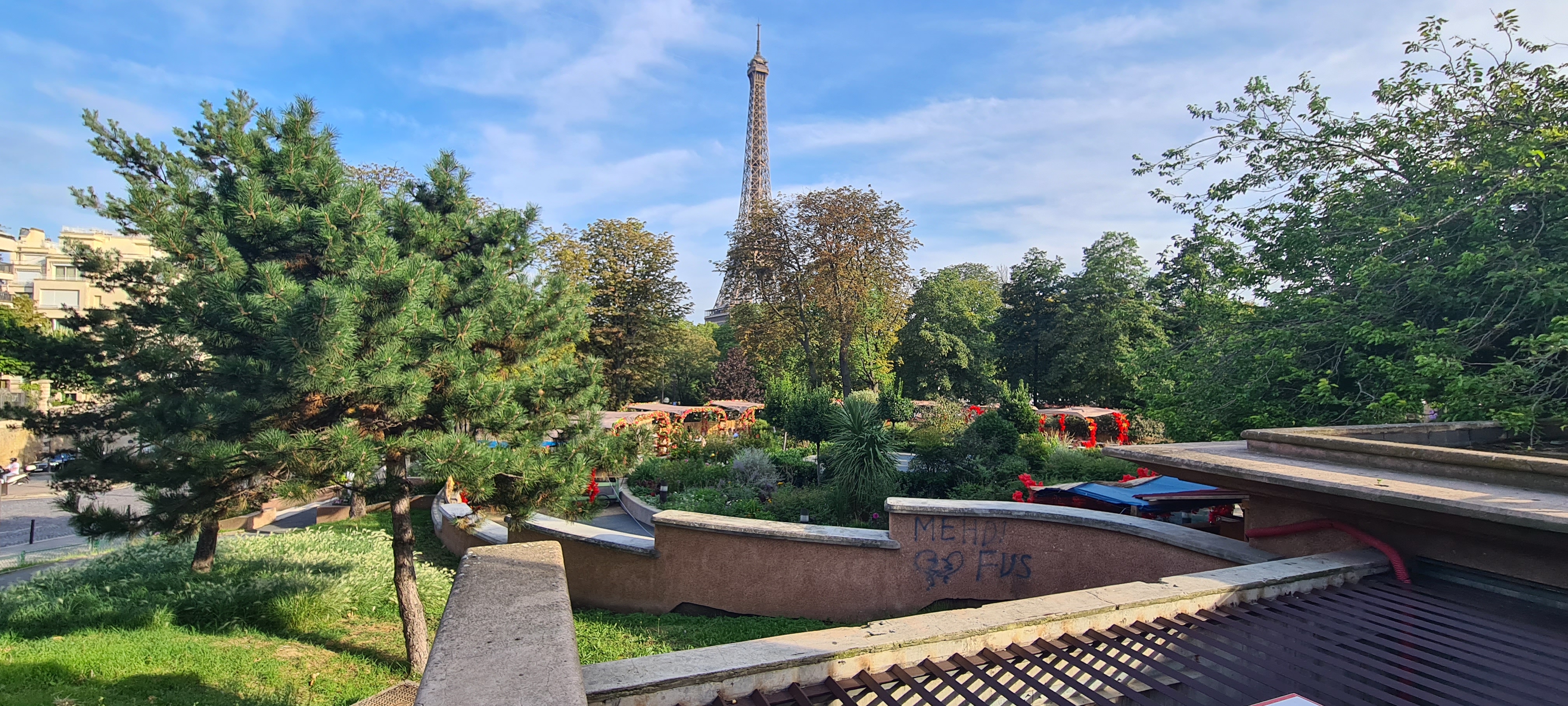 Un endroit très sympathique et agréable surtout et avant tout par beau temps Ambiance et le cadre sont fabuleux très belle vue sur la tour eiffel Un bon choix de plats de divers regions du monde La préparation des plats se fait plutôt rapidement