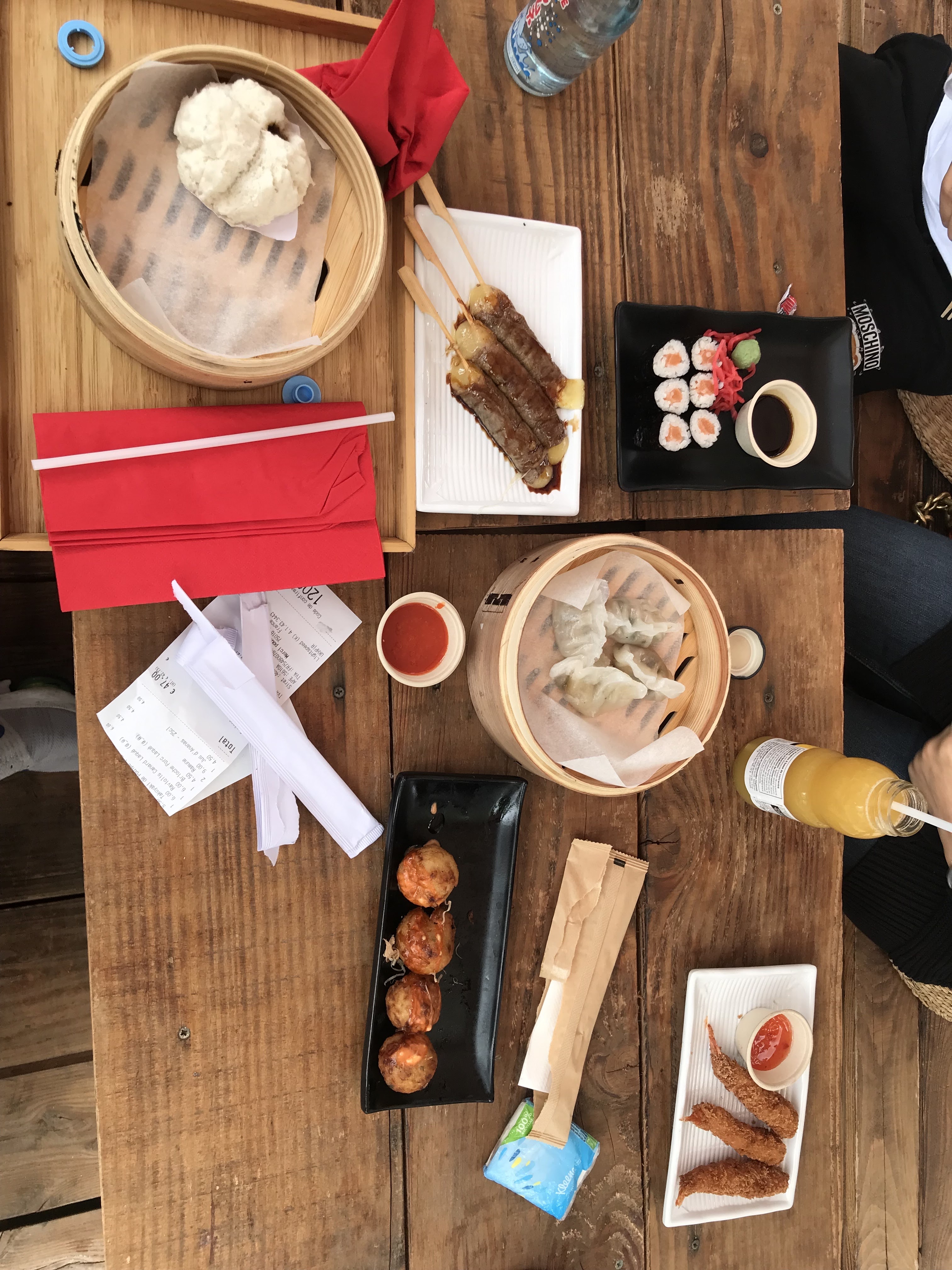 Nourriture correcte mais le service est vraiment pas à la hauteur, le stand de riz/nouille a carrément abandonné les commandes en cours sur les tickets et c’était à celui qui donne sa commande en premier dans la queue, une cacophonie total. Si vous souhaitez y aller pour la vue qui est quand même sublime, misez sur les brochettes, c’est rapide à avoir.