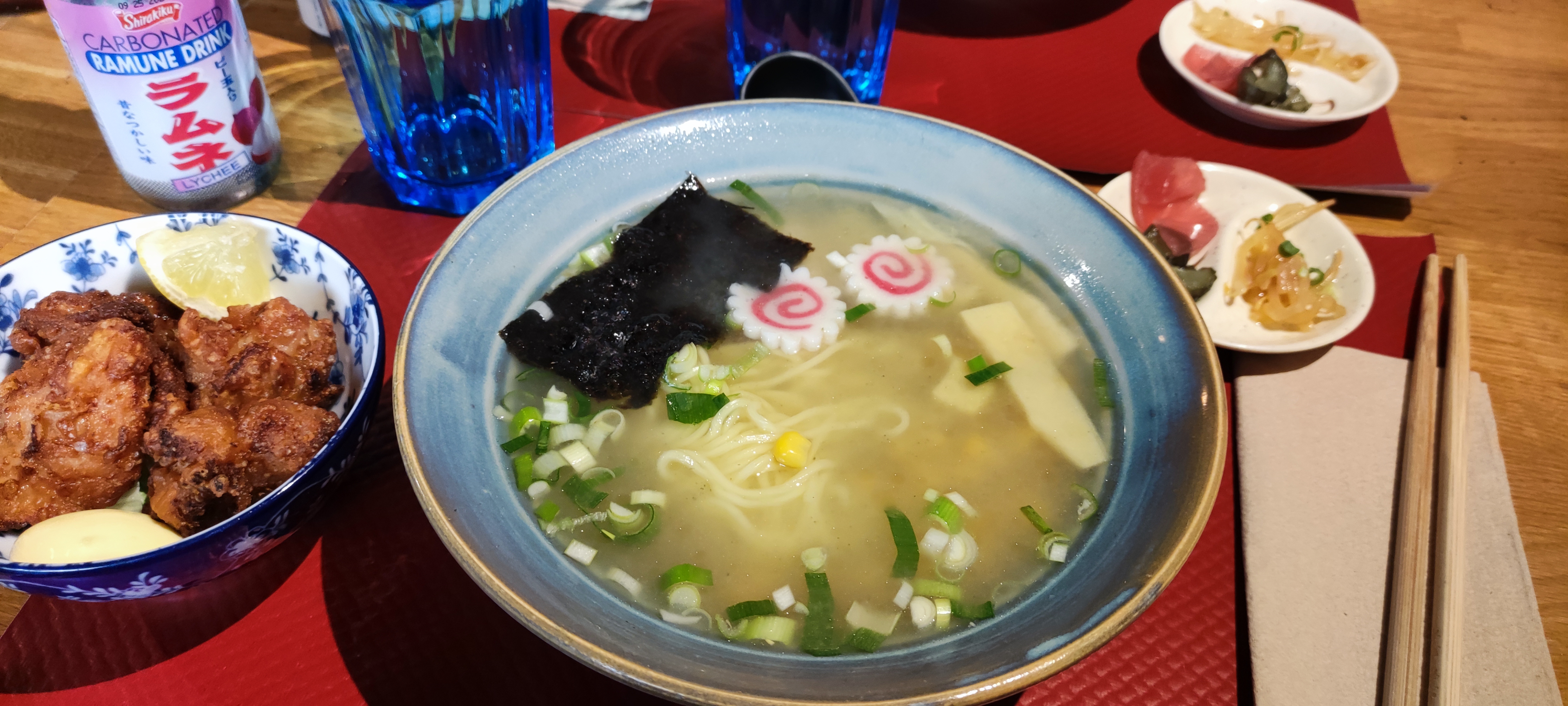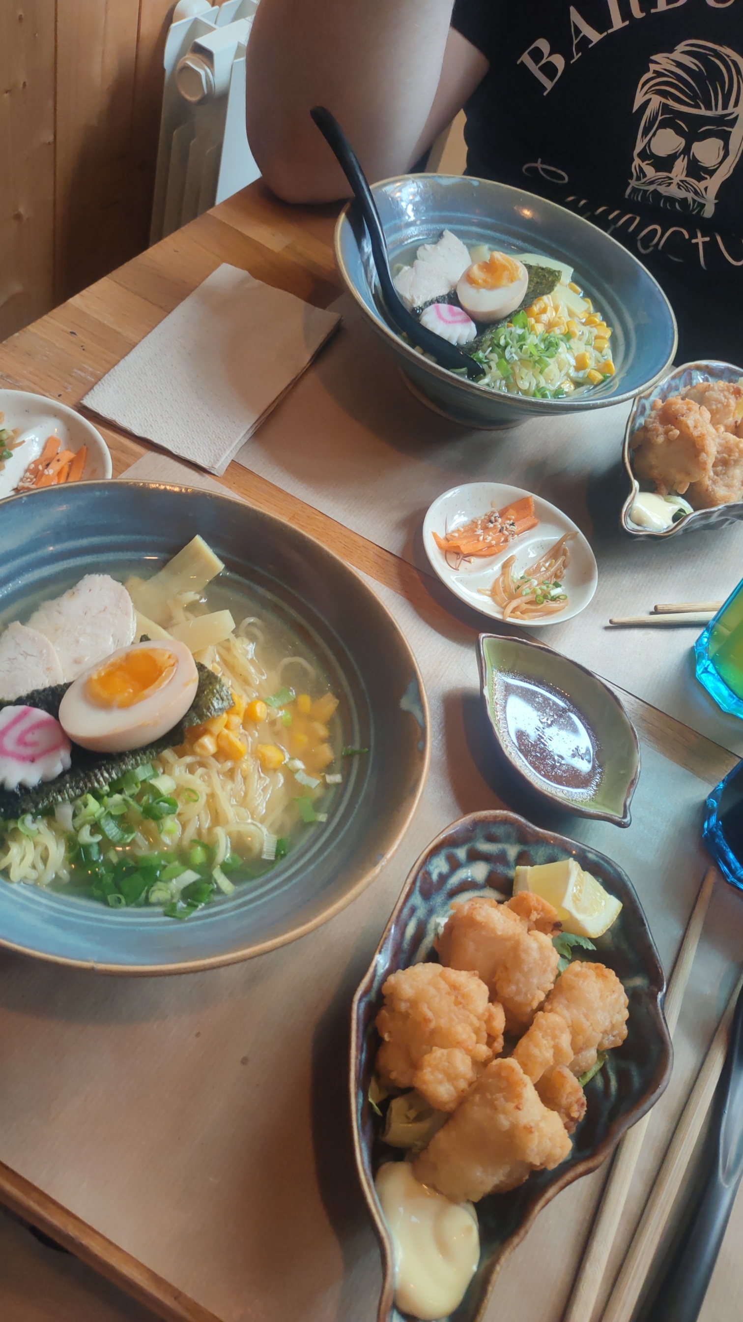 Je met 4, en vrai j'aurai mis 3 mais le service et le cadre est cool. Le personnel très sympathique. On est venu exprès pour le ramen mais finalement plutôt déçu. Je ne sais as si on est devenu trop difficile ou si s'est trop habitué aux ramens du quartier japonais de Paris mais mettre autant de soja et de maïs dans un ramen bof, ça nous a pas plu du tout. On aurait plus dit un mélange de pho / bobun /ramen. Les gyozas sont bon, mais que ceux au poulet. Ça reste sympathique. A essayer