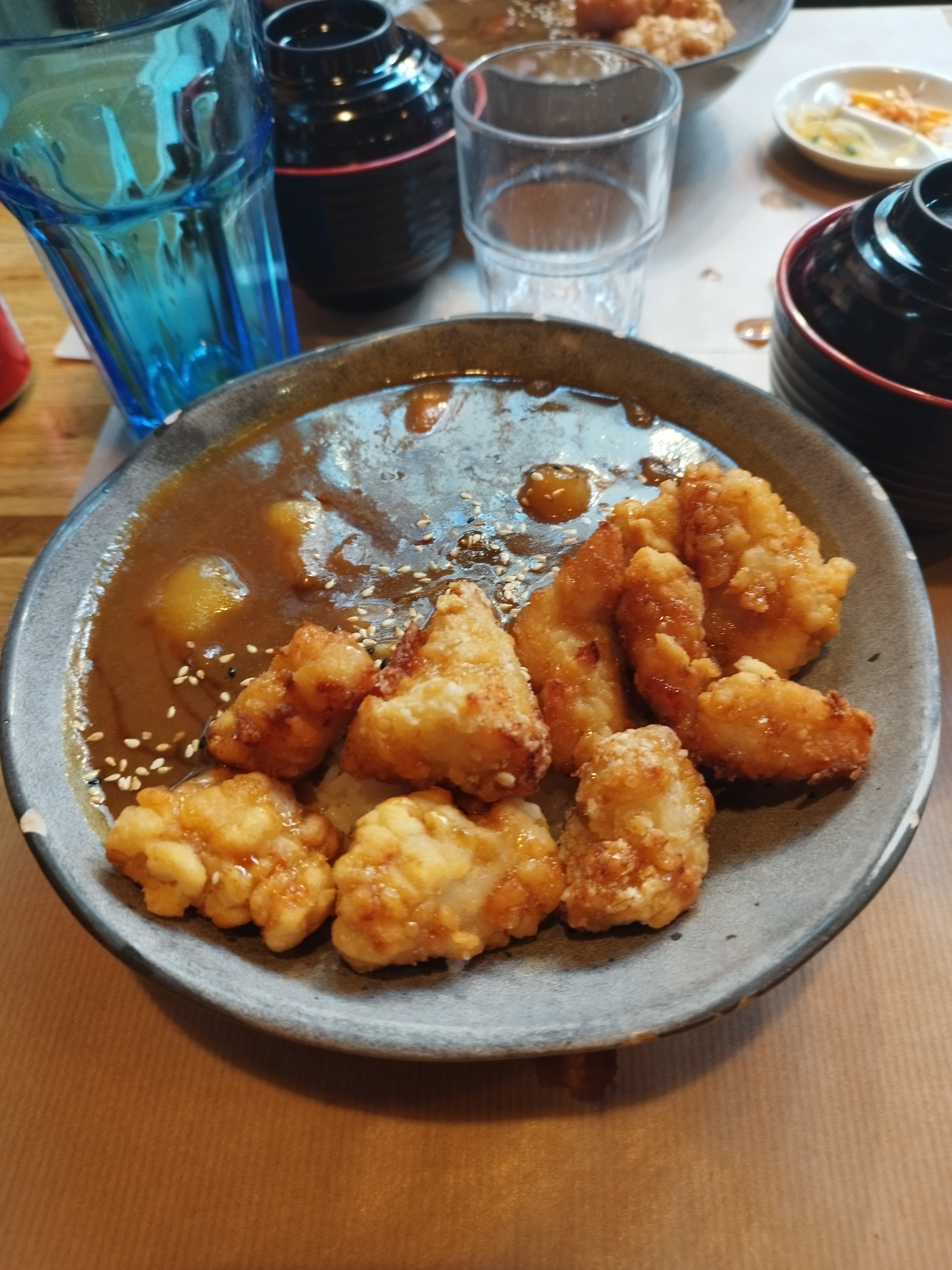 Posté le 26/10/2023 à 19:22"Tout simplement excellent !!! Leur poulet frit est une tuerie , pas sec du tout et avec beaucoup de goût. Mon plat était accompagné d’une bonne soupe miso et nous avons également eu en extra un petit assortiment de légumes. Mon ami a pris le menu entrée - plat à 16€ ( 7 gyozas et le currry au poulet frit ). Nous sommes ressortis très satisfaits. Le rapport qualité- prix est bien plus que correct. Le personnel était également très sympa! Je reviendrai très prochainement :) Pensez à réserver!"