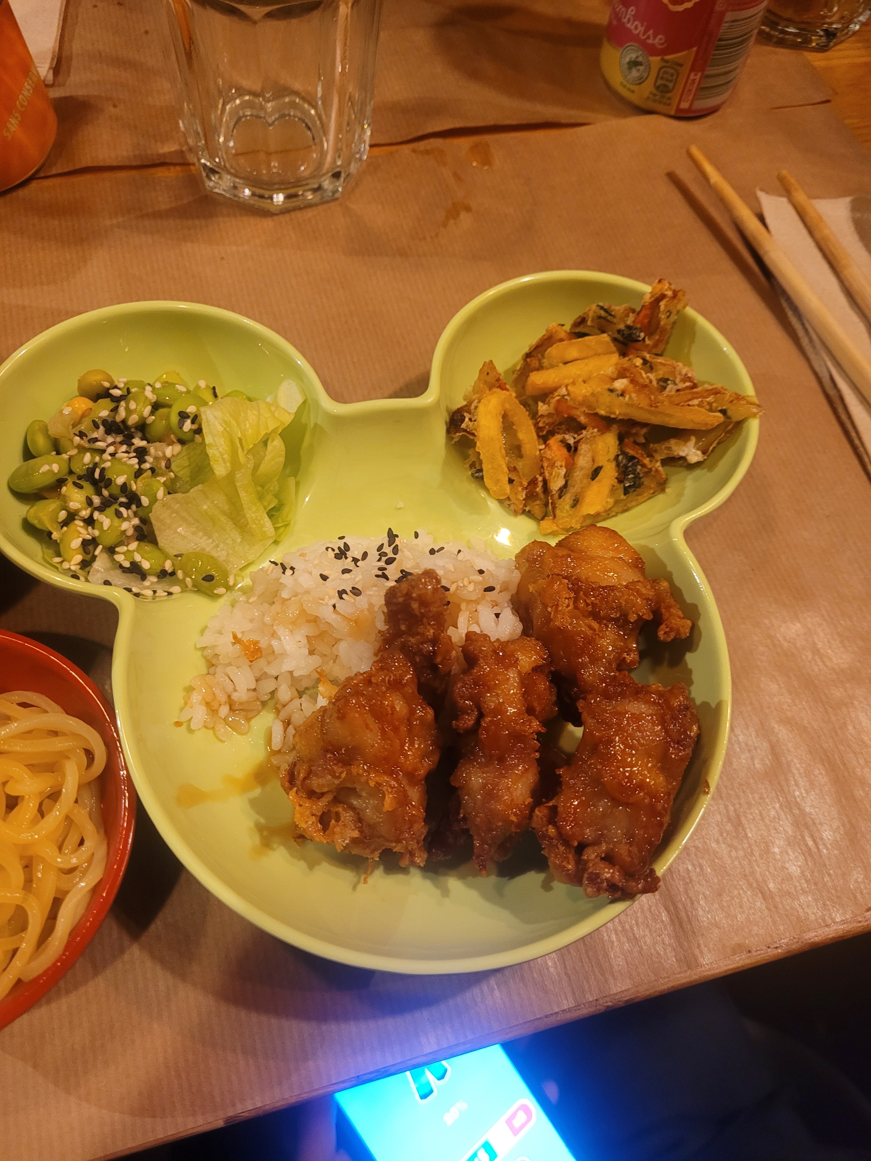Posté le 28/09/2020 à 17:24"Karaage (poulet fris mariné) et gyozas délicieux. Jolie décoration 🤩"