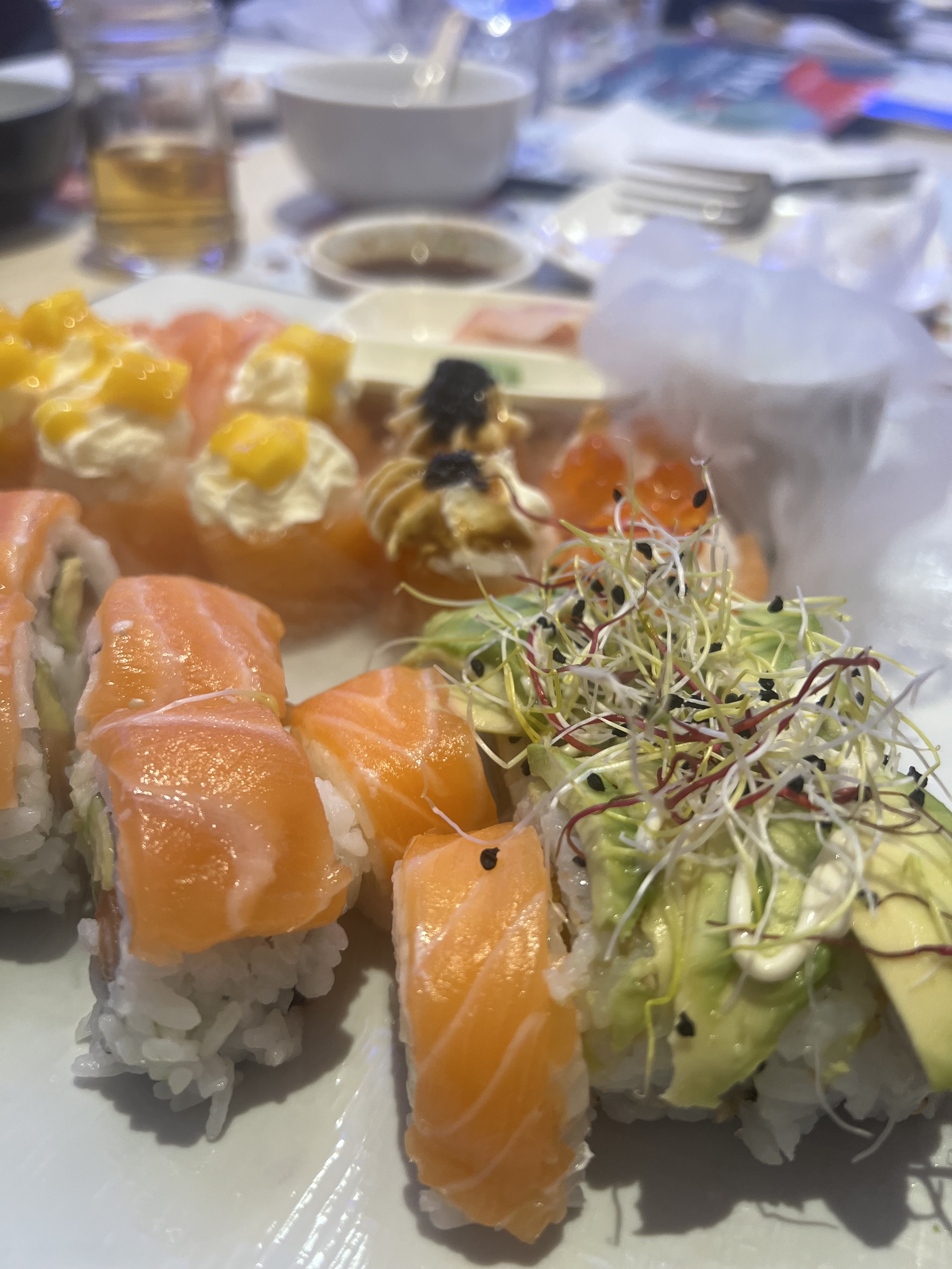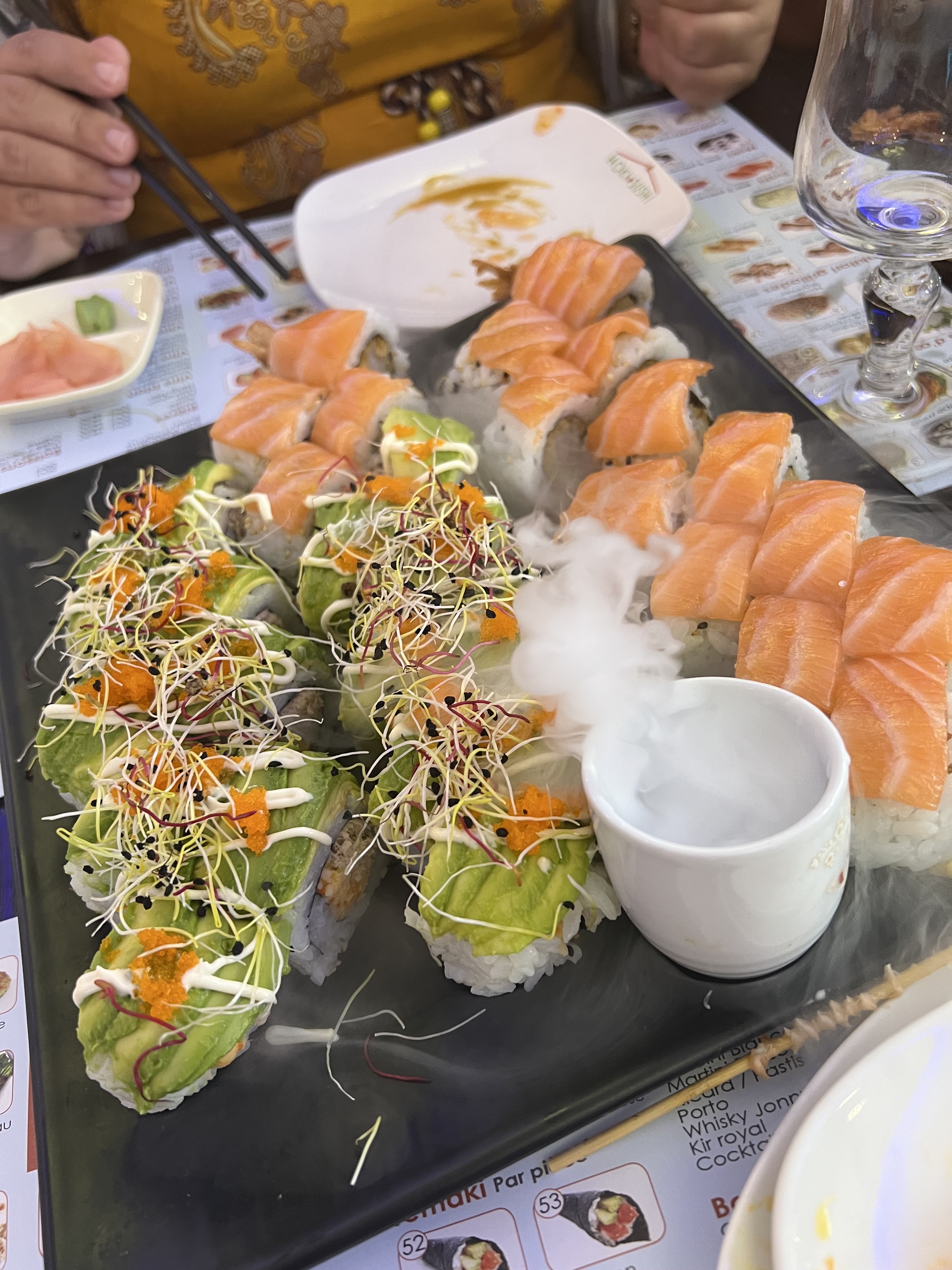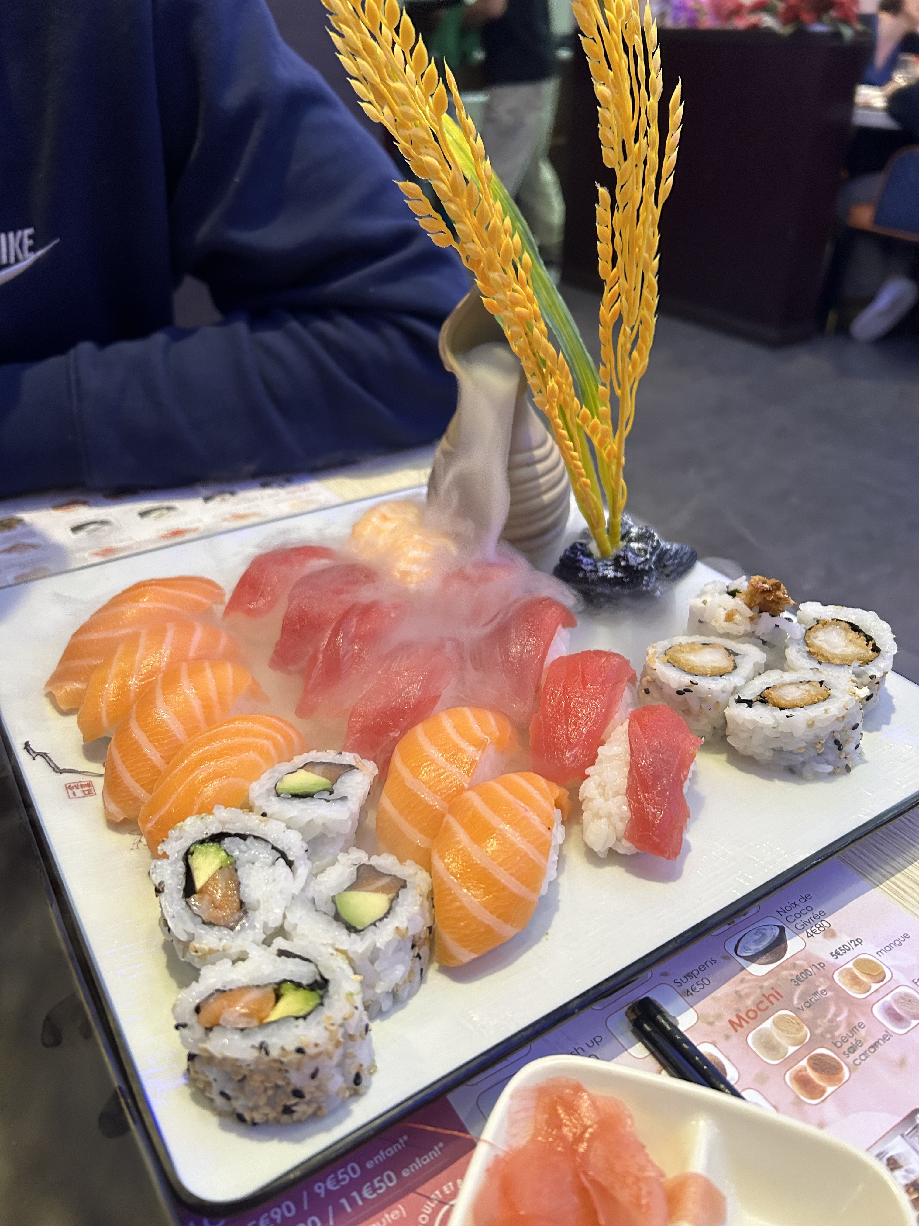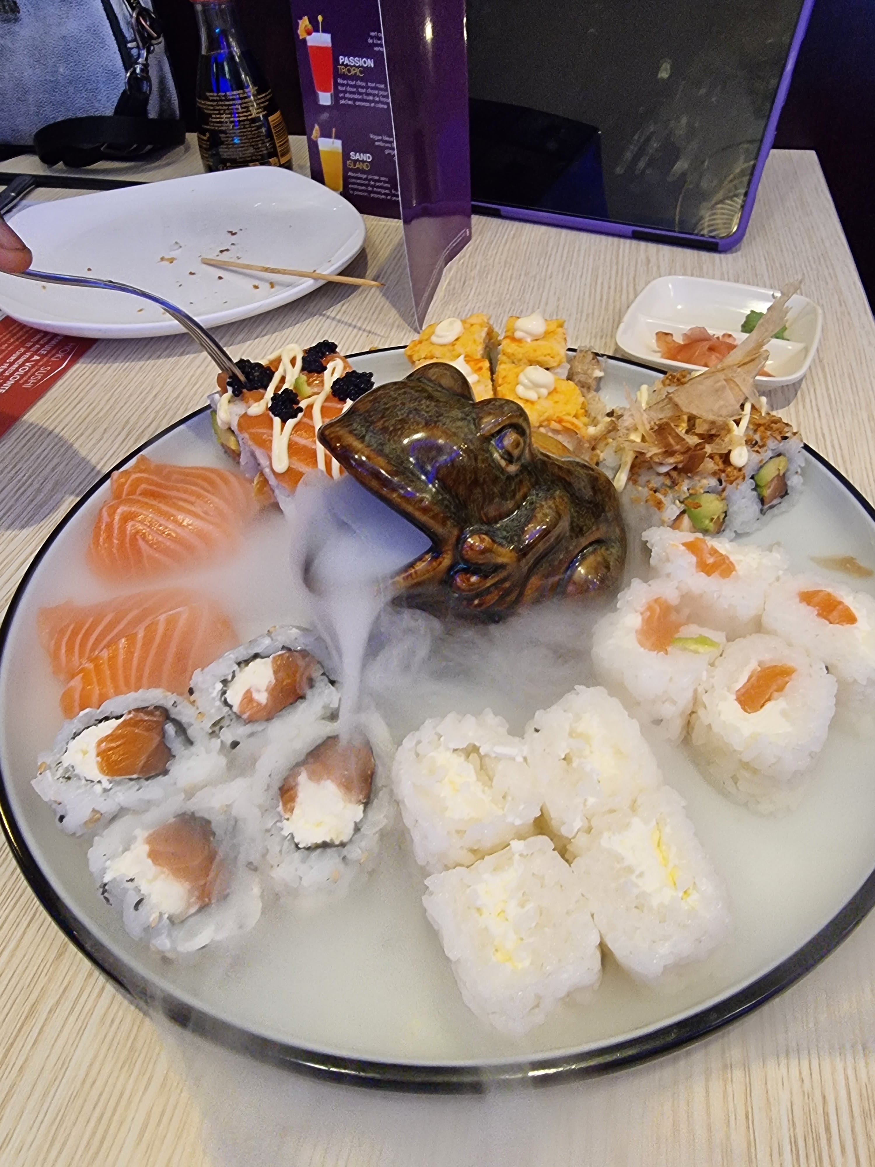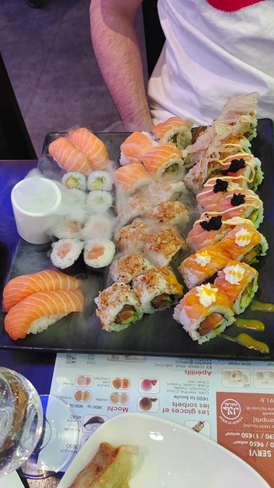 Bon restaurant à volonté japonais, multitude de plat et de tours possible. Les plats sont servis chauds et assez rapidement à table, grâce à une sélection sur tablette. Par contre si vous recherchez la tranquillité ce n’est pas ici que vous la trouverez énormément de bruit, normal au vu de l’ambiance familiale.