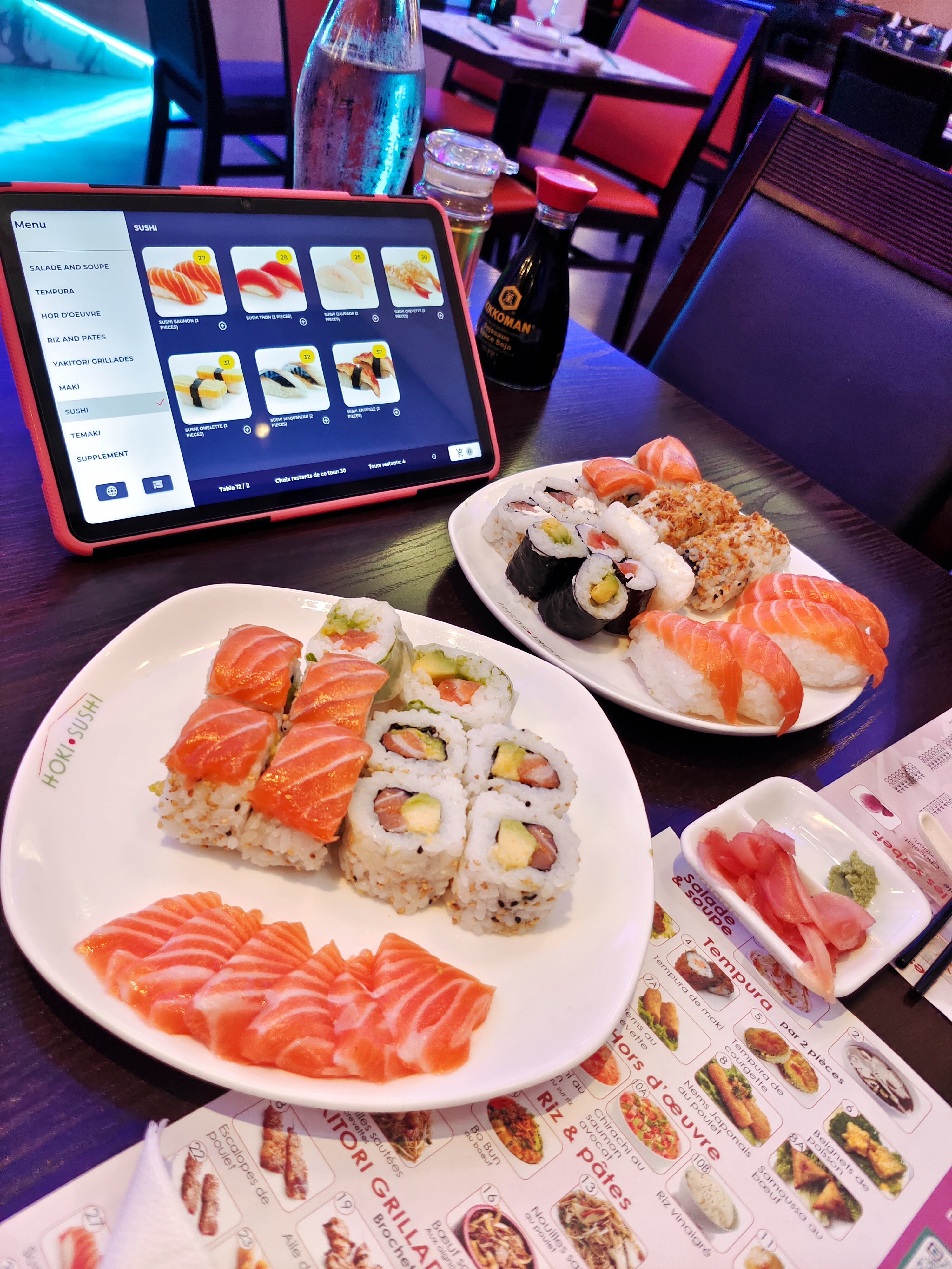 Bonne 1ère expérience ! Le concept est vertueux. Il vise à éviter le gaspillage. Vous commandez depuis une tablette et on vous sert à table à volonté mais 2 par 2 pas plus.