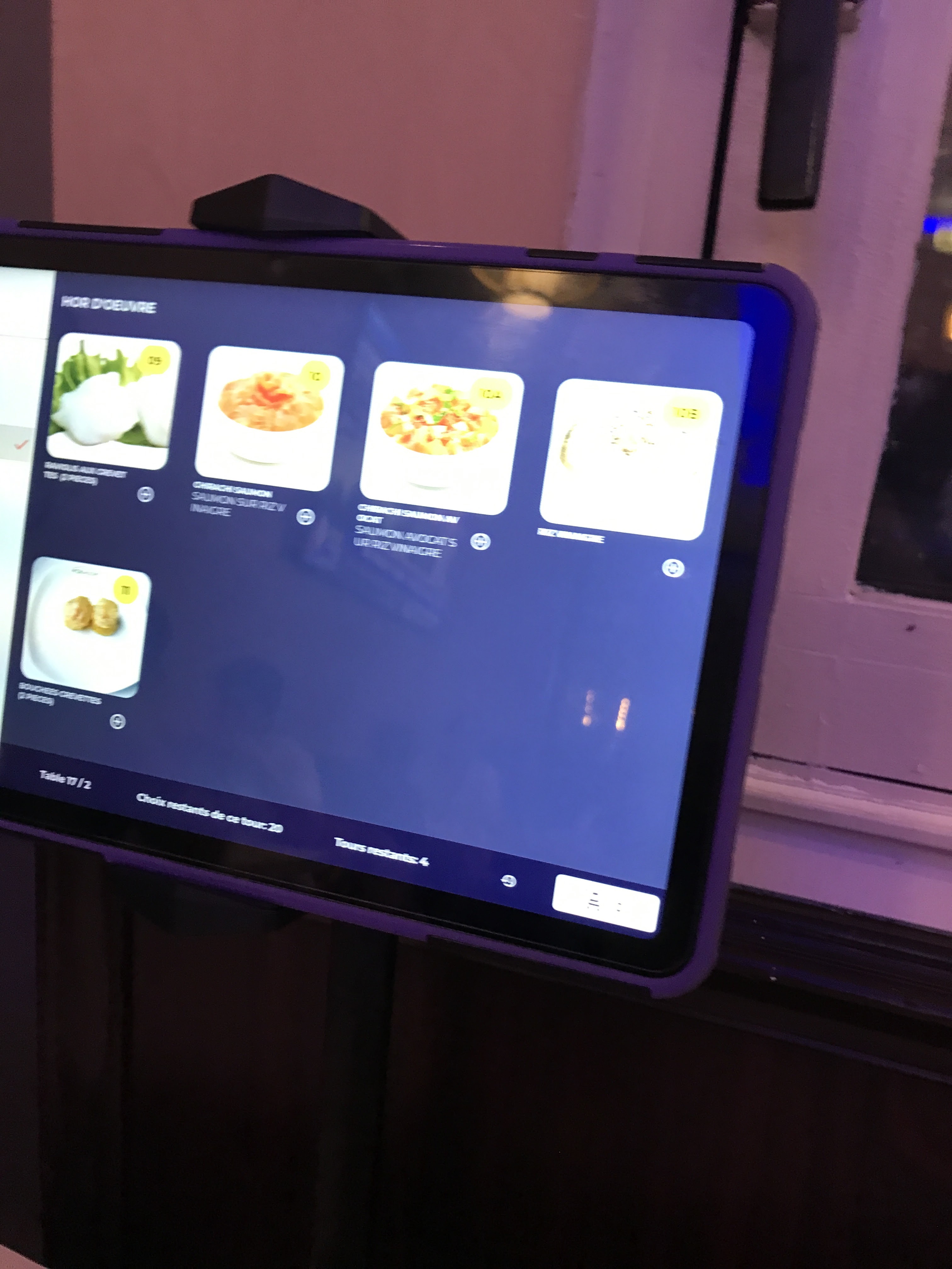 Plats hyper fades. Ils ont essayé un truc sympa & moderne avec des tablettes afin de pouvoir commander. Très honnêtement bof. On a pas du tout adhérer... Vraiment désolés 🫡