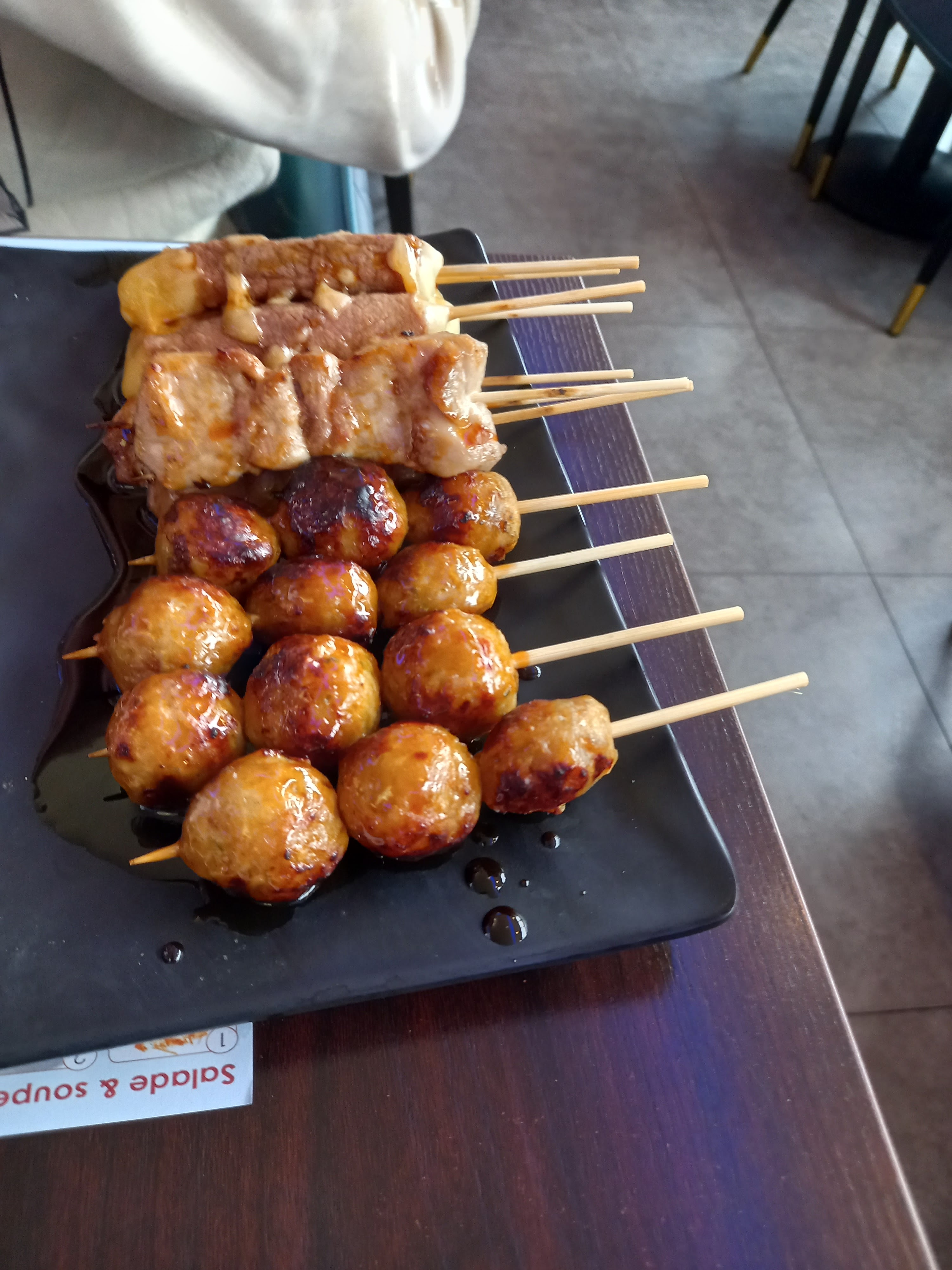 Bonjour étant allé un samedi soir, vraiment déçu service à table médiocre on a attendue 35 min pour 4 crevettes, de plus on a demandé 2 fois de l’eau mais le serveur apporte que les verres, on a du nous même aller cherché le bro d’eau de plus en chaque commande minimum 30 min d’attentes ayant payée 26 euros je me sens arnaqué, j’ai manger 4 crevettes 3 sushis et 2 brochettes. Réellement déçu et je n’y retournerai plus malgré qu’ils ont des bon produits je vous déconseille