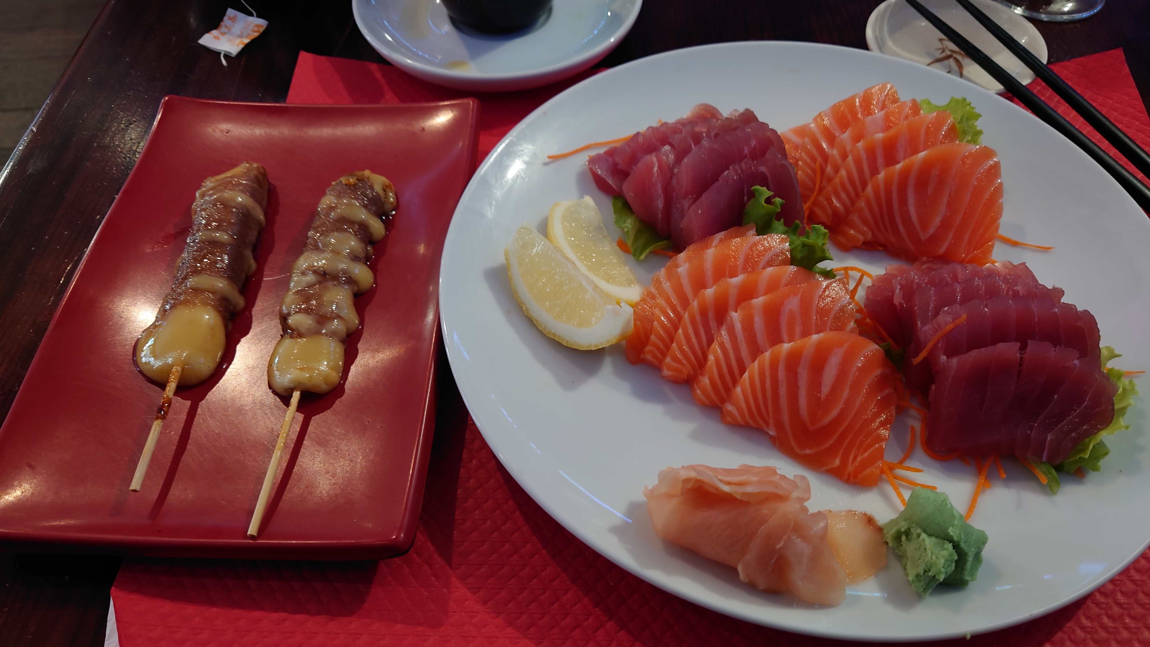 Déçu depuis ma dernière visite. Les brochettes ne sont pas assez cuites, il manquait la mayonnaise dans le poulet karaage et les sashimis sont de la partie la moins noble du poisson. Que du gras ! Ce n’est pas acceptable vu le prix payé. (Photo) Je n’y retournerai pas tant que le cuisine ne sera pas plus rigoureuse.