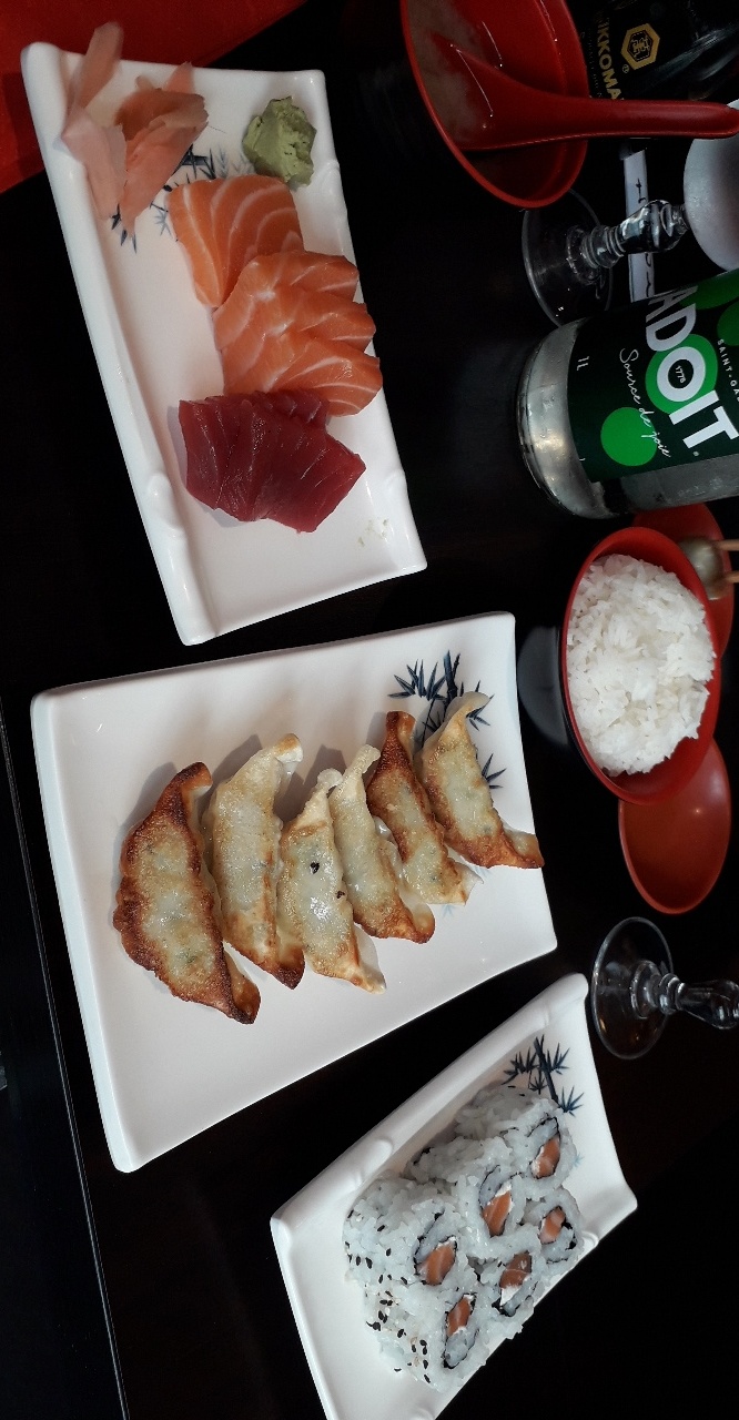 Le riz en accompagnement est sec Les raviolis sont froid et sec (sûrement de l'ancien service) Le riz du sushi est mal vinaigré et trop cuit Les portions sont très petites, limite pour enfant Poissons très frais C'est la 2eme fois en 2ans et c'est toujours pareil Pas génial mais mangeable