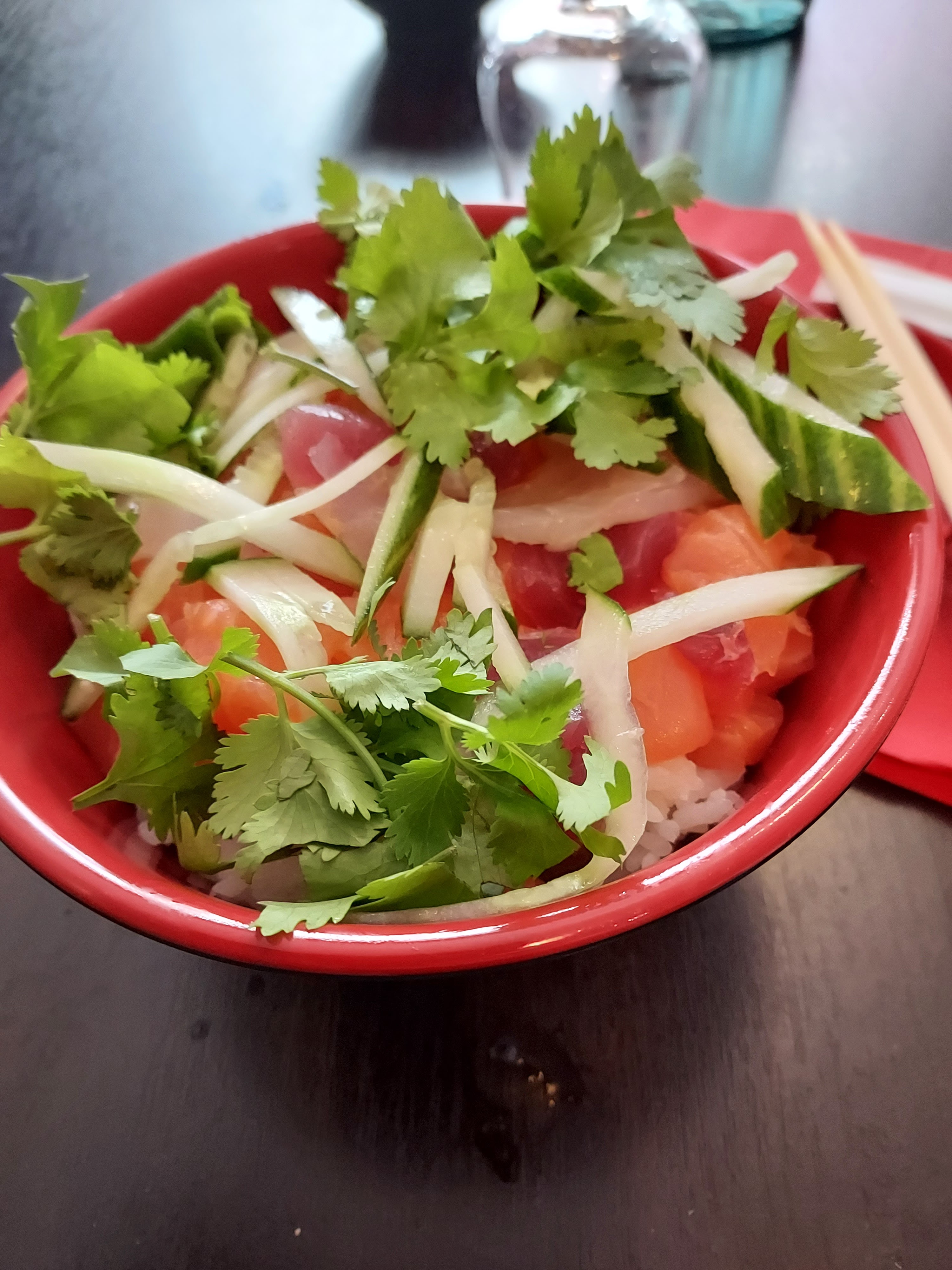 Bof bof ... Pour le prix, la qualité et les saveurs sont moindre. Autant aller chez un buffet à volonté. Avocat pas du tout mûre. Peu accueillant !!!! Par contre salle mignonne, joliment décoré. Assez petite mais sympa.