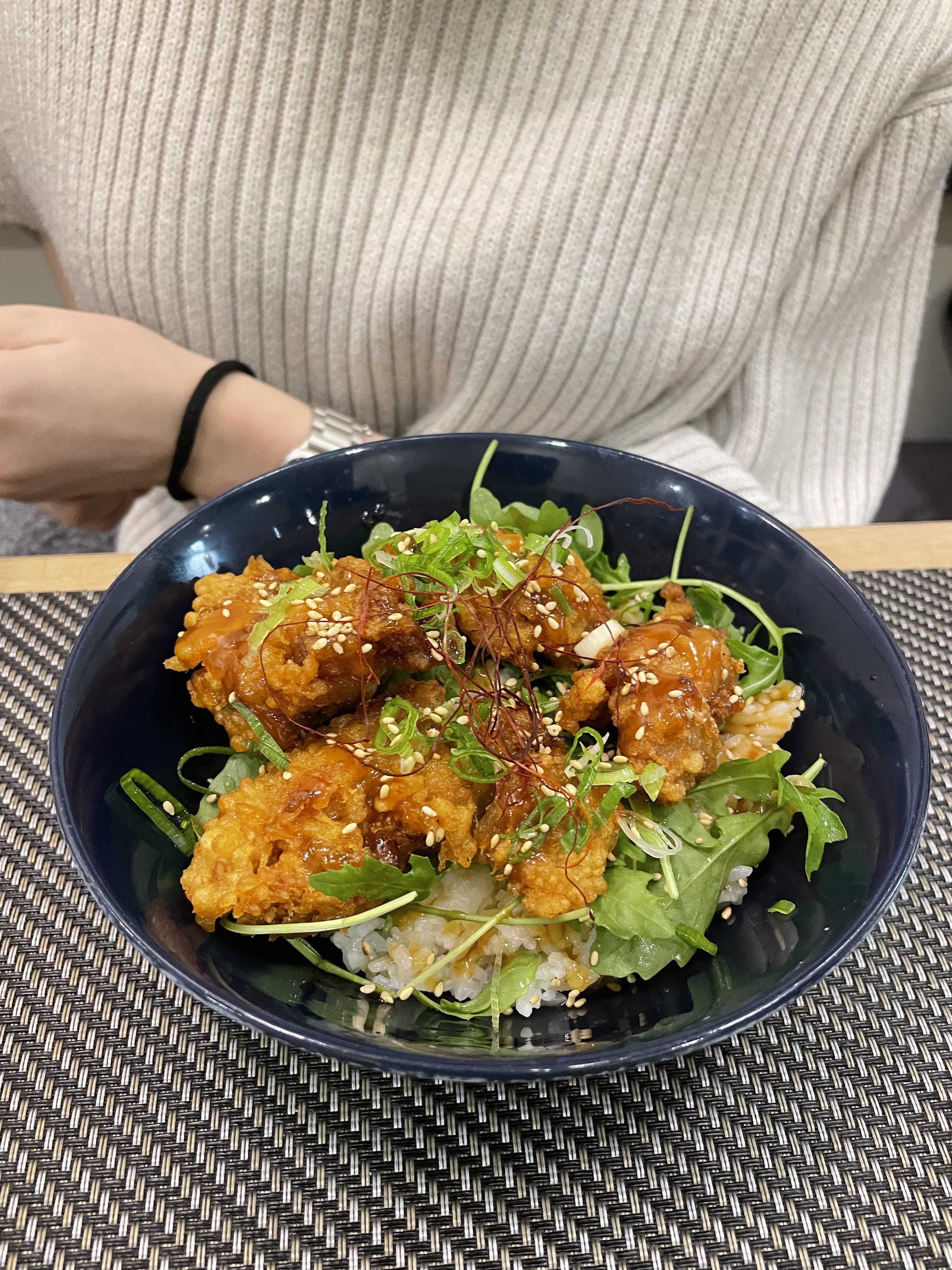 Je n'ai pas apprécié le donburi au poulet. Le plat était très sec et n'avait quasiment pas de goût. Je m'attendais à mieux.