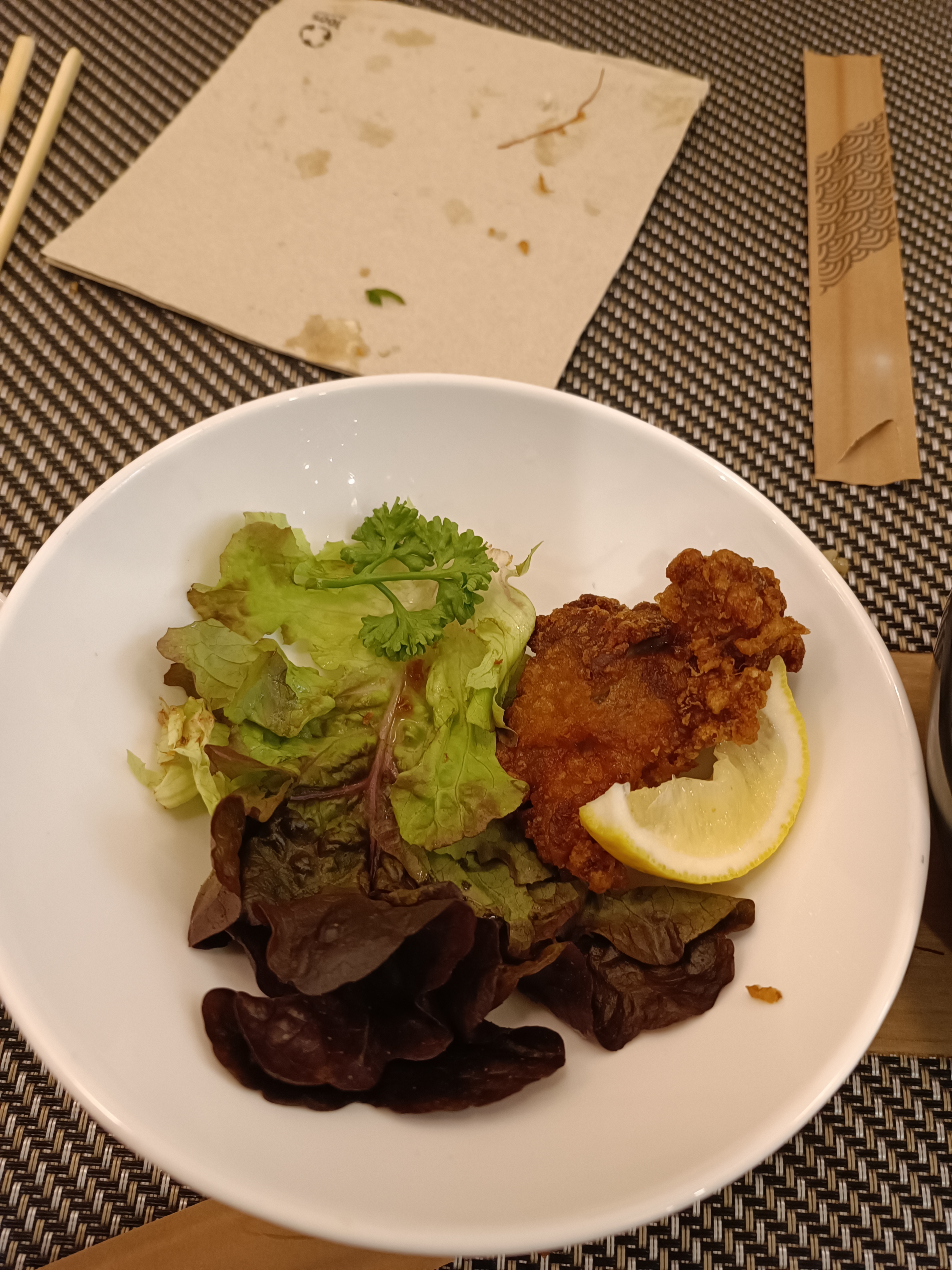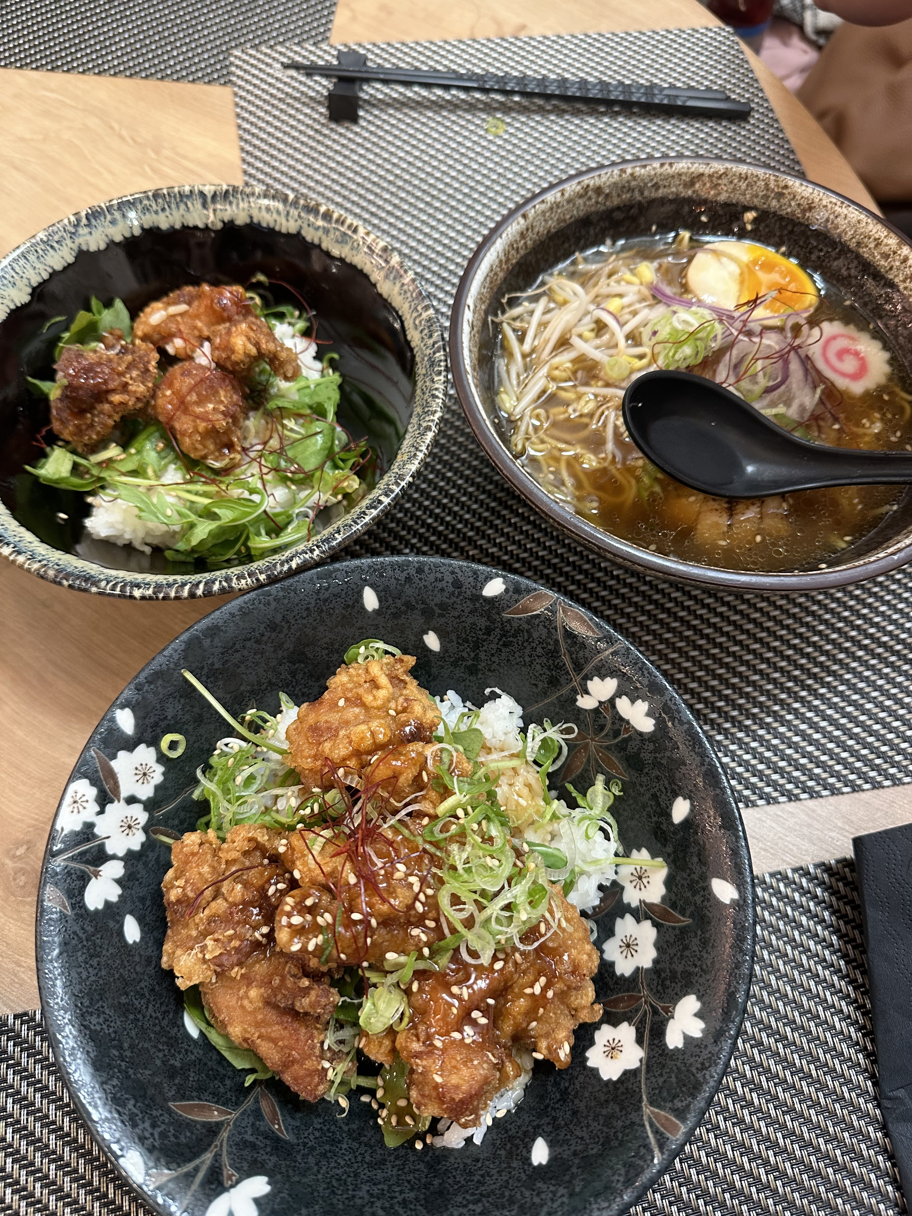 Les karaage sont bons, la sauce est excellente. Un peu déçu du ramen, bouillon sans saveur, on sent beaucoup l'huile de sésame. Déçu aussi de la garniture qui ne ressemble pas à un ramen.