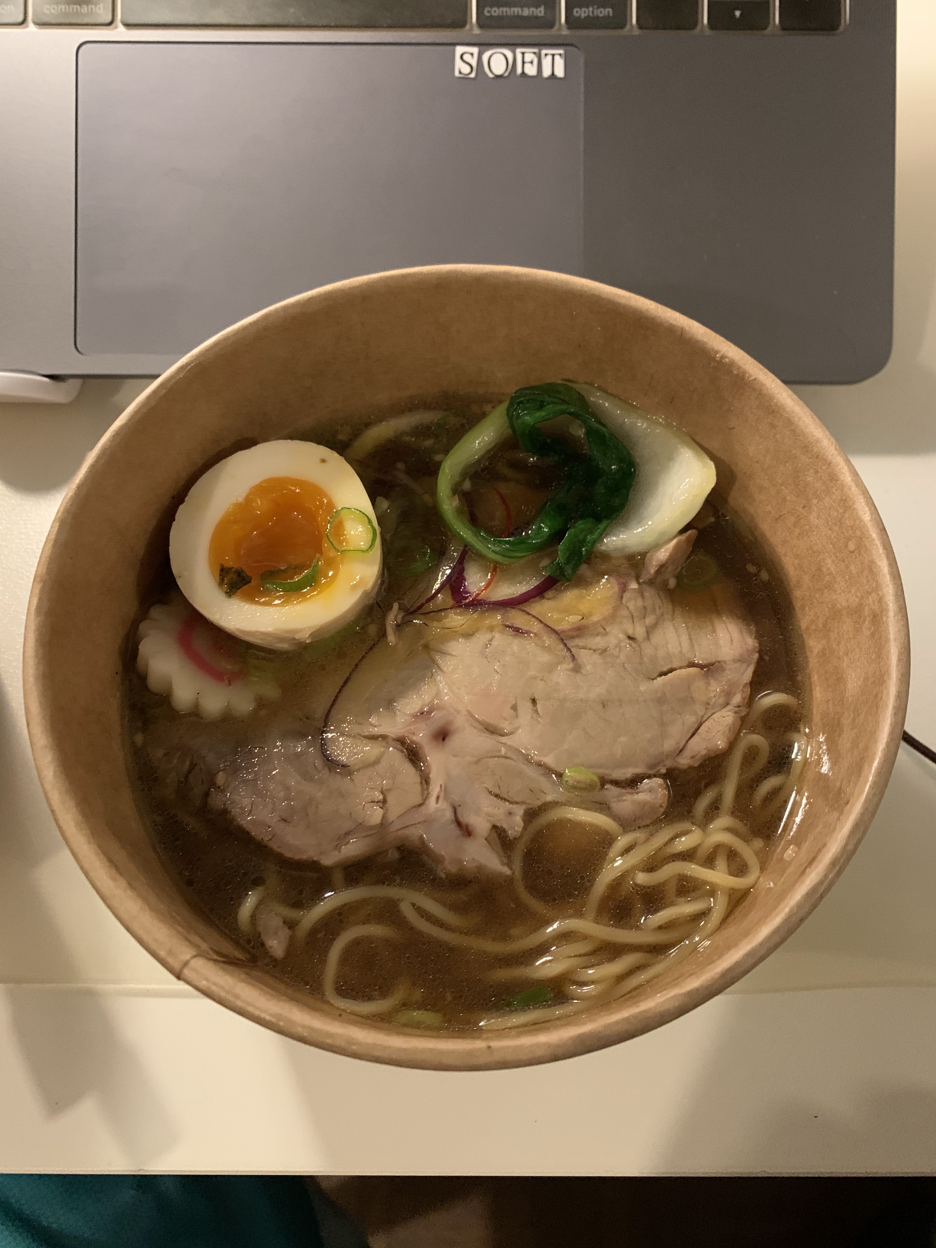 J'ai pris un ramen porc + poulet à emporter. Le service est au top, rapide, poli. J'ai été un peu déçu par le ramen par contre, qui pour moi n'a pas grand chose d'asiatique. La viande est de bonne qualité, mais pas vraiment travaillée, le porc et le poulet sont dans leur plus simple préparation, certainement sans aucune marinade. La soupe manque de gout également, ca m'a rappelé le potage clair de nos compagnes, ca sent les légumes, mais pas vraiment l'asie et c'est assez fade. Les accompagnements : l'œuf mollet est ok, les pousses de soja n'apportent rien d'interessant ou de dépaysant. Le plat est bon hein, mais on est pas vraiment sur un ramen ! Et à ce prix là c'est assez décevant..