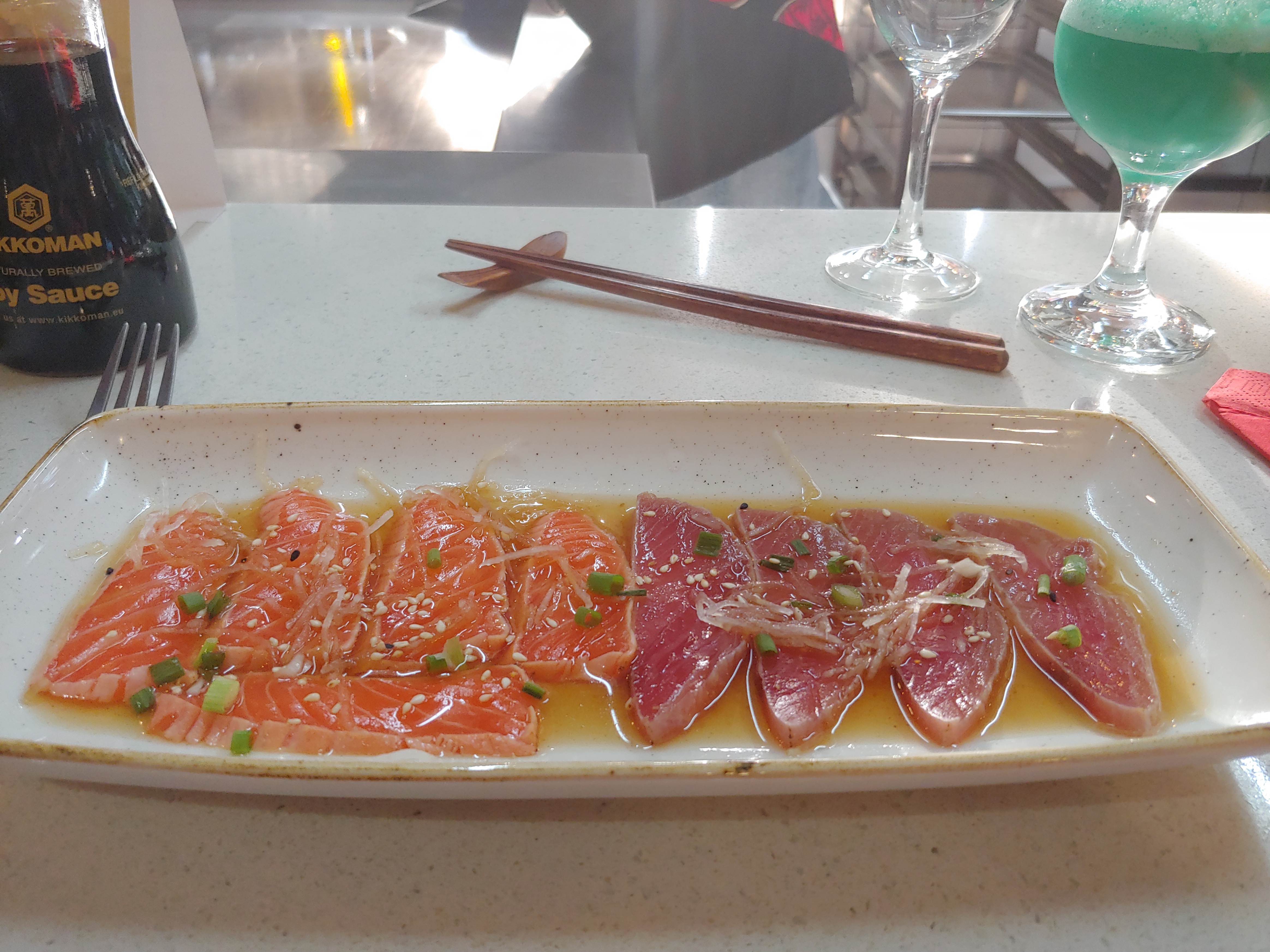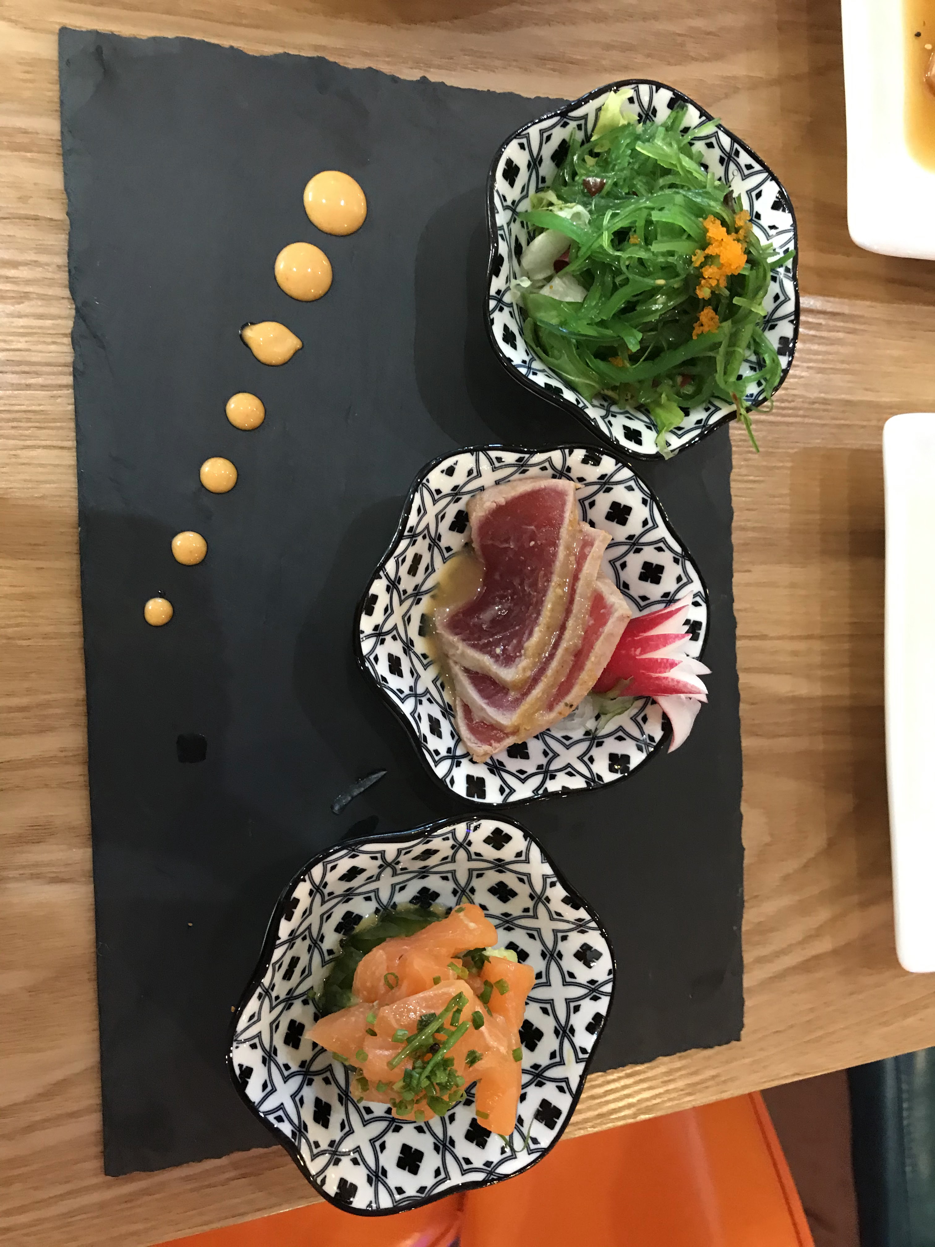 L’ambiance est très sympathique, l’agencement autour de la table est agréable et confortable. Le personnel est très accueillant et serviable, le service était impeccable. Nous avions pris en entrée l’assortiment de california du jour (arc-en-ciel roll) qui était délicieux, ainsi que les tatakis de thon et saumon qui étaient également très bons! Les produits étaient frais et les saveurs au rendez-vous. Nous avons choisi le plat teppanyaki au canard qui a dépassé nos attentes, autant en terme d’expérience que de goût. Nous recommandons fortement ce restaurant, autant pour l’expérience de la cuisine teppanyaki que pour la saveur des sushis.