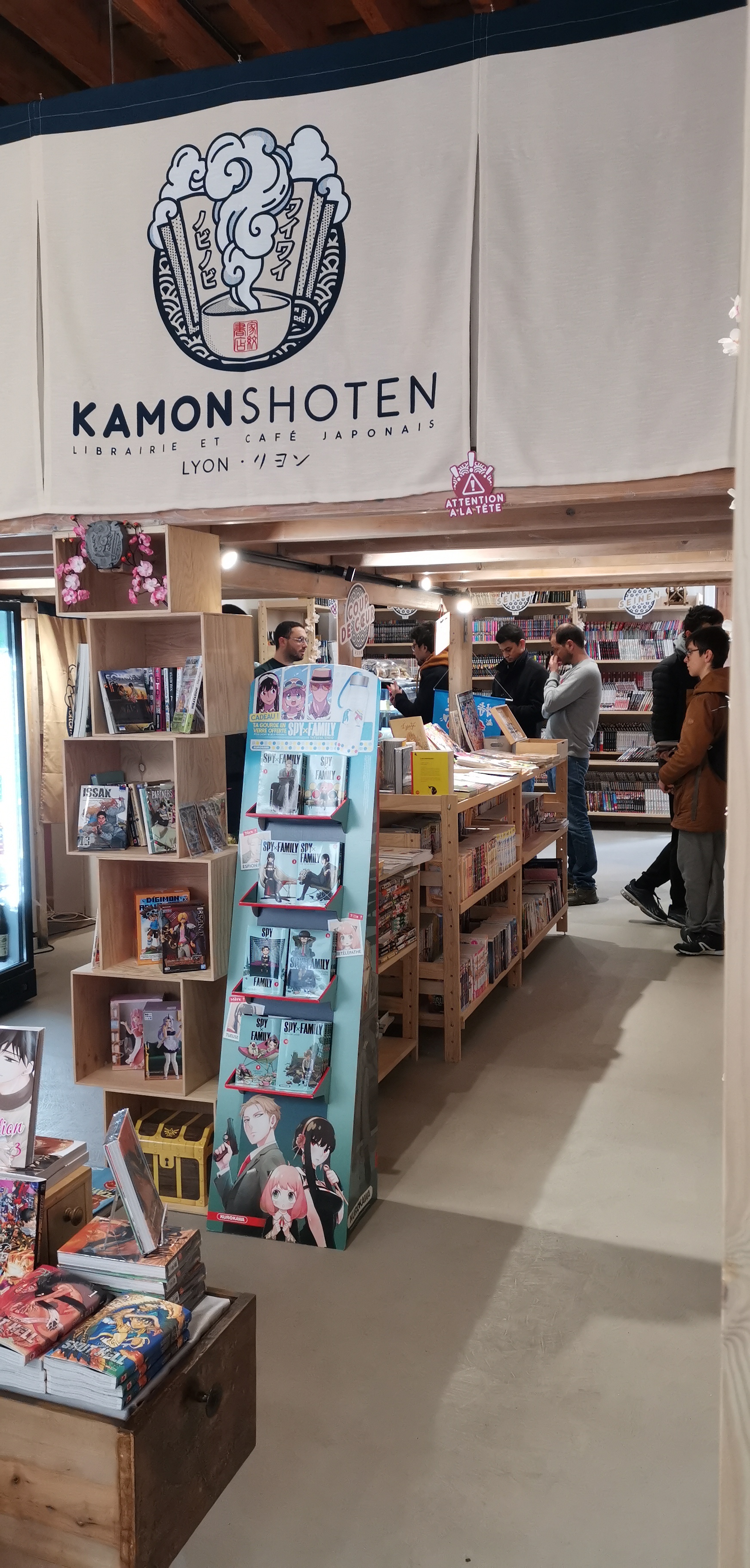Posté le 20/01/2023 à 17:28"Située à deux pas de la gare de Perrache et des références otaku/geek de Victor Hugo, Kamon Shoten offre à Lyon ce qu'il lui manquait : une librairie-café orientée Japon avec l'ambiance, la nourriture et les divertissements qui lui sont rattachés. En plus des nombreuses références de mangas que la boutique possède, vous pourrez également retrouver des romans, des livres d'apprentissage du japonais, des figurines, une petite gaming room à l'étage (bien penser à enlever les chaussures avant d'aller sur les tatamis), ainsi que de nombreuses pâtisseries et friandises typiques. L'ambiance y est accueillante et reposante et l'équipe, passionnée, saura vous conseiller au besoin. En bref, n'hésitez pas à vous y arrêter !"