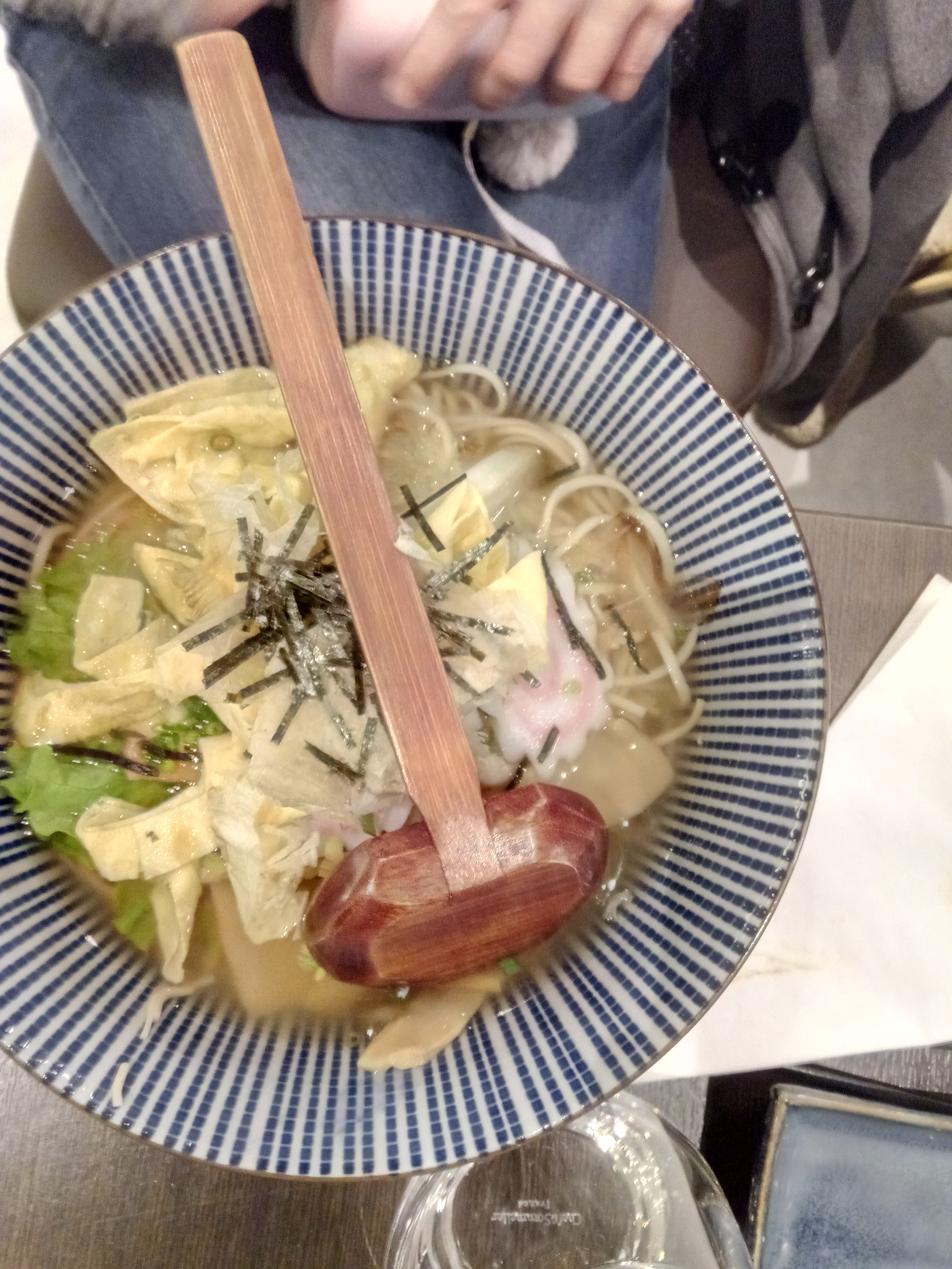Endroit calme et ambiance agréable d'où la hausse de ma note Mais plusieurs problème sont parvenus pendant notre repas... Le premier nous avons eu une serveuse qui n'était ni avenante et ni souriante, après peut-être était-ce juste de la fatigue ? Le deuxième est que nous avons trouvé le bouillon des ramens était vraiment insipide Et troisièmement, nous avons eu un cheveux sur les gyozas que nous avons commandé Le lieu est sympathique mais nous n'y retournerons pas Je vous souhaite malgré tout une bonne continuation