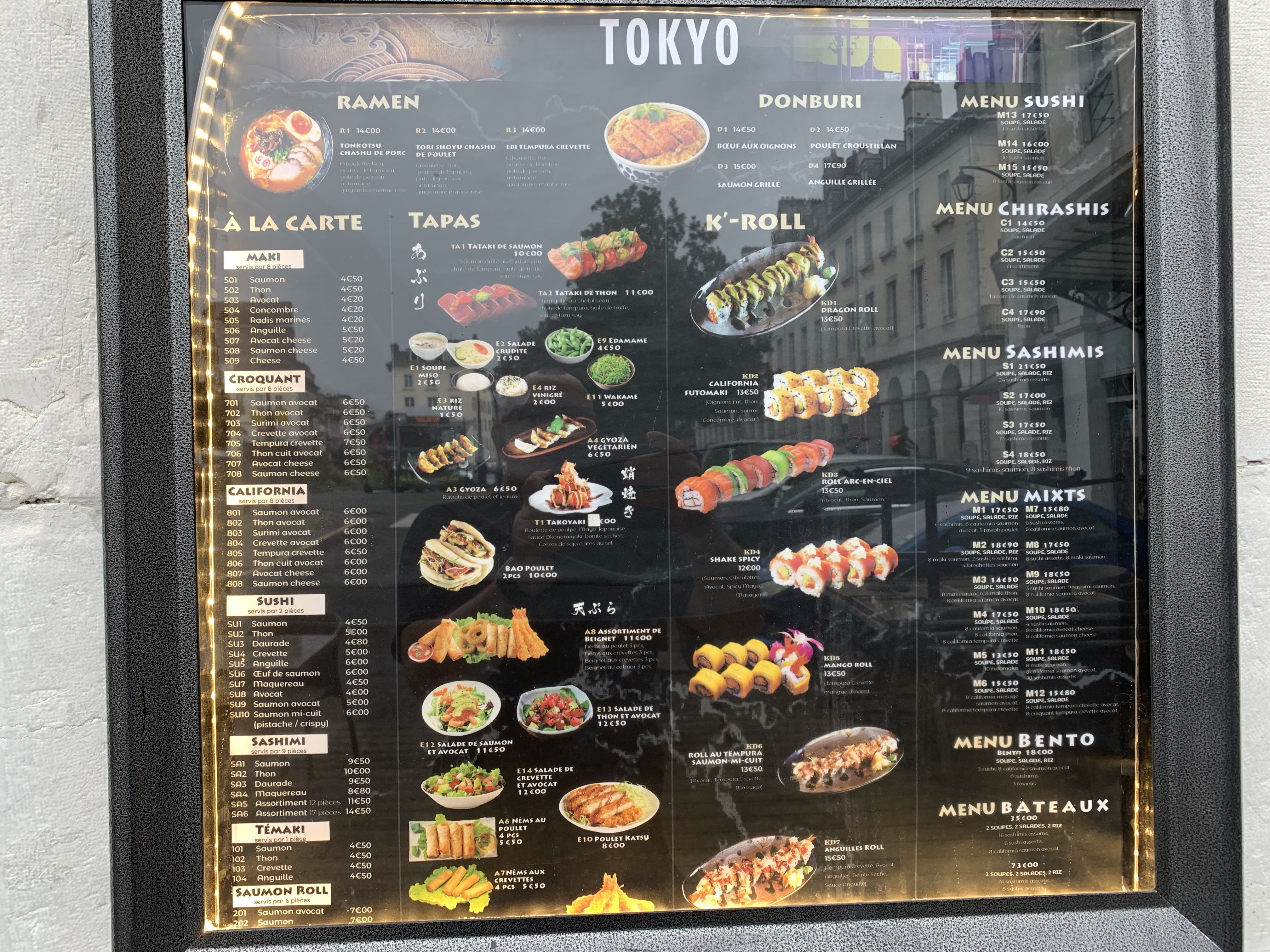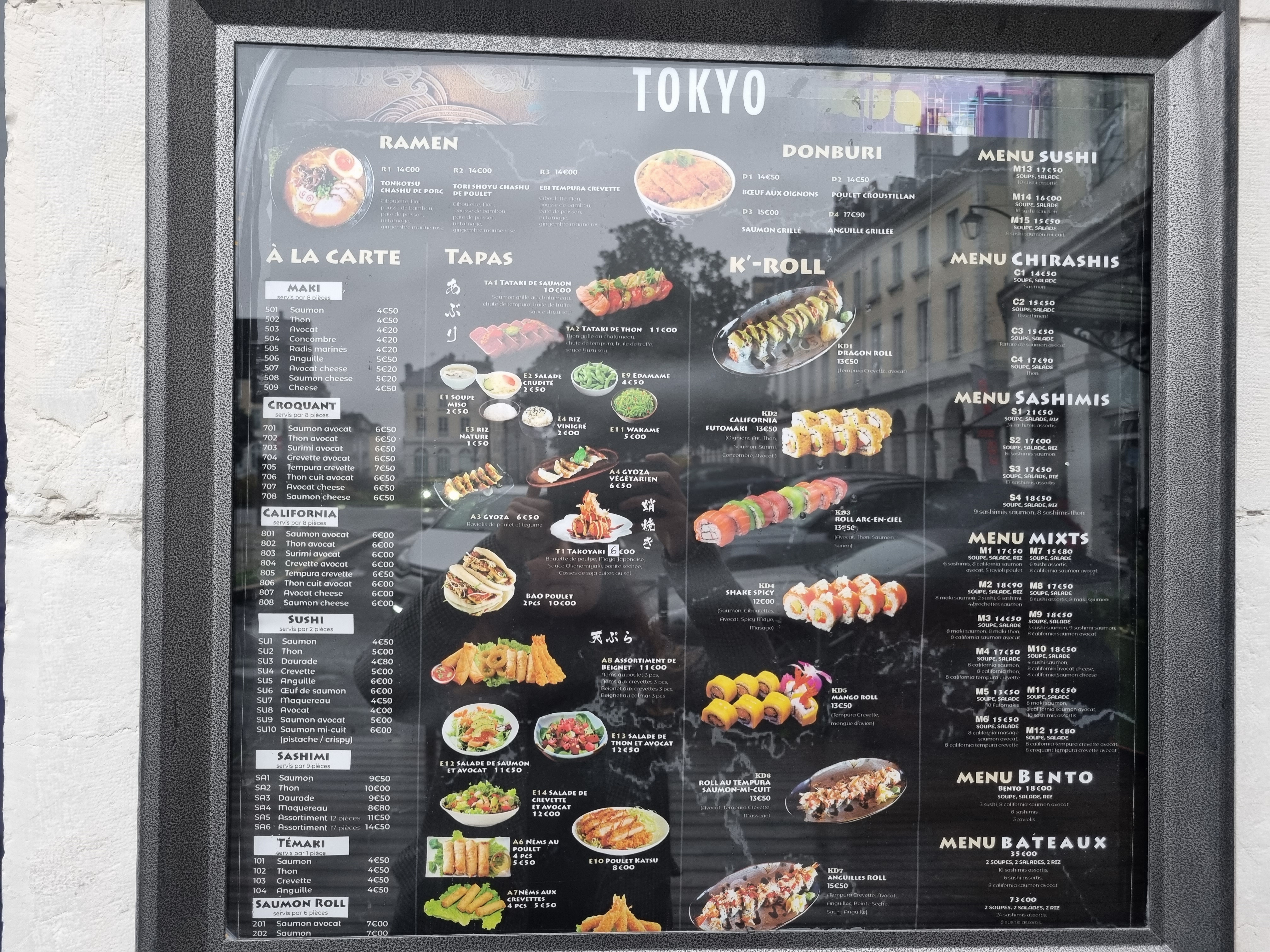 La carte est compliquée comprendre. J’ai connu le Tokyo qui proposait un buffet à volonté servis à table. Aujourd’hui c’est une carte avec des codes pas plats, il y a des menus pour les sushis. Les sushis étaient bons, la salade et la soupe aussi. Niveau prix c’est forcément plus cher car c’est à la carte. L’accueil est correct et le service un peu long. Le restaurant semble peu fréquenté pourtant il y a plusieurs salles rénovées avec goût.