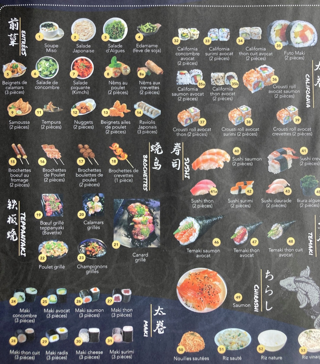 Concept au top Déco au top Nourriture plutôt bonne Personnel très agréable Bien évidemment, les portions en poissons sont plutôt basse, mais suffit d'en prendre x2 et vous avez une portion classique. Perso, j'aime bien, et meilleurs que les restos buffet chinois.