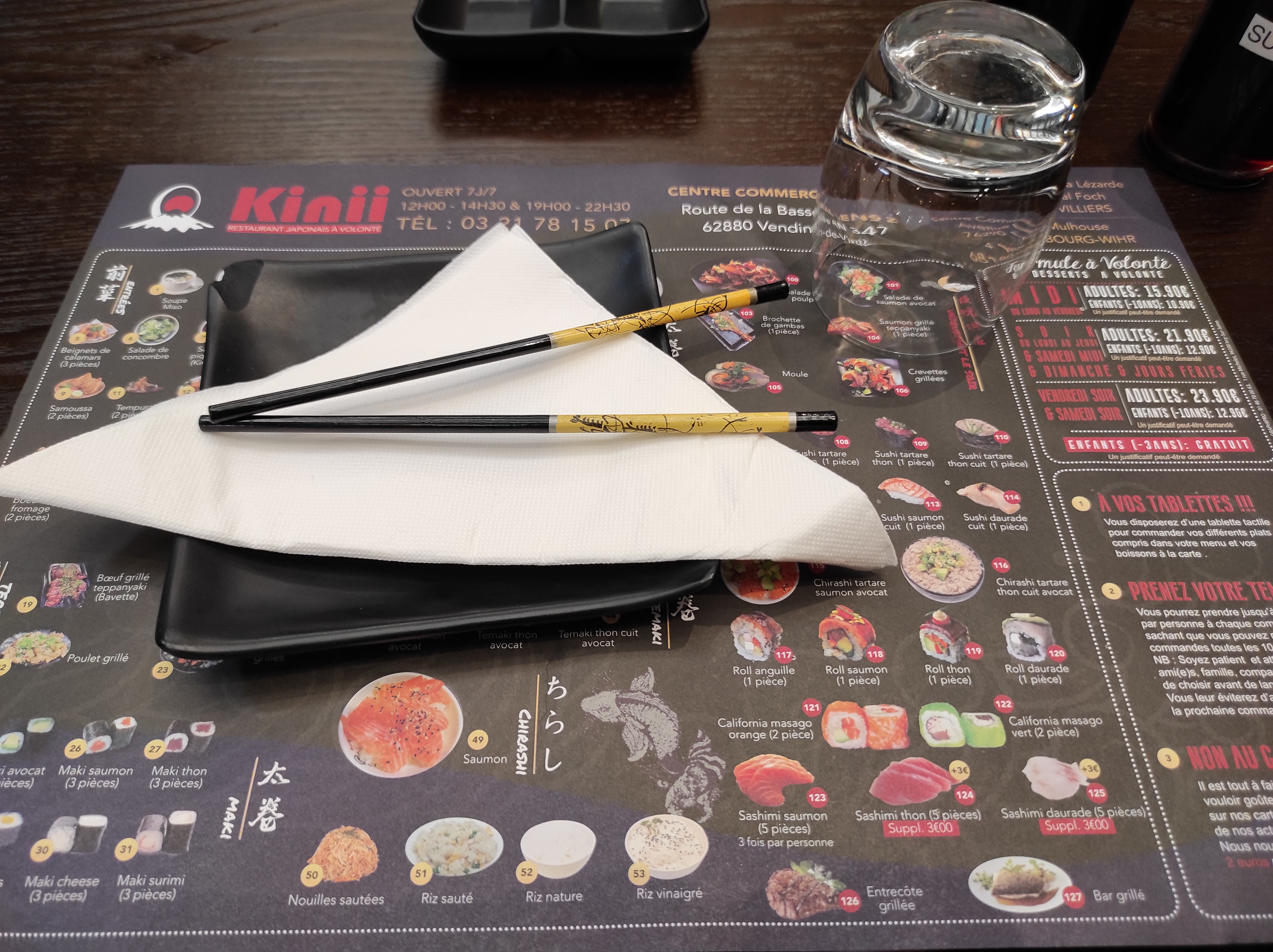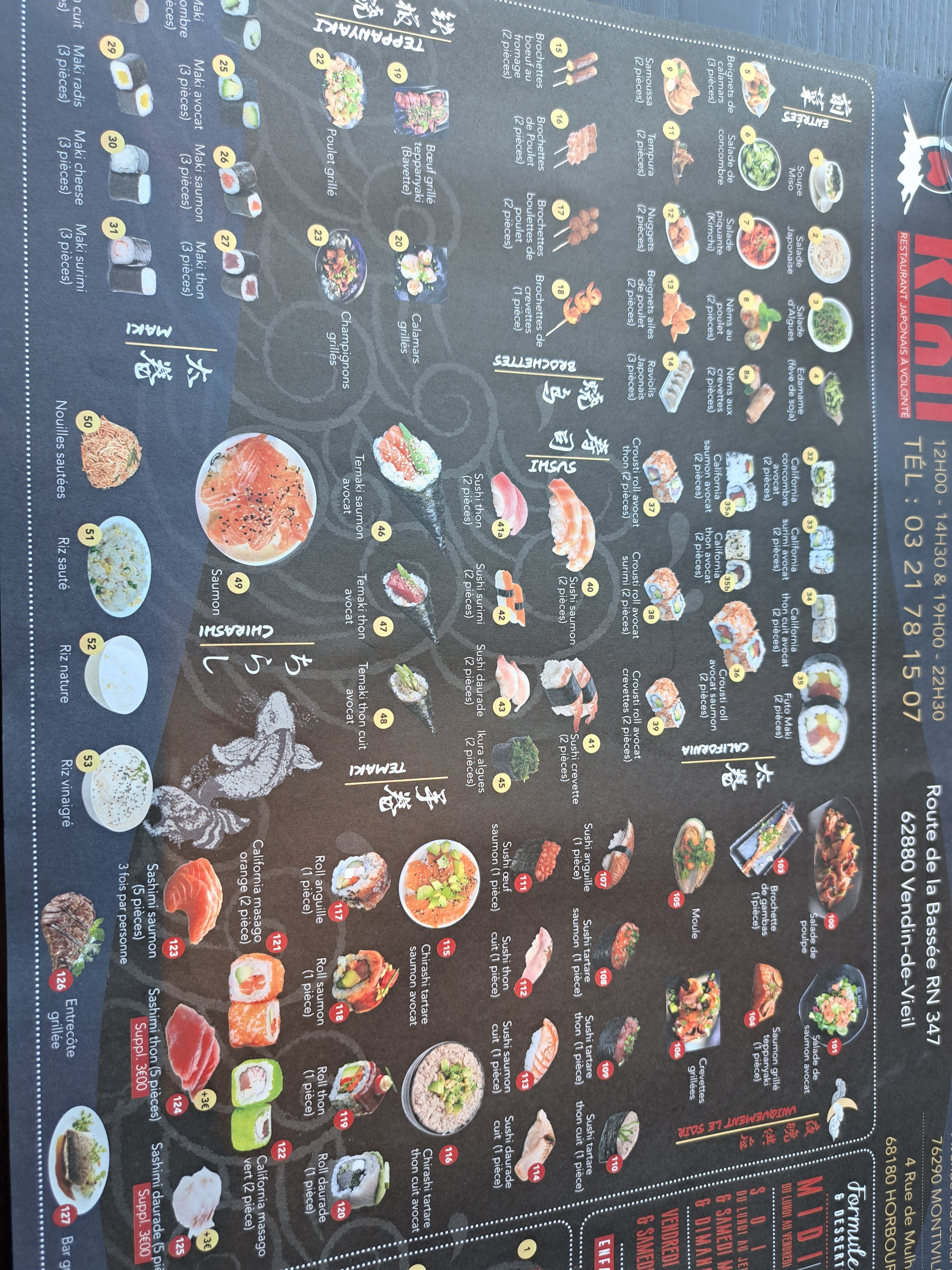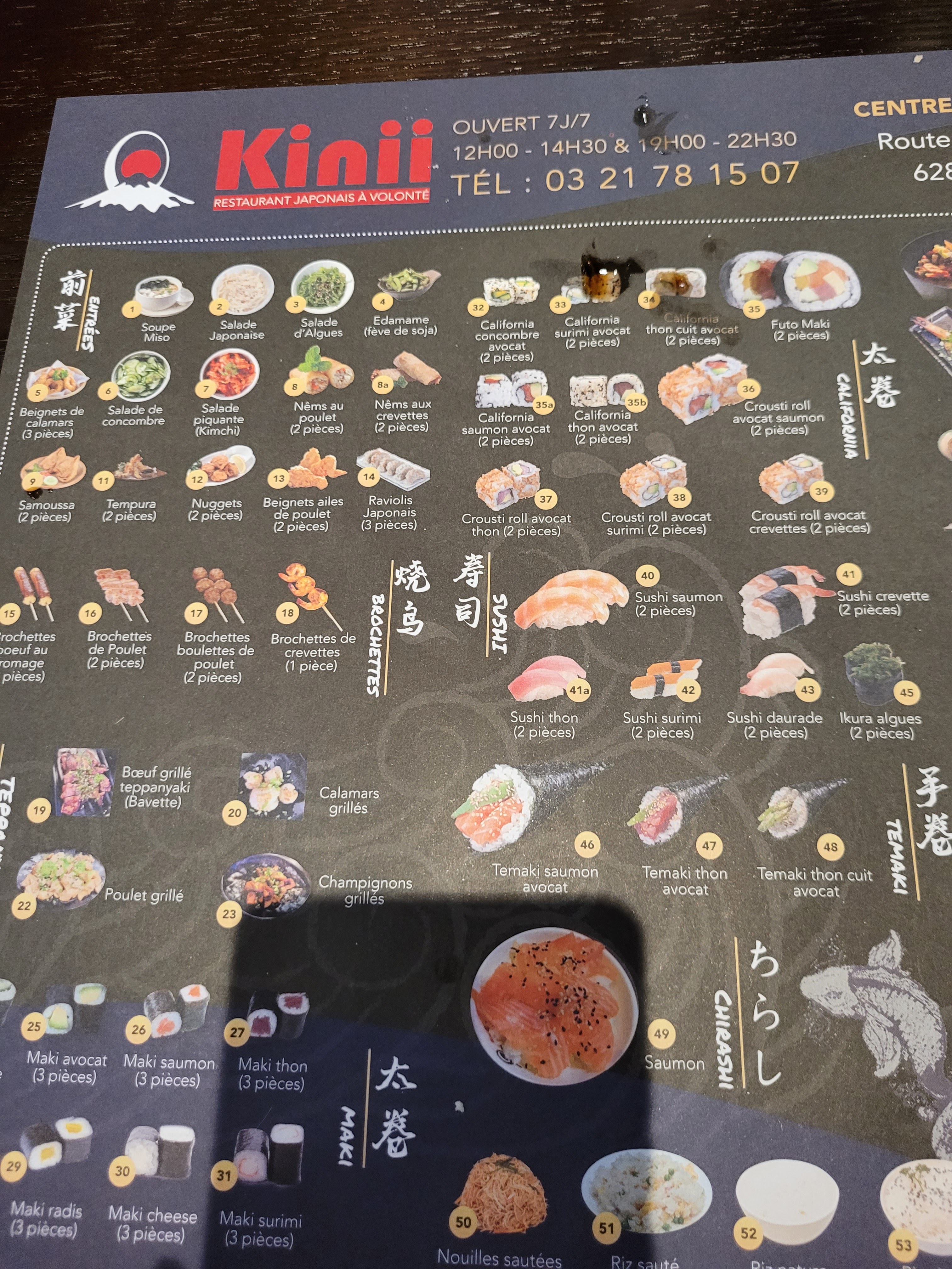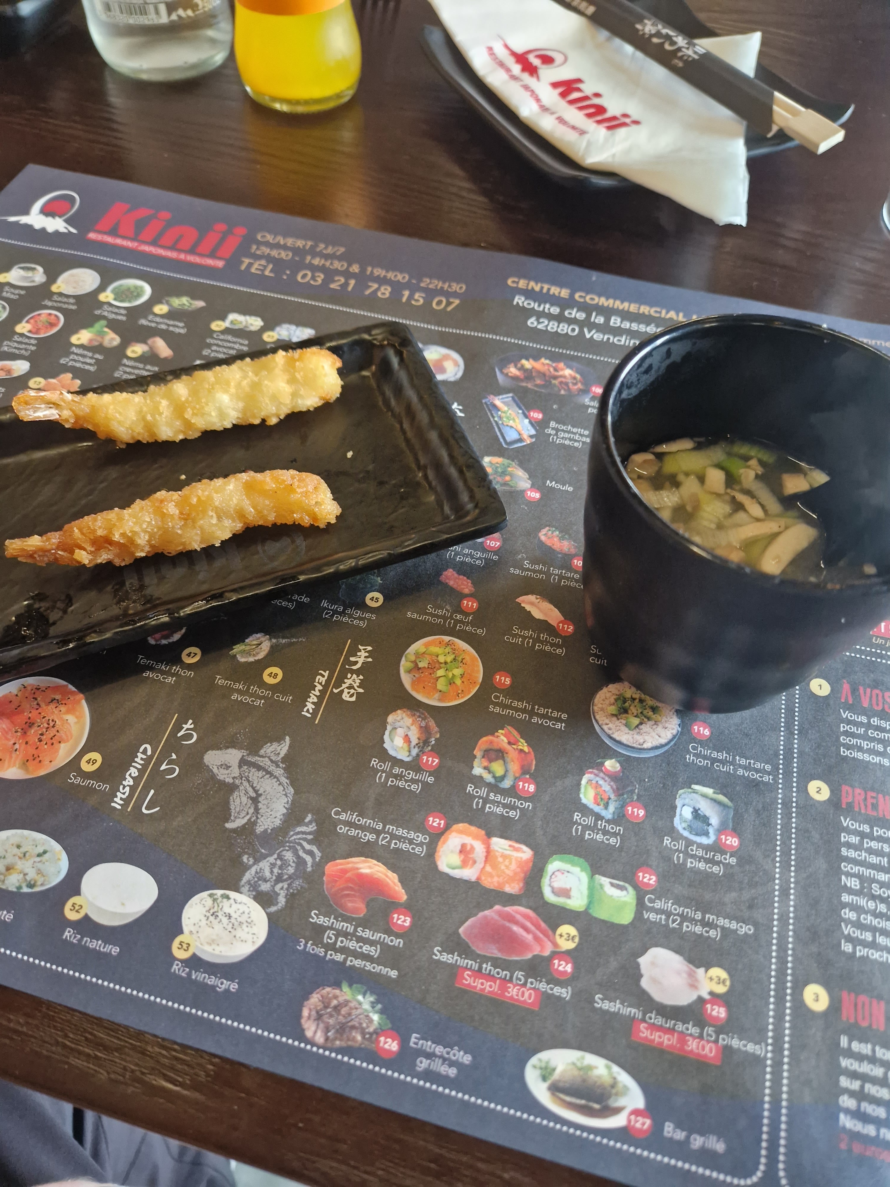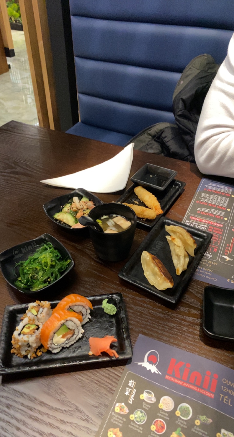 En septembre 2023 pour 2 personnes Kinii Il s'agit d'un restaurant type asiatique et à volonté. Je reviens sur mon commentaire car ayant été de nouveau dans ce restaurant je peux confirmer que la qualité des plats a changé à mon plus grand regret. Le restaurant : Toujours très propre et bien décoré Le personnel : toujours très gentil, agréable, professionnel et rapide. Service à table et tablette a disposition pour les commandes. Voici le bilan : 1- Infrastructure très propre et stylée 2- Très bon accueil 3- Employés pro (service en salle impeccable) 4- Plats avec une qualité divisé par deux depuis l'ouverture et mes précédentes venus en 2022 5- Choix un peu moins important au niveau des california roll 6- Rapport qualité/prix mauvais en comparaison d'autres établissement de ce genre. Dommage c'était prometteur Quand c'est bien, il faut le dire ! David T