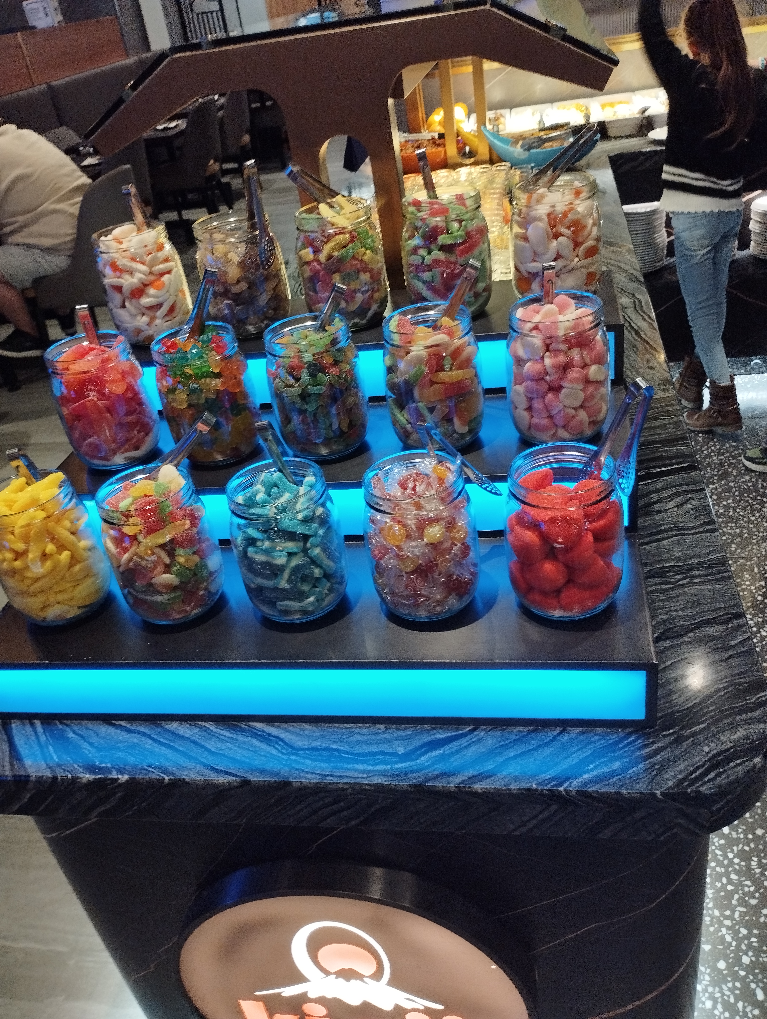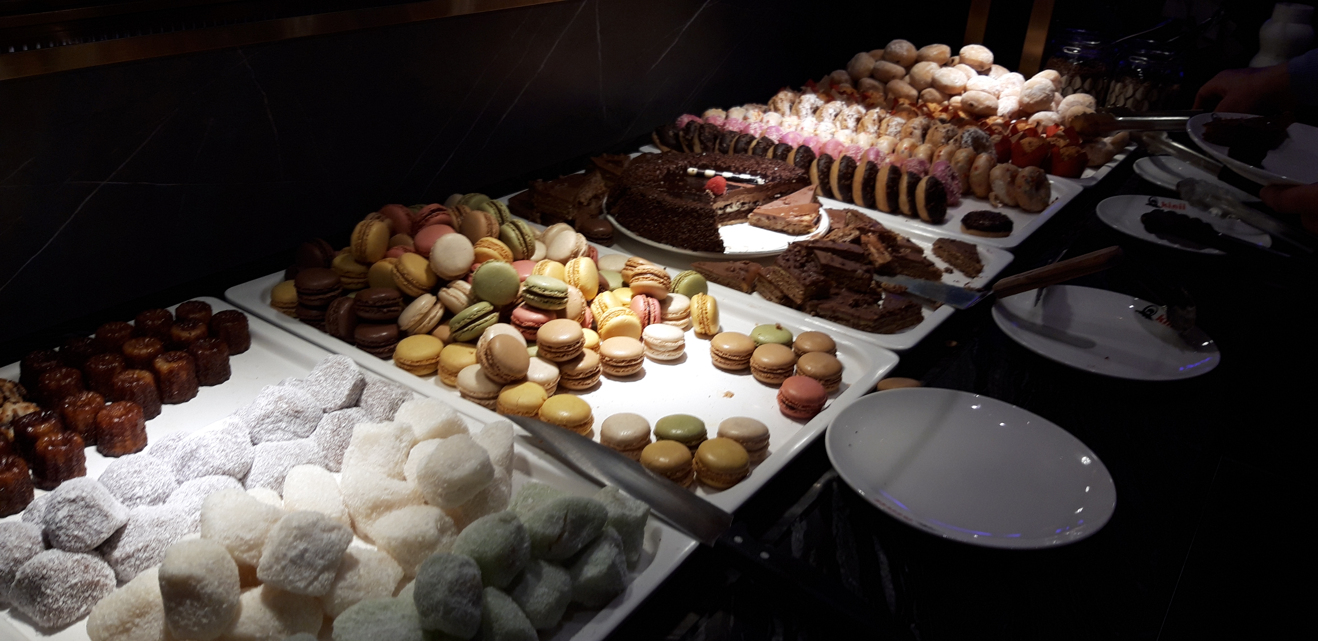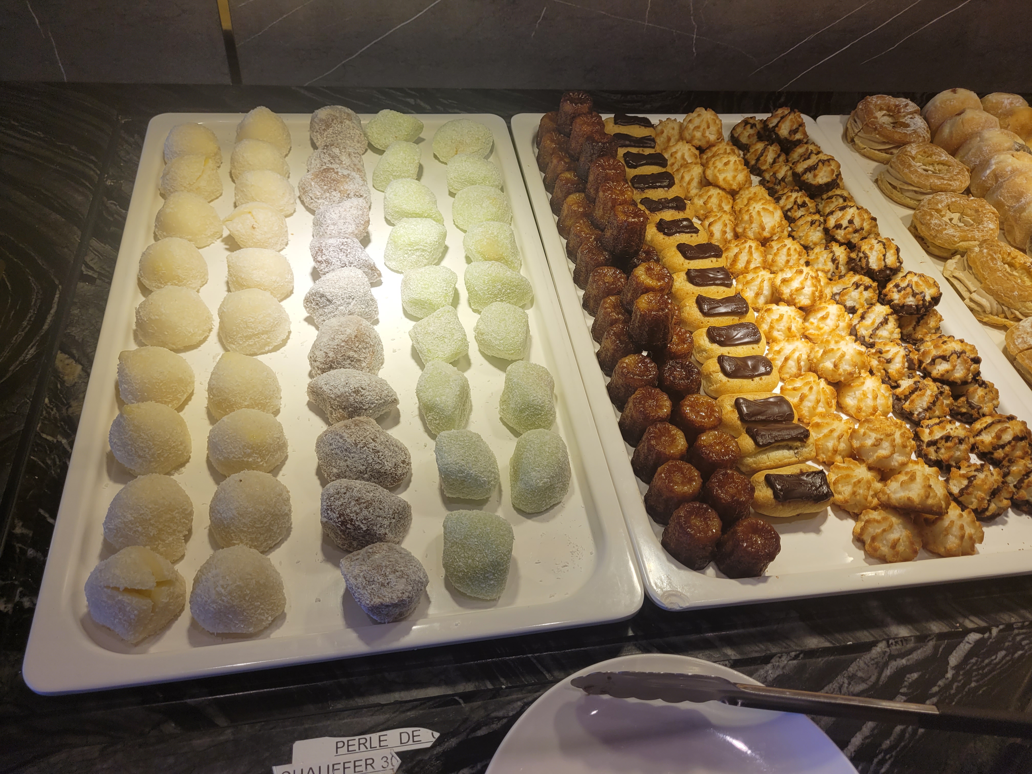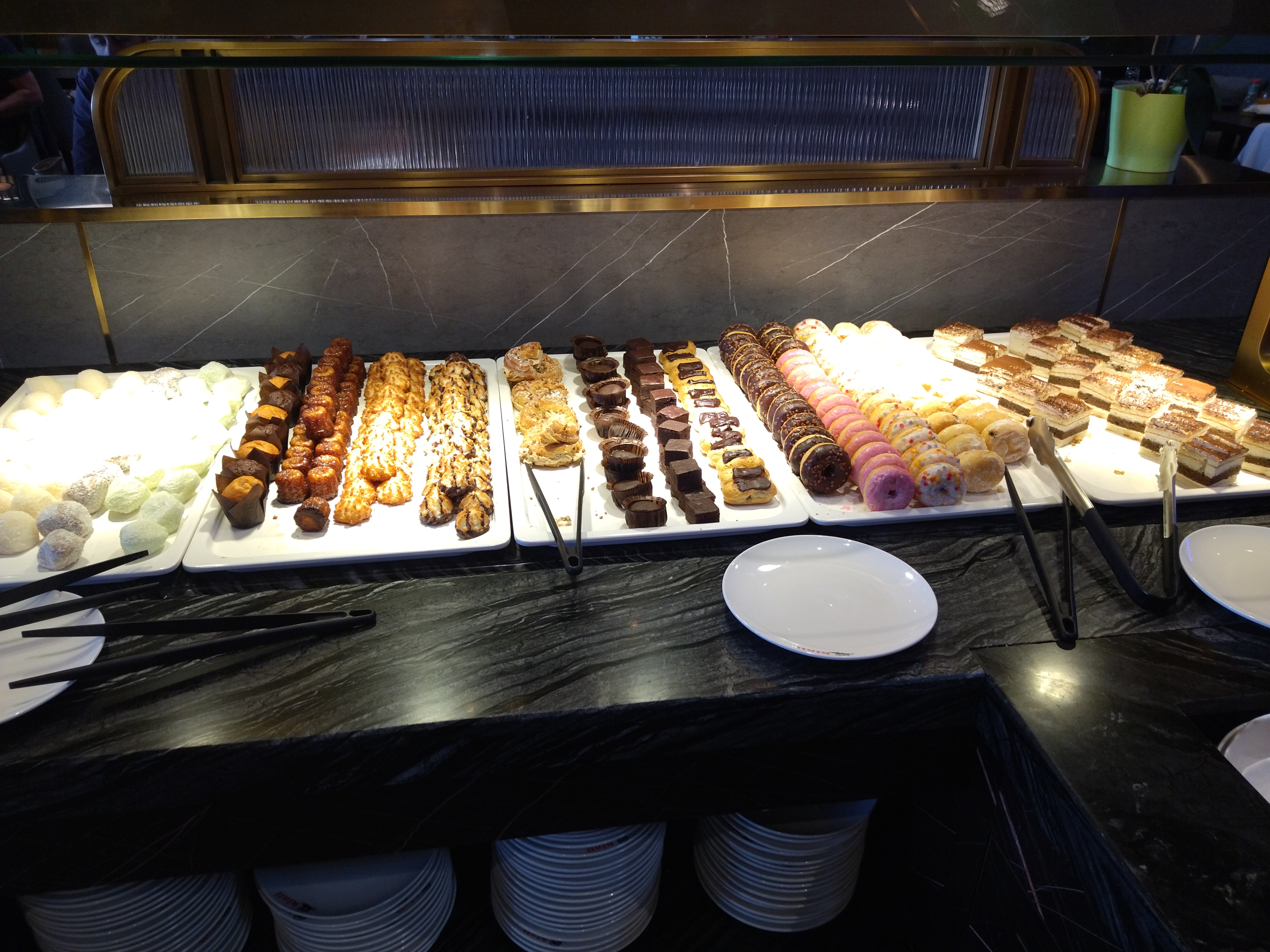Concept high-tech, commande des plats via une tablette avec service à table pour les plats ce qui évite le gaspillage, bravo 👌. Buffet de desserts varié, top.