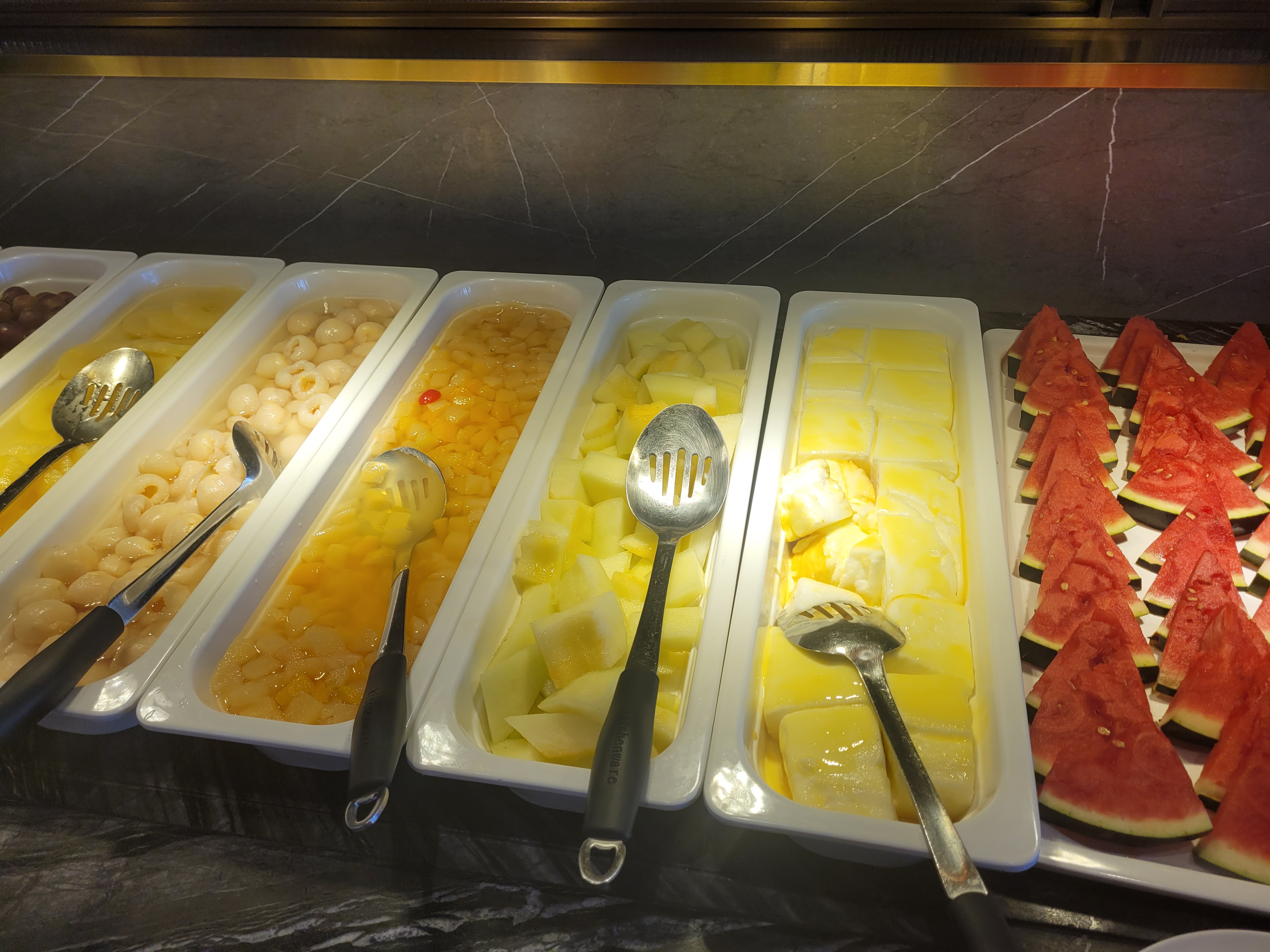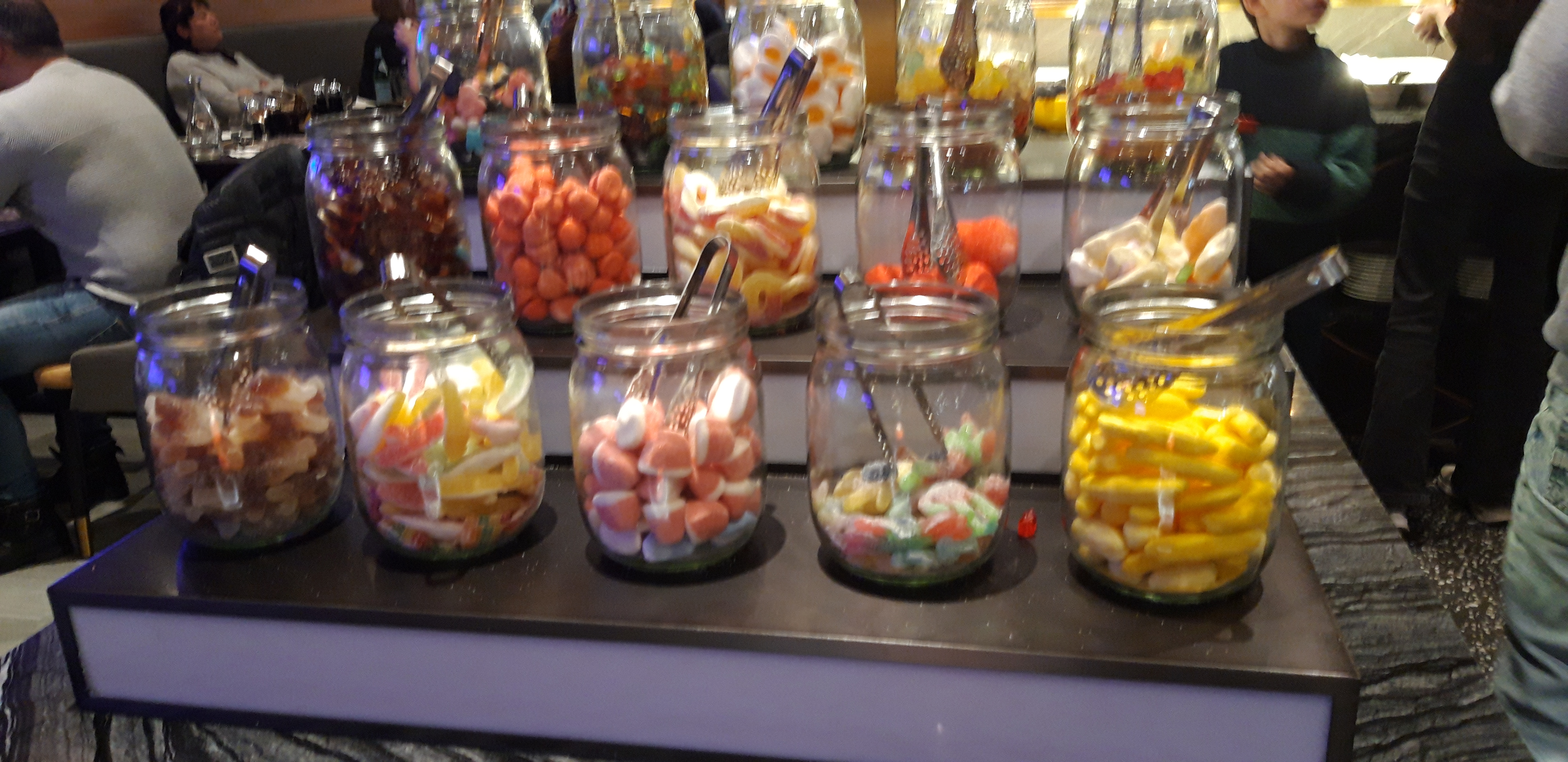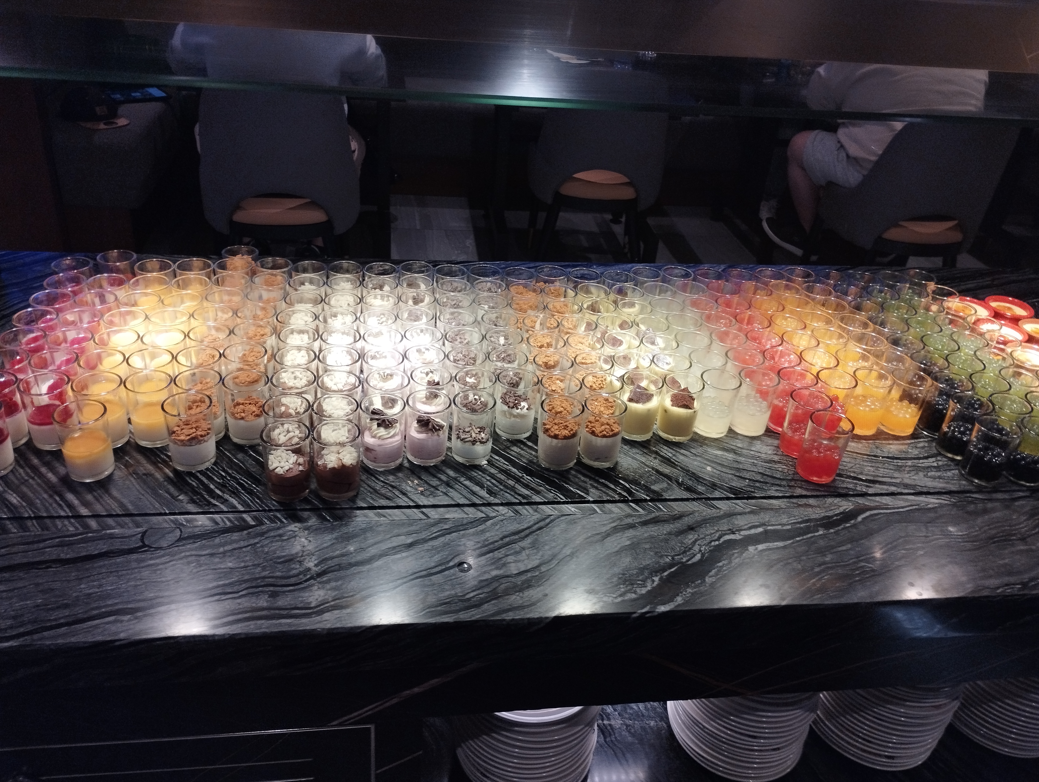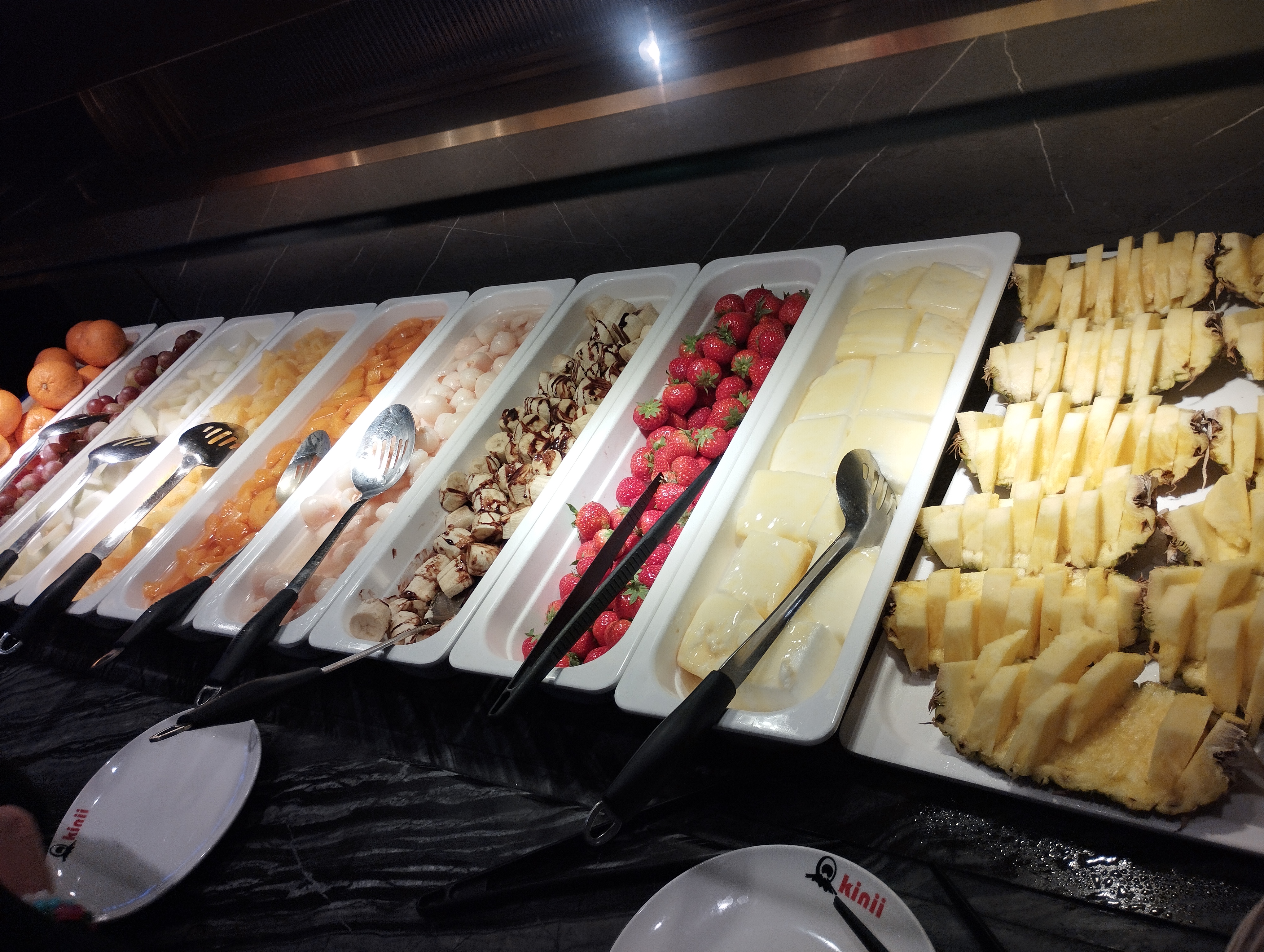 Concept high-tech, commande des plats via une tablette avec service à table pour les plats ce qui évite le gaspillage, bravo 👌. Buffet de desserts varié, top.