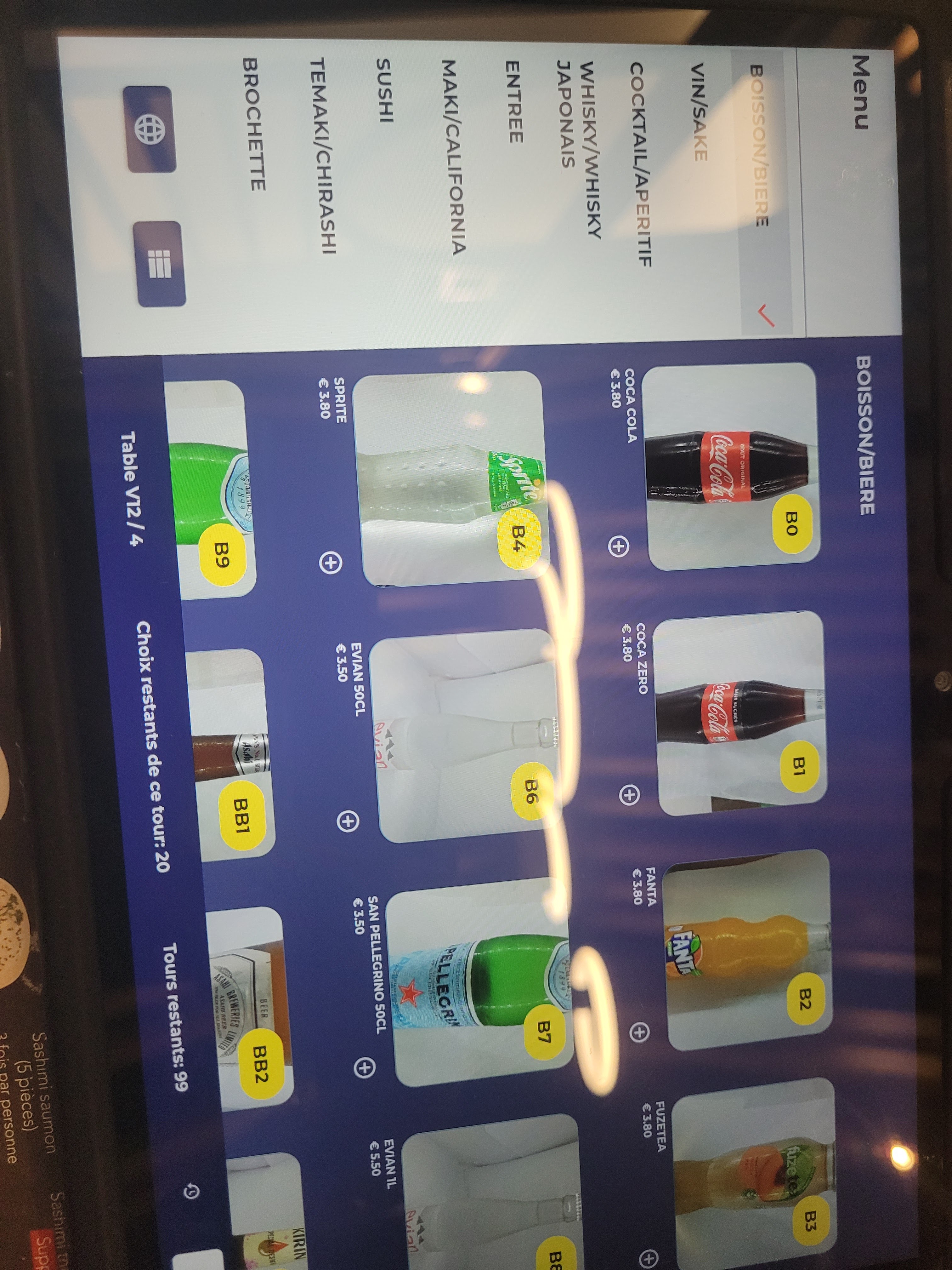 Très déçu beaucoup de poisson pas de choisir en viande le concept tablette n'est pas top du tout je préfère me servir première fois et dernière fois pour nous