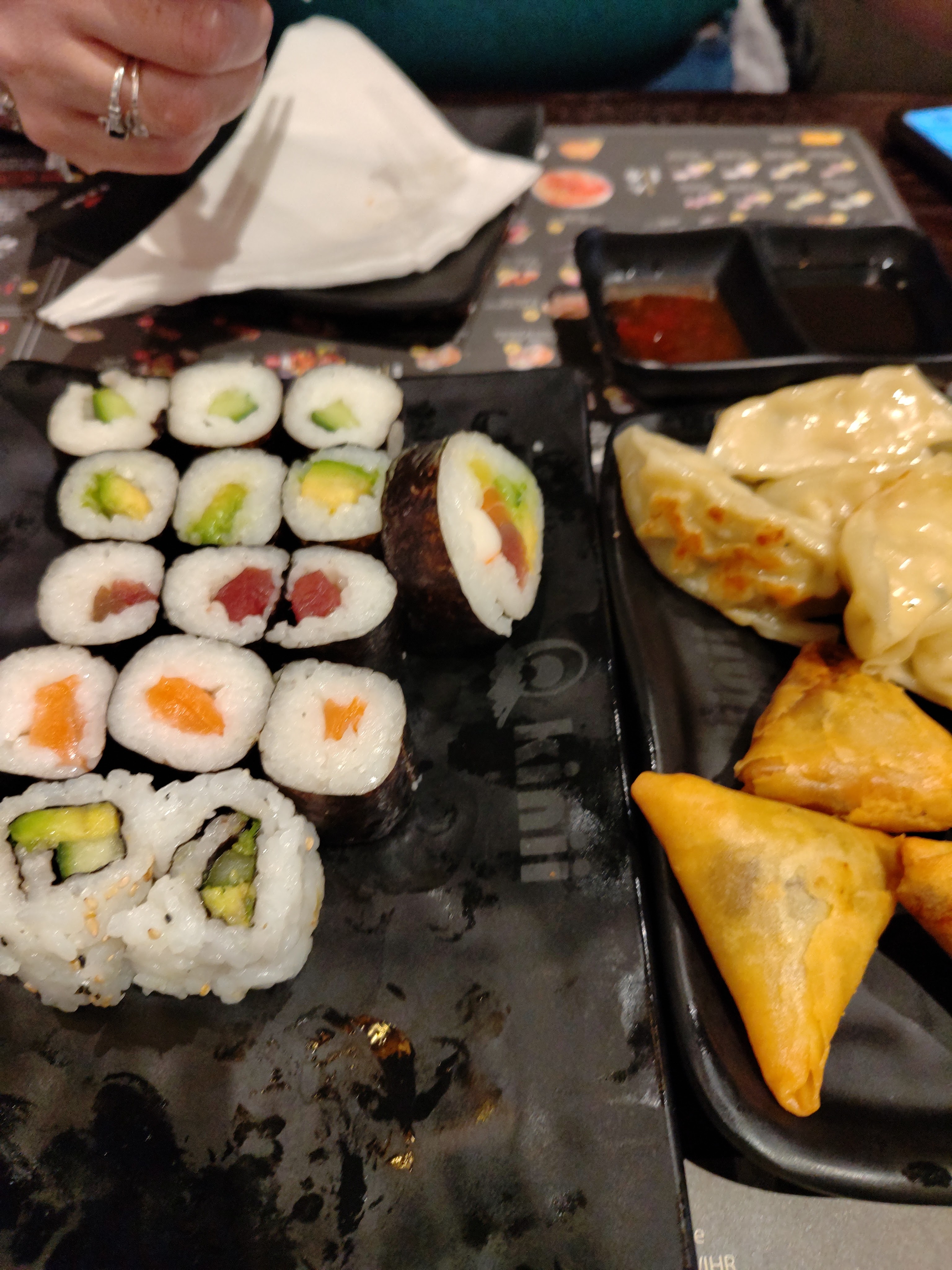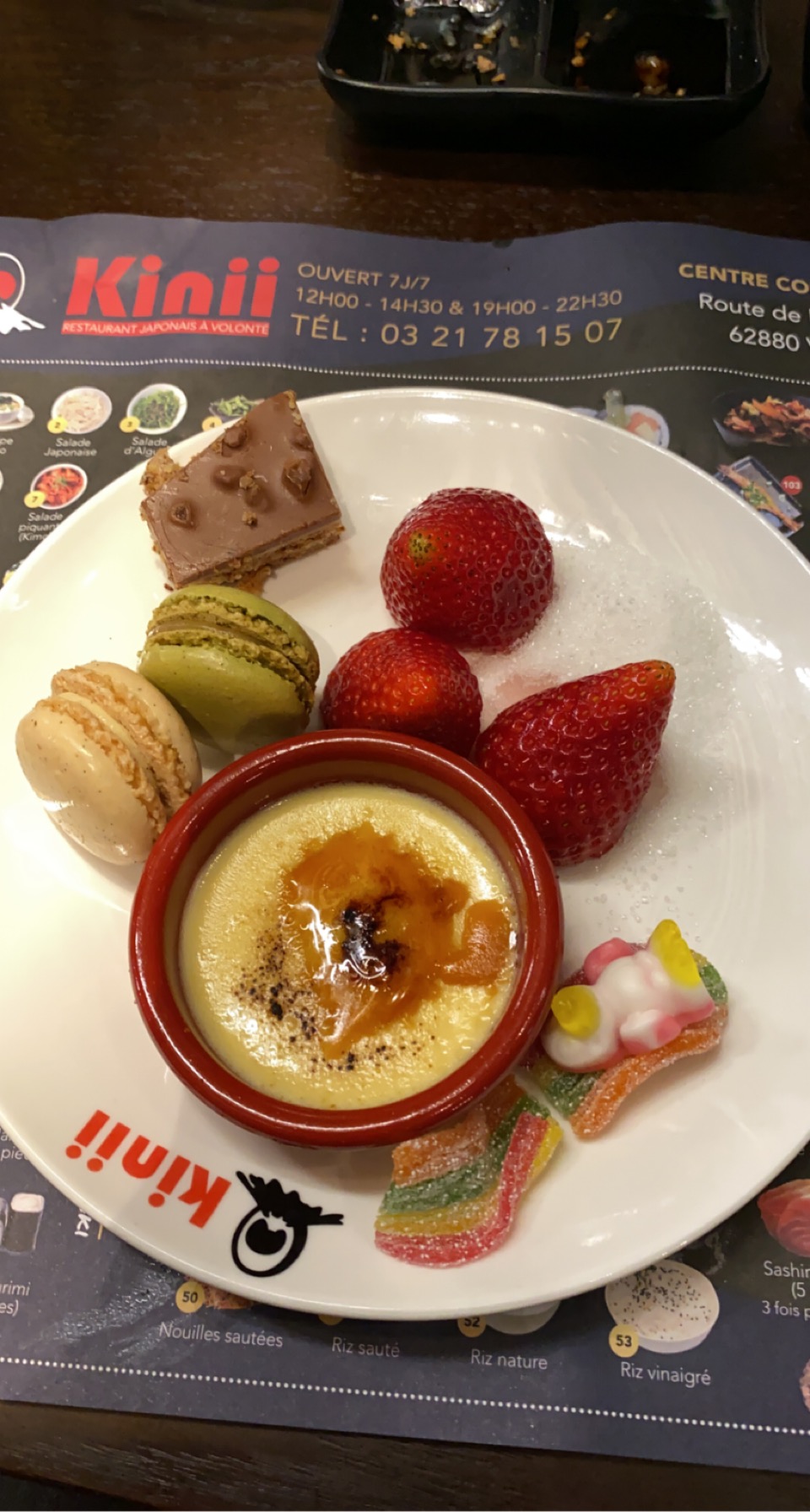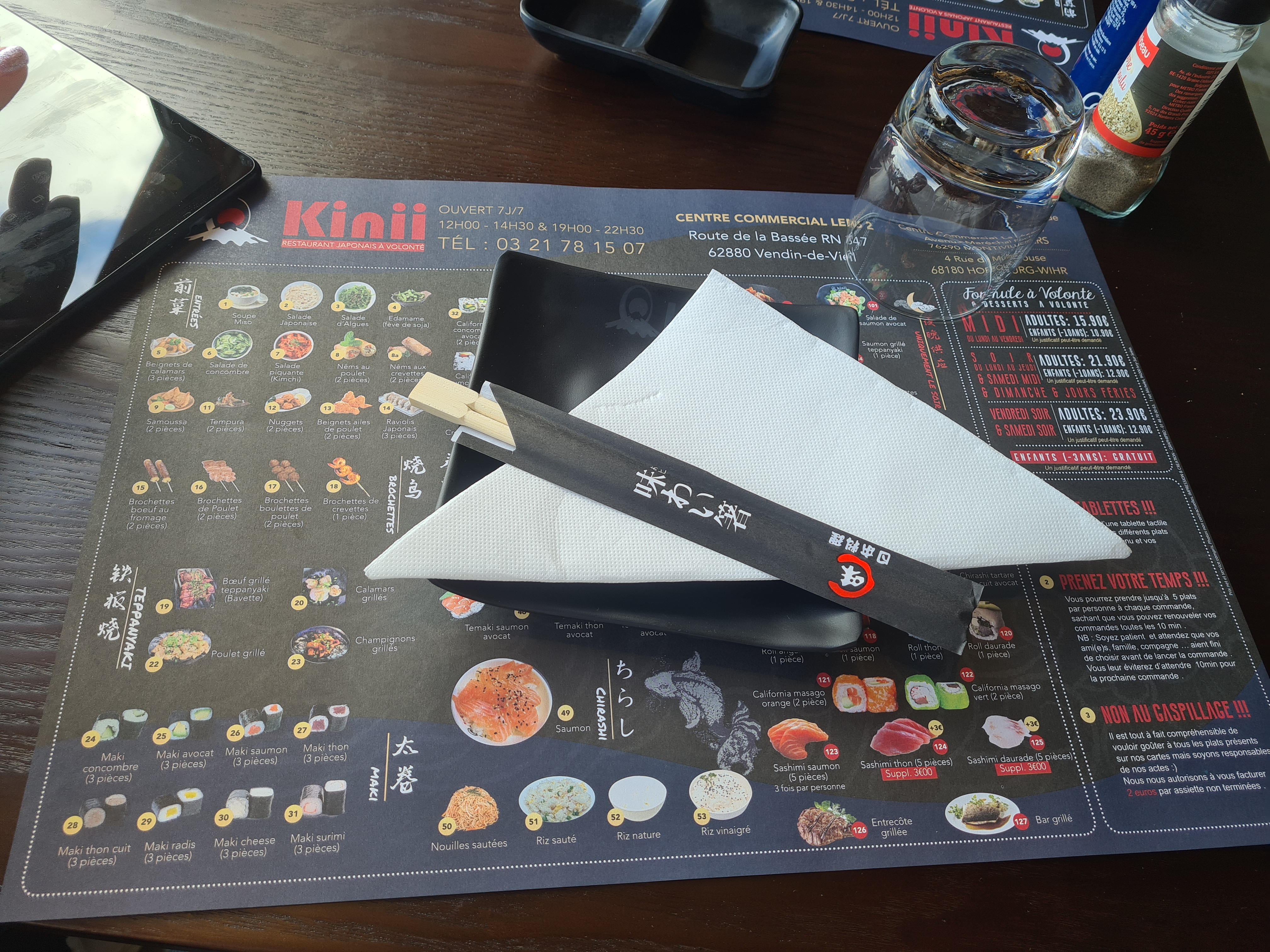 Repas en amoureux ce soir au restaurant Kinii de Vendin-Le-Viel. Super accueil de la part du personnel, cadre charmant et très intimiste grâce aux tables séparées de cloisons, ce qui rend le restaurant calme. Système de commande à la tablette, et service très rapide. Le fait de recevoir quelques échantillons de chaque évite le gaspillage et de goûter la plus part des plats. Nous avons commandé les plats et entrées en même temps et on s’est régalé avec tout. Certes on a connu des produits de meilleur qualité, mais le fait que ce soit à volonté le rapport qualité prix est correct. Parmi les boissons nous pouvons retrouver différentes variétés japonaise que soit alcoolisé ou non. Bémol au niveau des desserts, effectivement les pâtisseries congelées ne sont pas très appréciés mais les coupelles de fruit et les verrines sont vraiment sympa et permet de terminer sur une touche légère et sucrée. Je recommande ce restaurant, à essayer entre amis pour tout goûter 😁🍱