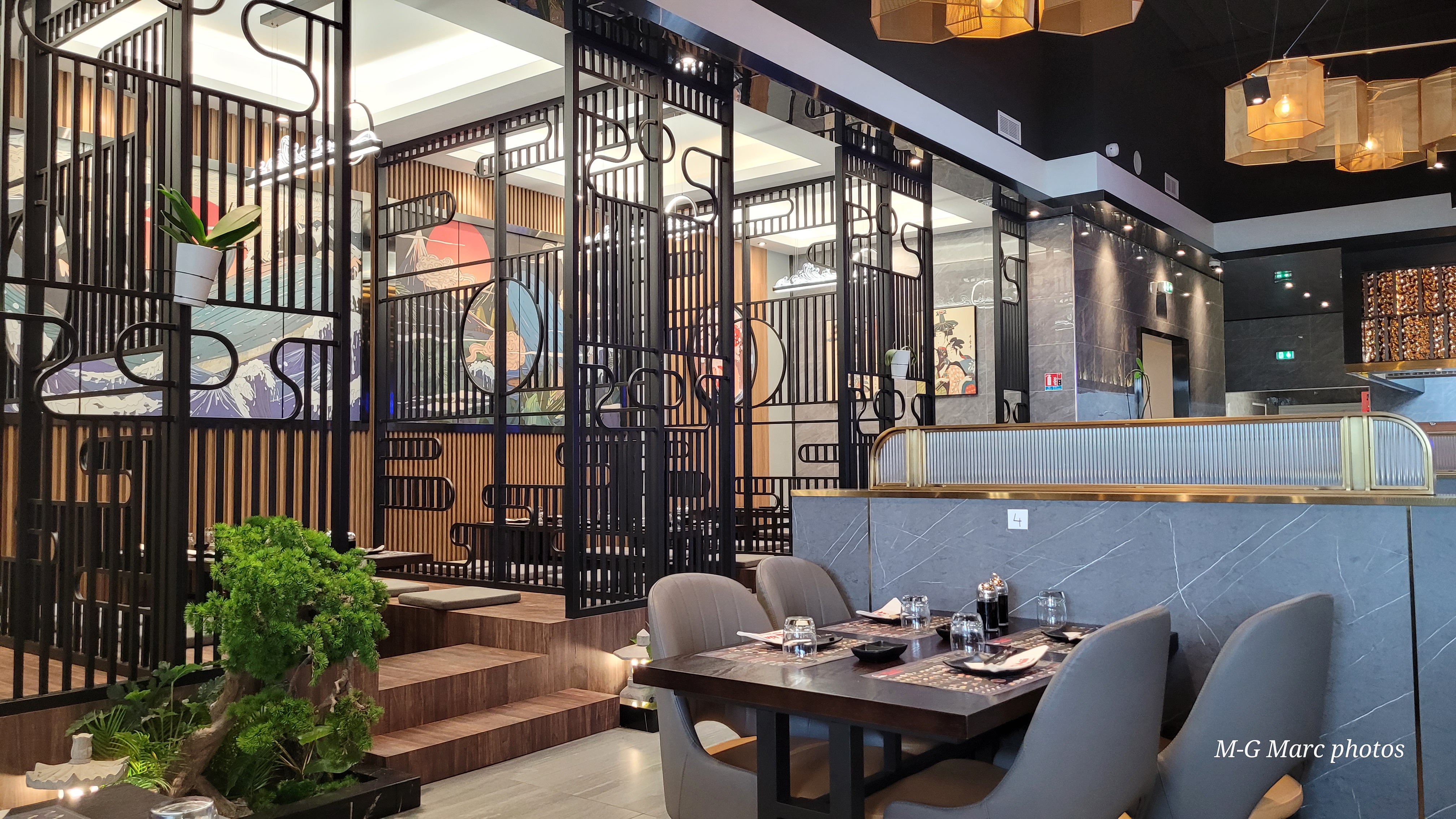 Très belle ouverture de restaurant ! Le personnel est très professionnel, très agréable, très serviable ! Ils sont tous très souriant et de nos jours ça fait plaisir à voir ! 😊 La décoration est juste magnifique ! La nourriture est excellente, ce sont des produits frais, même les desserts qui ne sont pas fait chez eux sont de bonne qualité, les plats arrivent très rapidement ! Le concept de commander sur une tablette déstabilise un peu au début, mais on s'y fait rapidement, le seul bémol de ce concept c'est qu'il n'y a qu'une tablette pour toute la table, et lorsque que nous lançons une commande en groupe les plats arrivent tous mélangés dans des assiettes différentes. Bien que ce soit un restaurant asiatique, je trouve cela dommage qu'il n'y ai pas de frites ou pâtes par exemple, ne serait-ce que pour les enfants qui bien souvent n'aiment pas trop manger asiatique. Dernier point sur lequel il pourrait y avoir une amélioration c'est la variété des plats, par rapport aux entrées, sushi etc, je trouve qu'il y a moins de choix. Des petits points qui pourraient être amélioré mais dans l'ensemble c'est un très bon restaurant que je recommande ! 😊