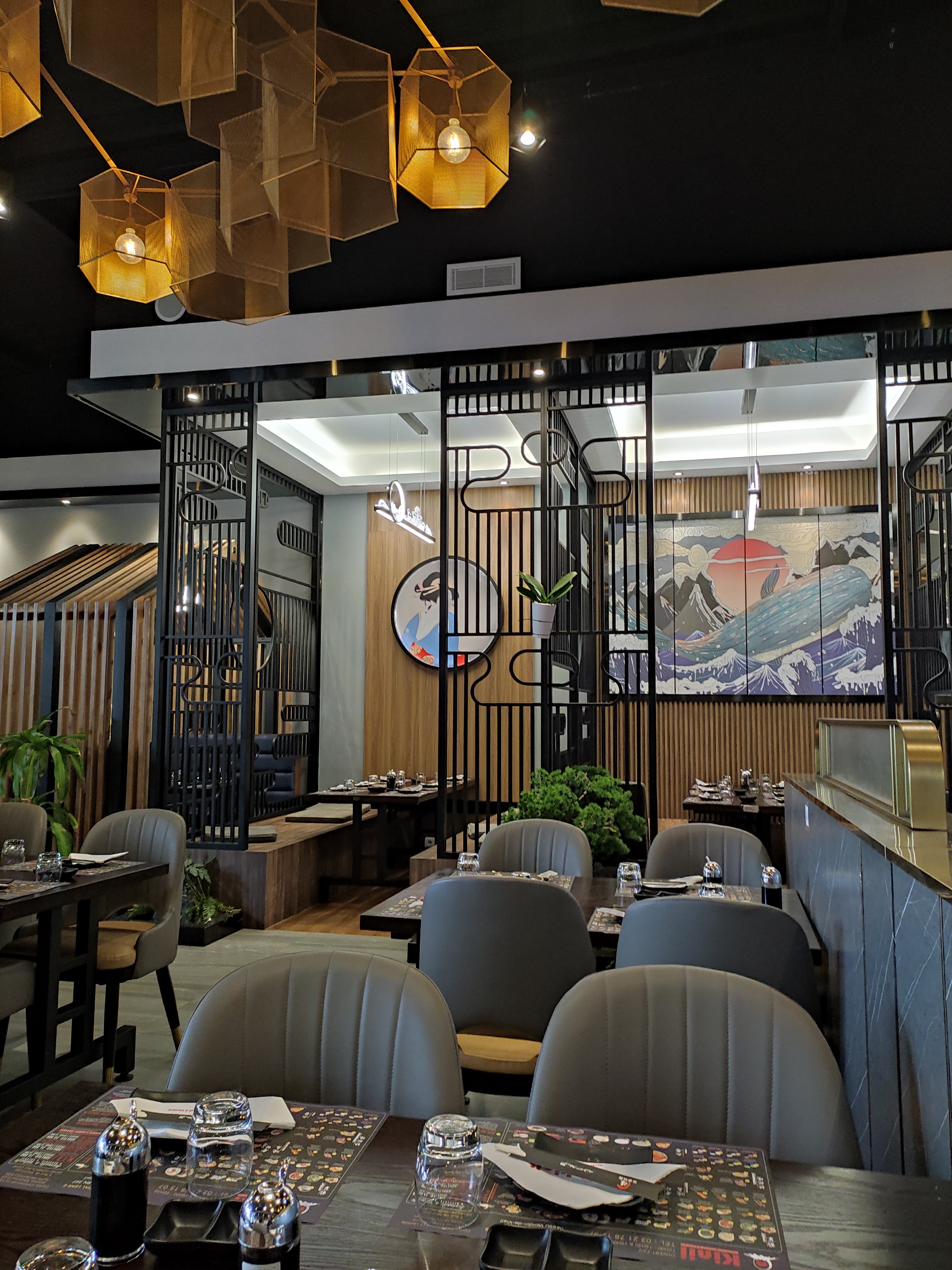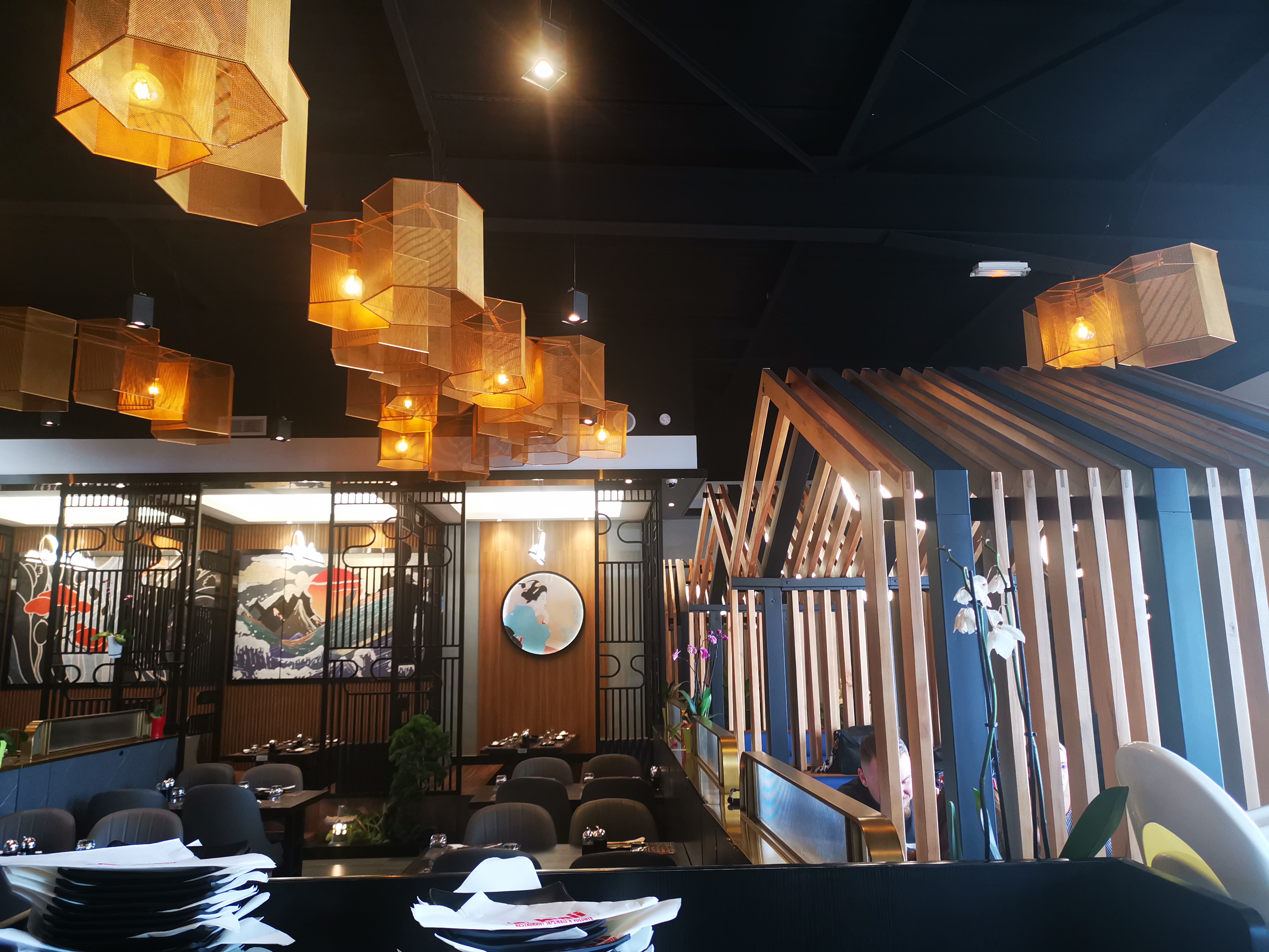 Un superbe décor pour commencer! Loin des buffets à volonté à l'ambiance cantine, les uns sur les autres, ici si l'on arrive assez tôt, nous avons le droit à des emplacements individuels. La formule à volonté se fait par tablette, ce qui permet de visualiser ce que l'on commande. Le service est fait à table sauf pour le buffet des desserts, souvent inexistant dans les japonais, qui est pour le coup bien varié. J'enlève une étoile car je trouve que la gamme de makis sushis sont trop classiques et que les mets, bien souvent préparés à l'avance, peuvent paraître un peu défraîchis (salade de chou par exemple).