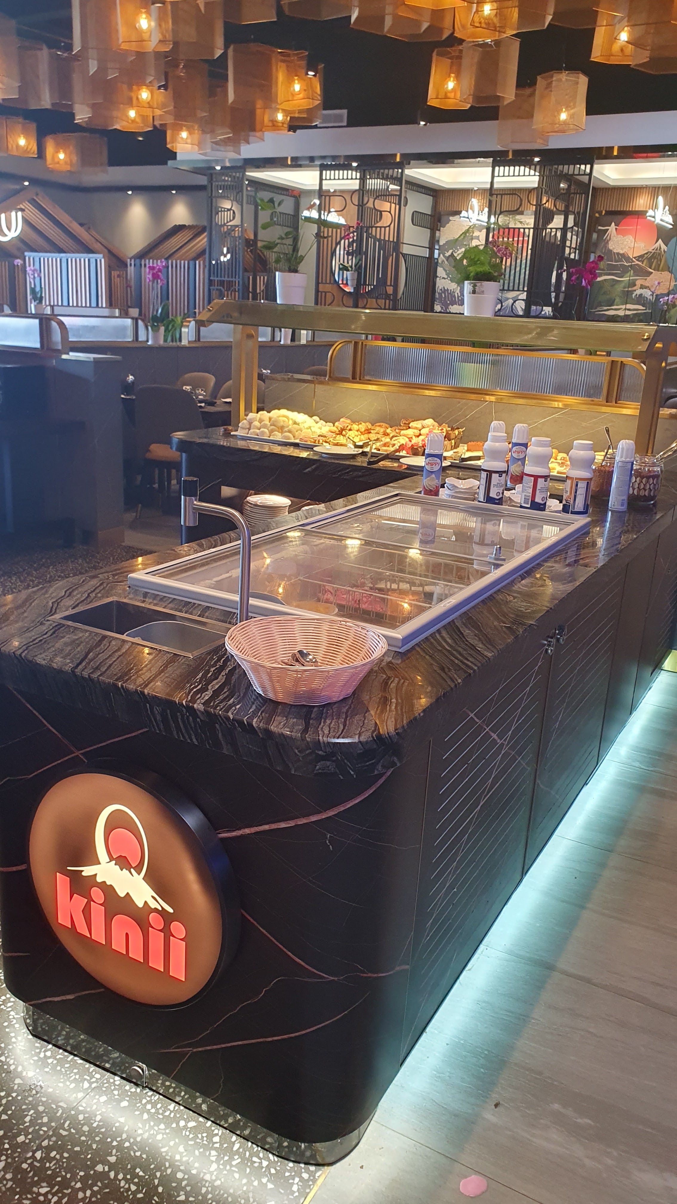 Concept super sympa, buffet à volonté avec service à table, commande via tablette. Jolie déco et personnel agréable. Par contre, les aliments n’ont aucun goût… tout était fade, sans assaisonnement, on sent que ce n’est pas de la qualité (notamment la viande et le calamar grillé). Nous avons été très déçus … et ne vous laissez pas berner par l’apparence des plats sur les photos de la tablette, car en réalité quand c’est servi, les quantités sont minuscules. Exemple avec la salade de poulpe, 2-3 bouts qui se battent en duel. Idem pour la salade saumon-avocat, sur son lit de salade qui vient tout droit d’un sachet 😅 Les brochettes sont bonnes. Par contre, le coin dessert est sympa. Bref, testé et non approuvé pour notre part 😕