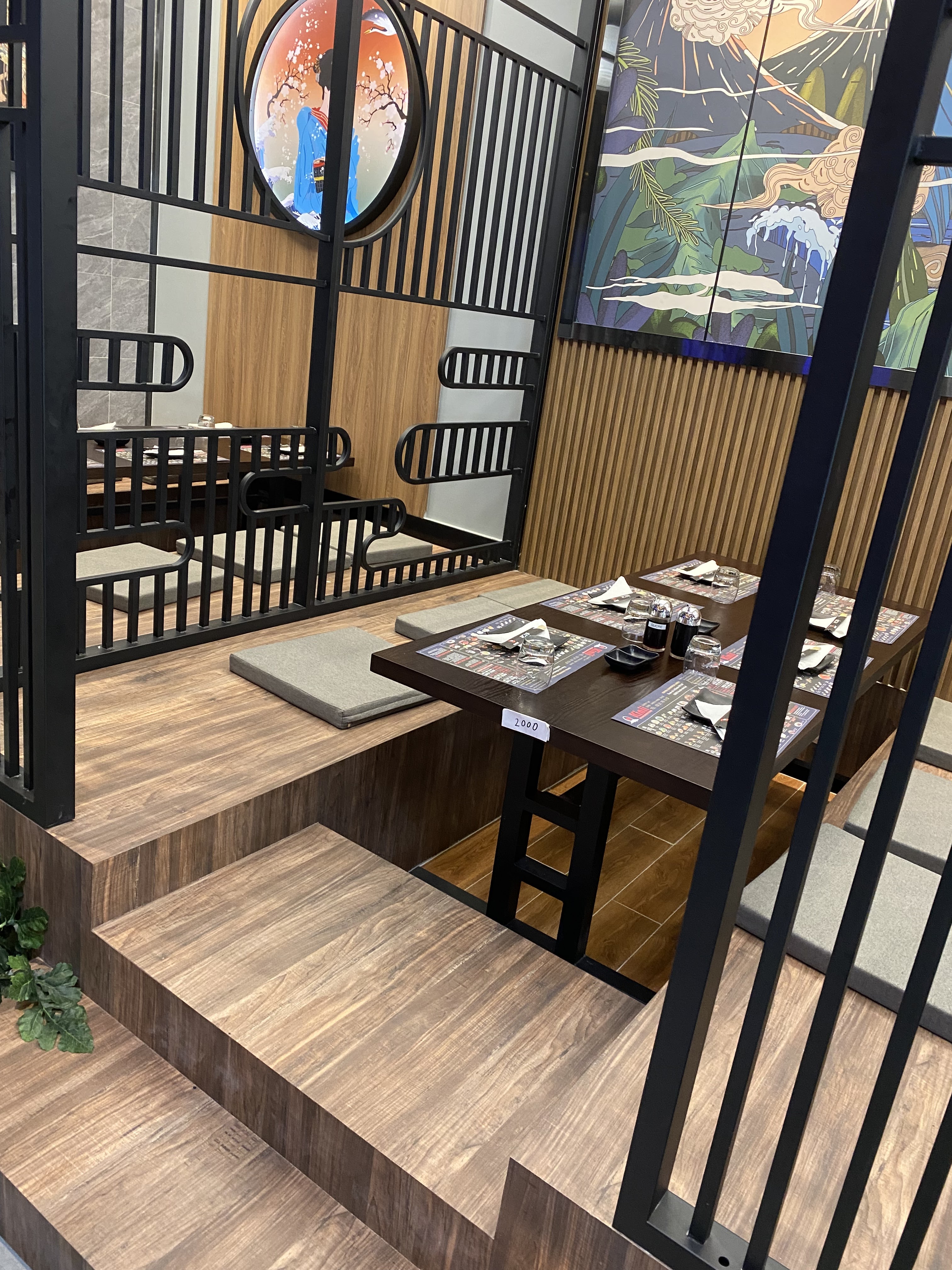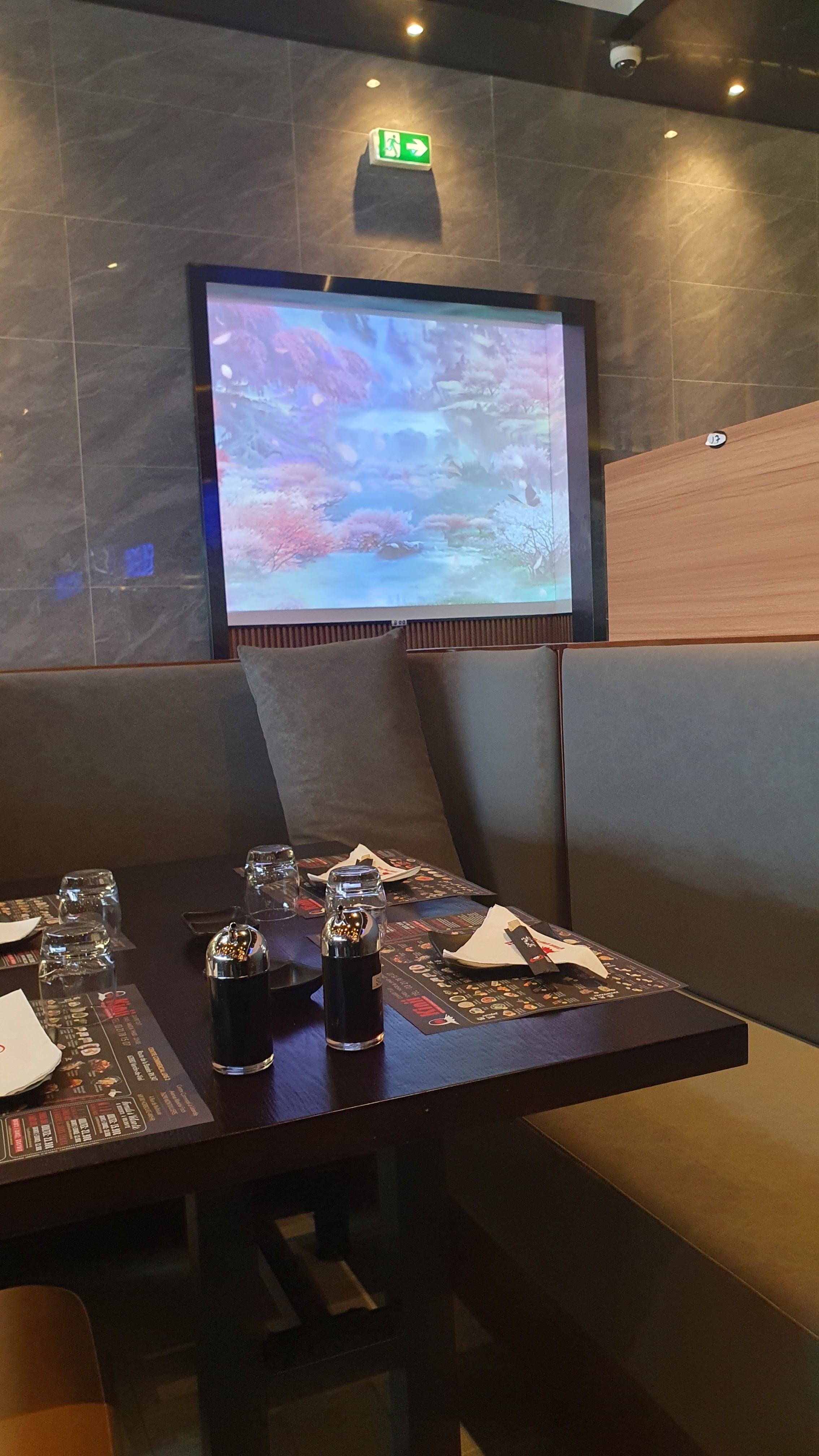 Restaurant propre , une belle décoration on se croirait au Japon. Service très rapide et original avec la tablette, les plats sont délicieux. Personnel très agréable et serviable. Nous avons passé un bon moment, merci !
