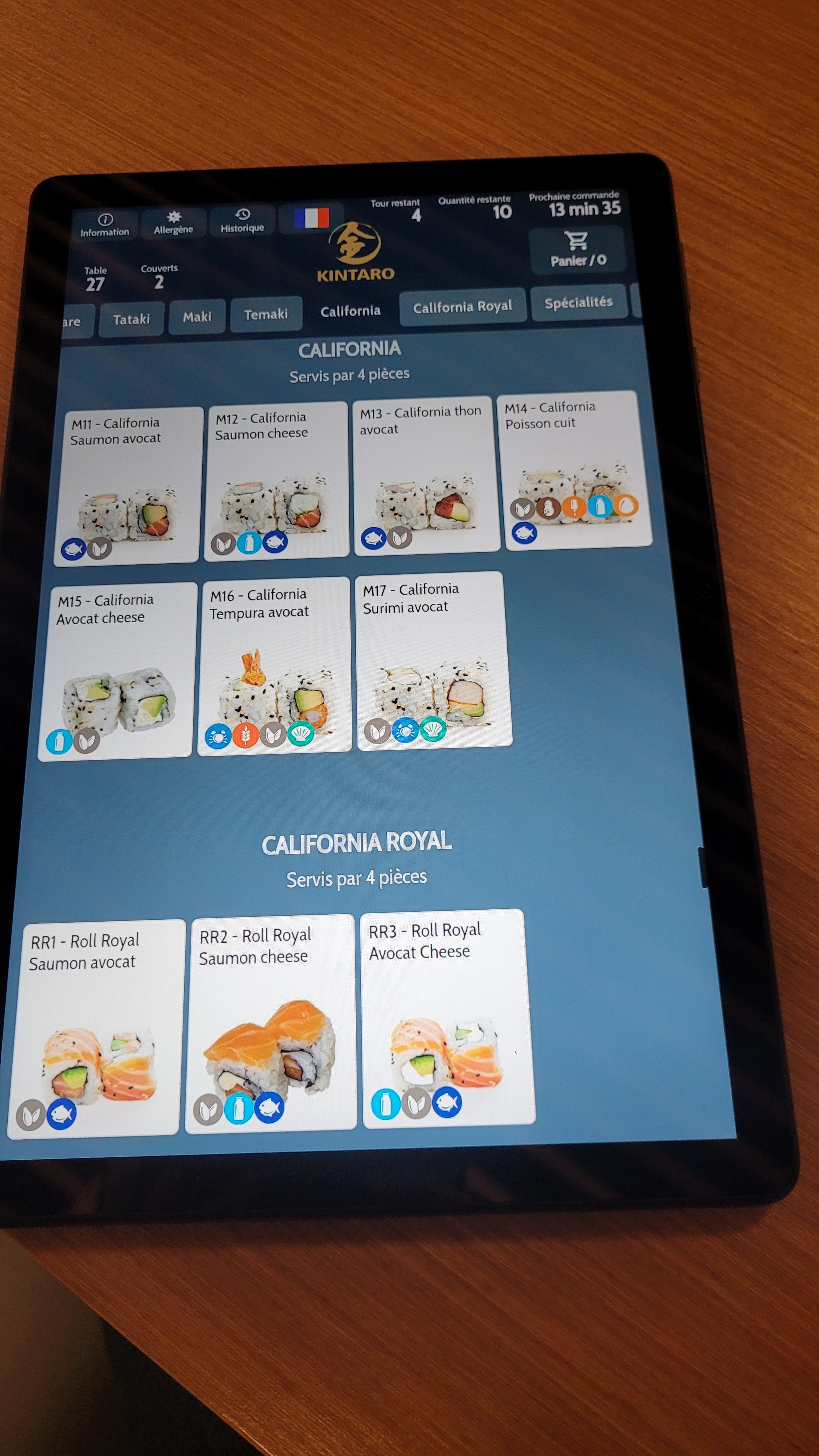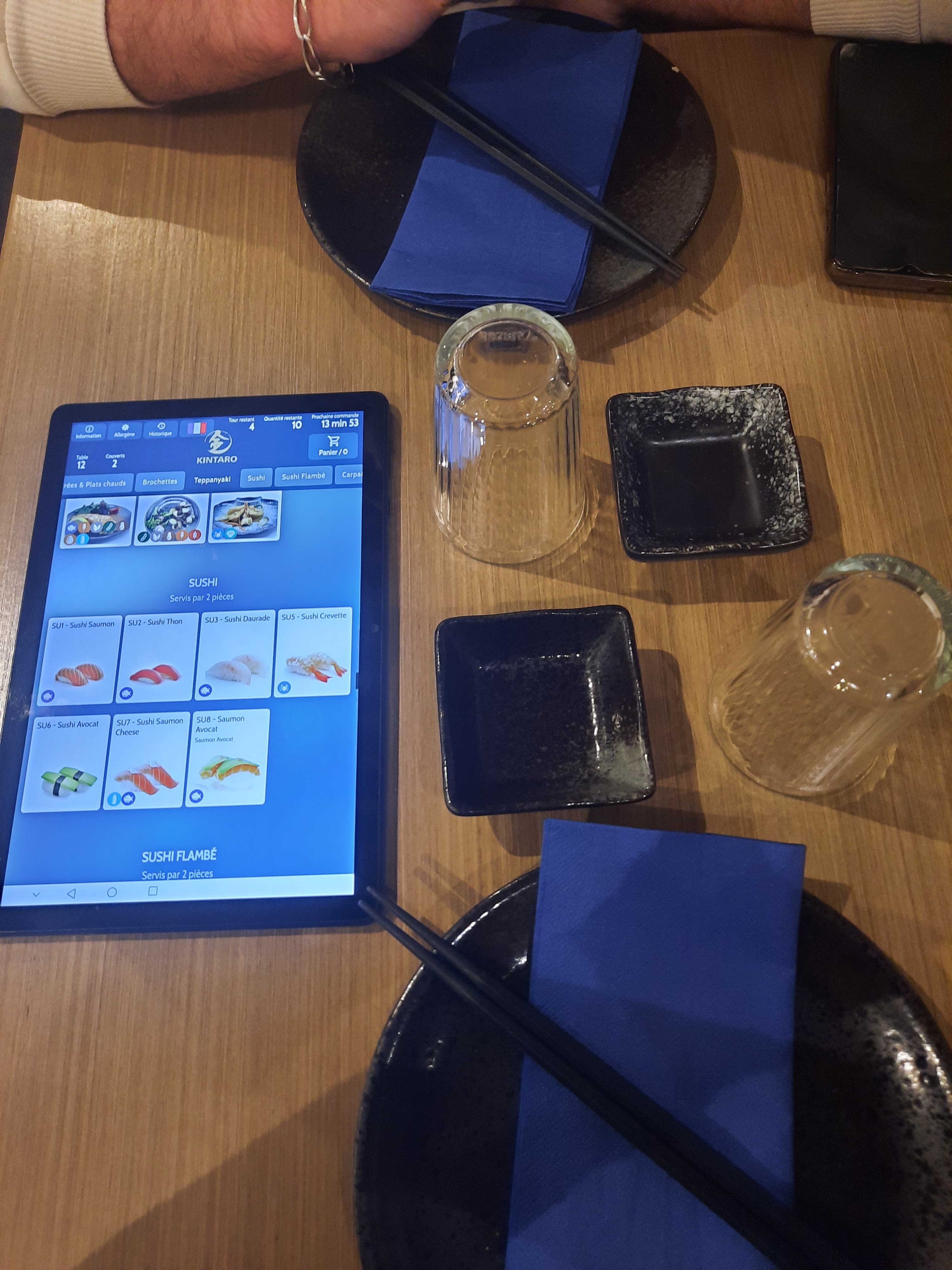Première fois que je me rend à Kintaro et je suis très satisfaite. Les présentations sont vraiment très soignées, et les produits sont bien frais et très goûteux. J’ai adoré le principe de commande sur tablette qui est tellement plus pratique que sur papier. De plus, les commandes sont très rapide, malgré le monde présent. Le personnel est très gentil et accueillant. Je recommande ce restaurant. +++