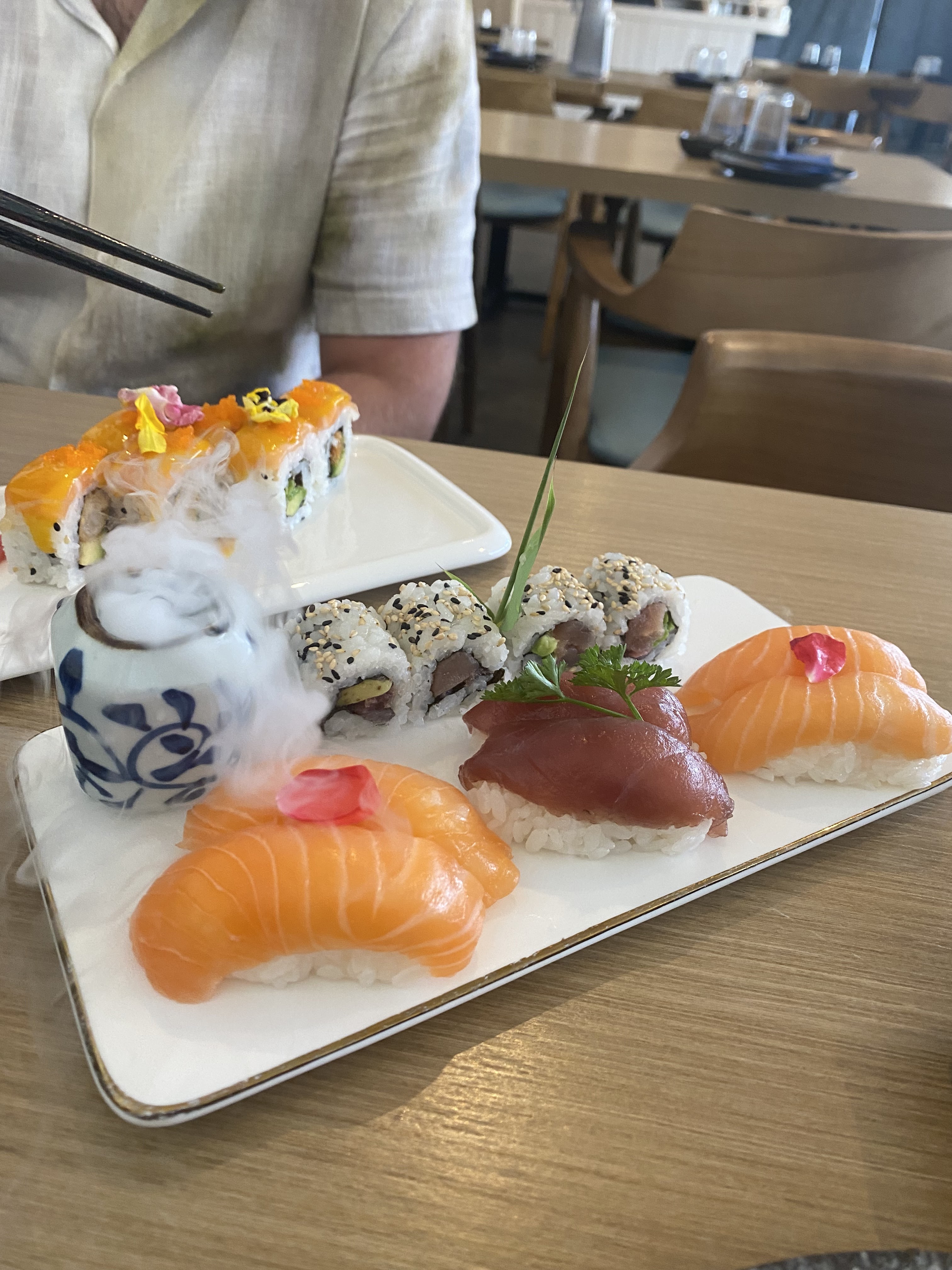 Nous venons de sortir du restaurant à l’instant même. C’était extraordinaire, tout était parfait. Une décoration moderne, épurée et classe. Une équipe jeune et dynamique qui se rend très disponible au besoin. Et les plats aussi bons que beaux. Le plaisir de yeux avant d’en avoir le plaisir aux papilles. Le restaurant est très propre et même les toilettes d’une propreté irréprochable et il est important de le souligner. Merci à vous tous les serveuses, serveurs, monsieur de l’accueil, aux 2 messieurs à la préparation des sushis et au personnel en cuisine. Nous reviendrons très vite